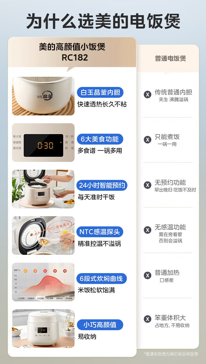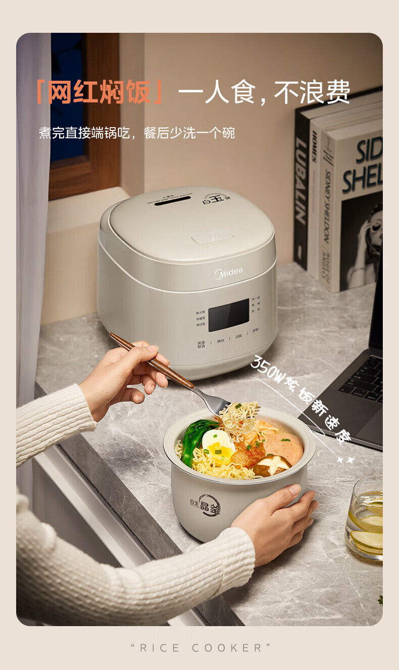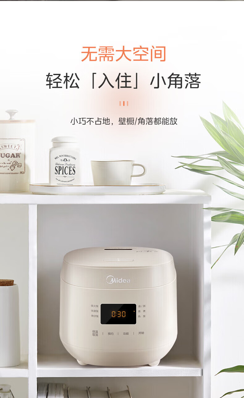 美的(Midea)电饭煲电饭锅迷你小型1-2-3人家用电饭锅智能保温预约多功能煲汤煮粥1.8L精致容量 迷你奶油煲 1.8L