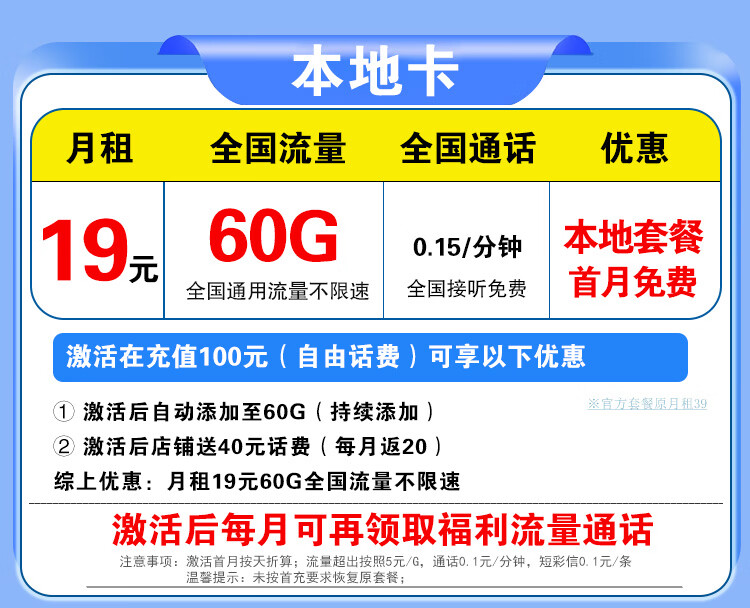 中国广电流量卡电话卡手机卡纯上网大流量卡5G全国通用不限速大王卡低月租广电流量卡 本地卡19元60G全国通用流量首月免费超长套餐