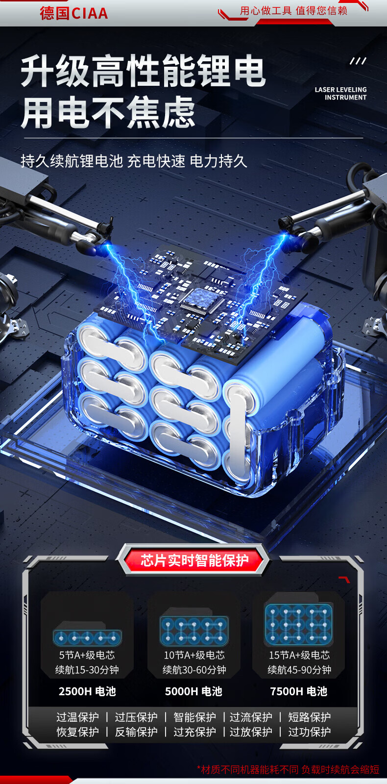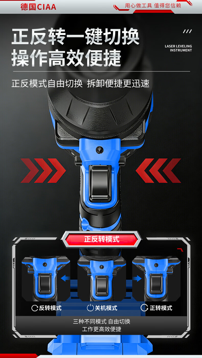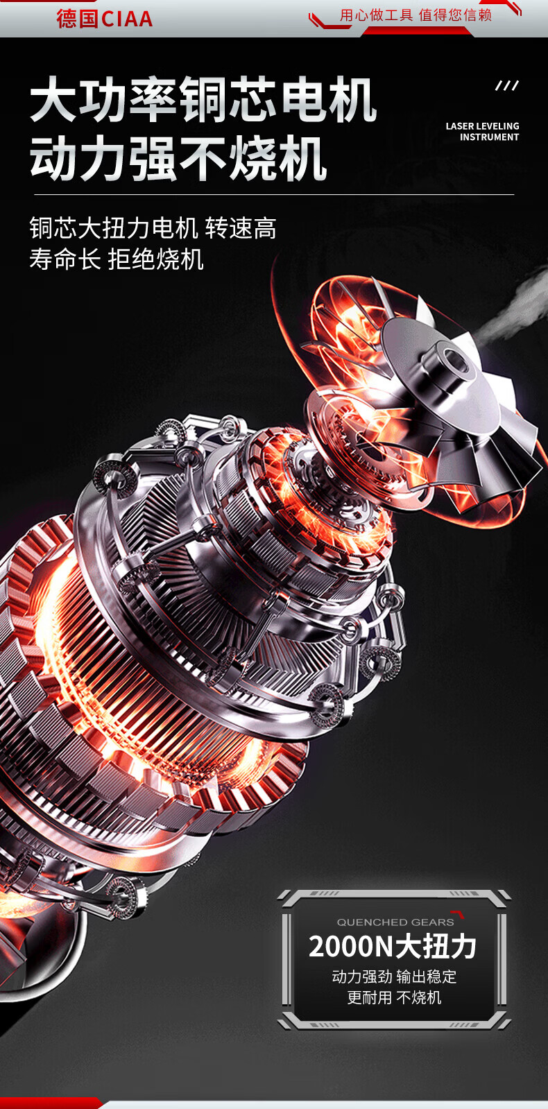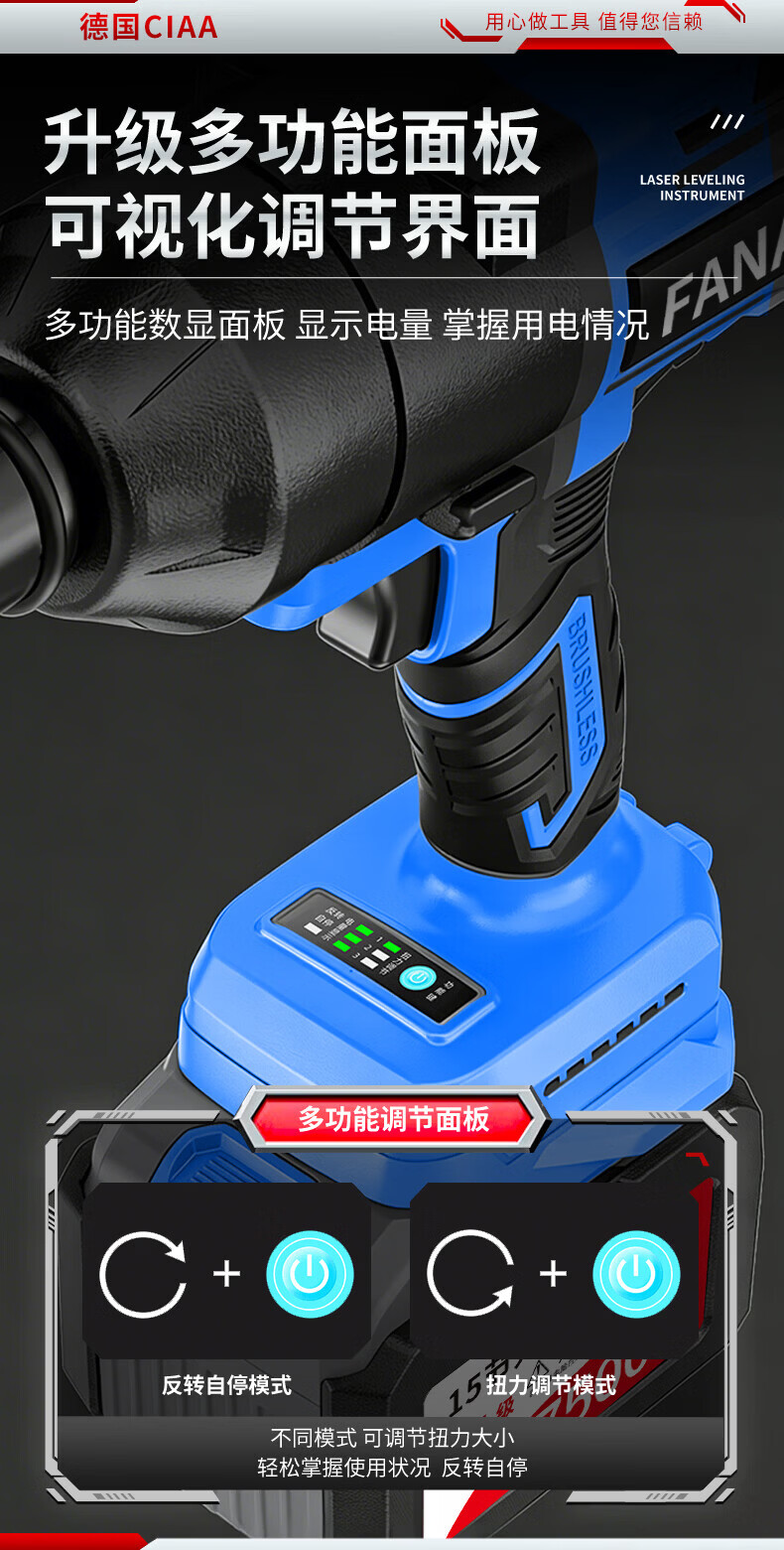 CIAA德国 电动扳手无刷大扭力2000N锂电冲击风炮重型工业汽修拆卸专用 2000N大扭矩【一块10节5000H电池】 赠防摔塑箱
