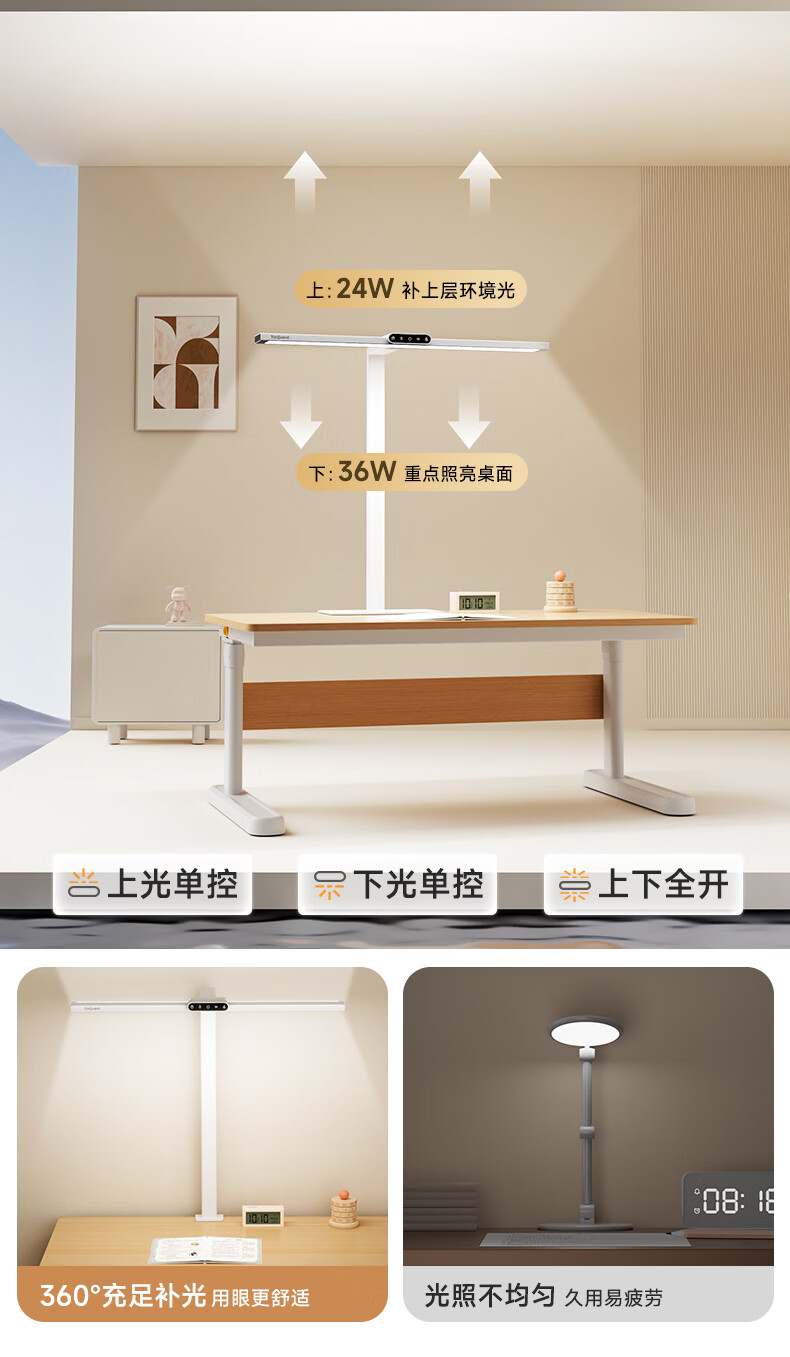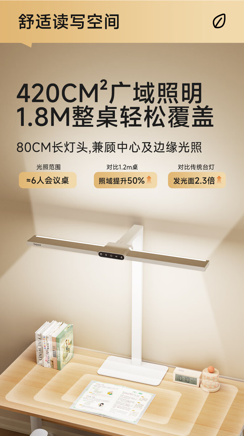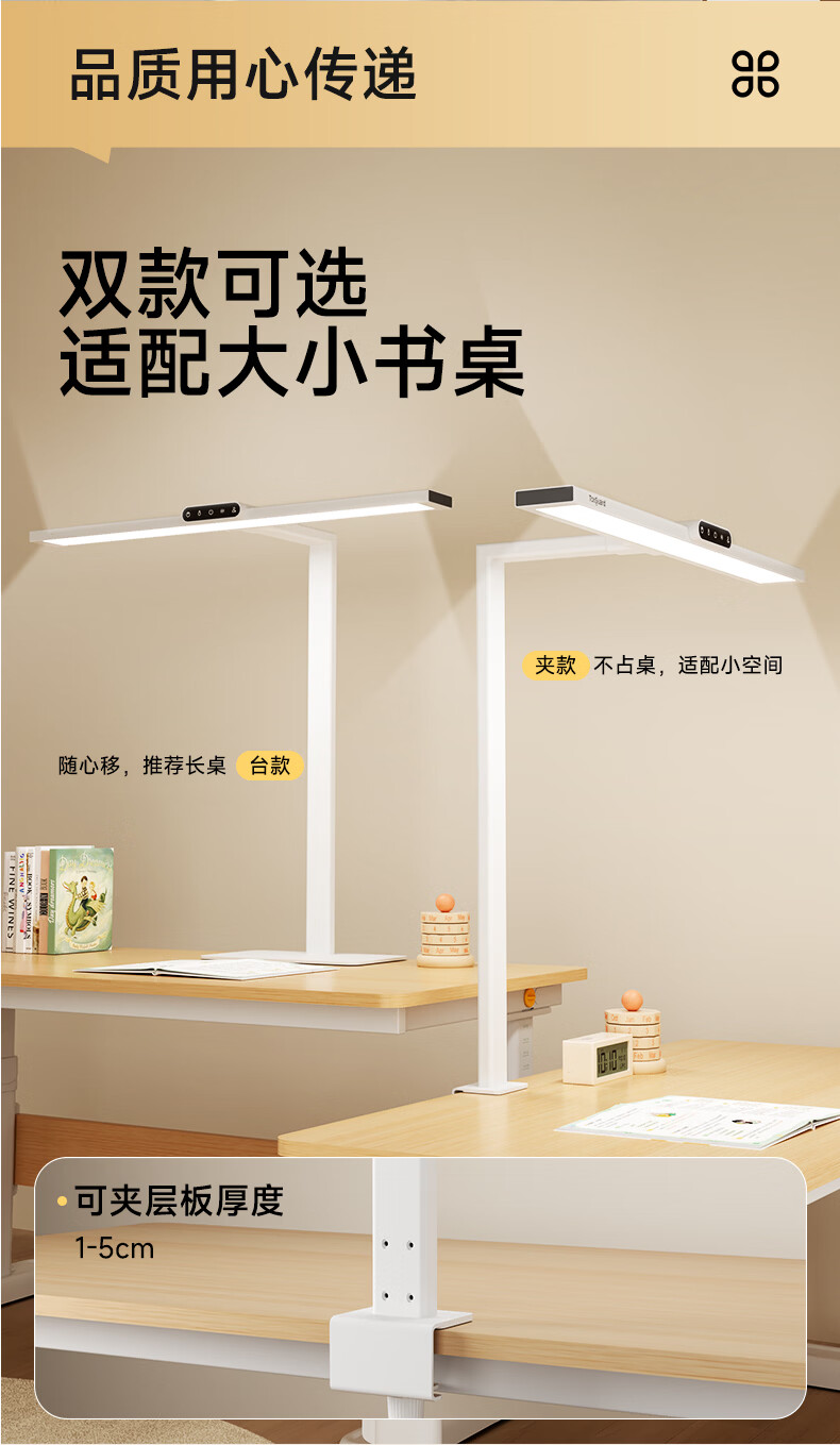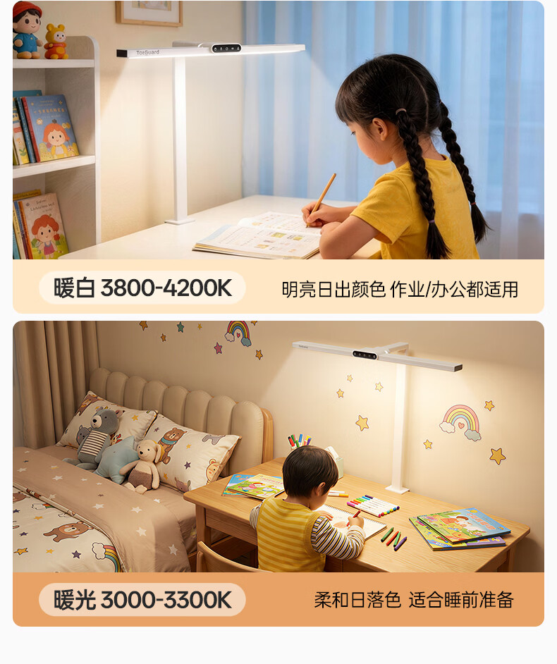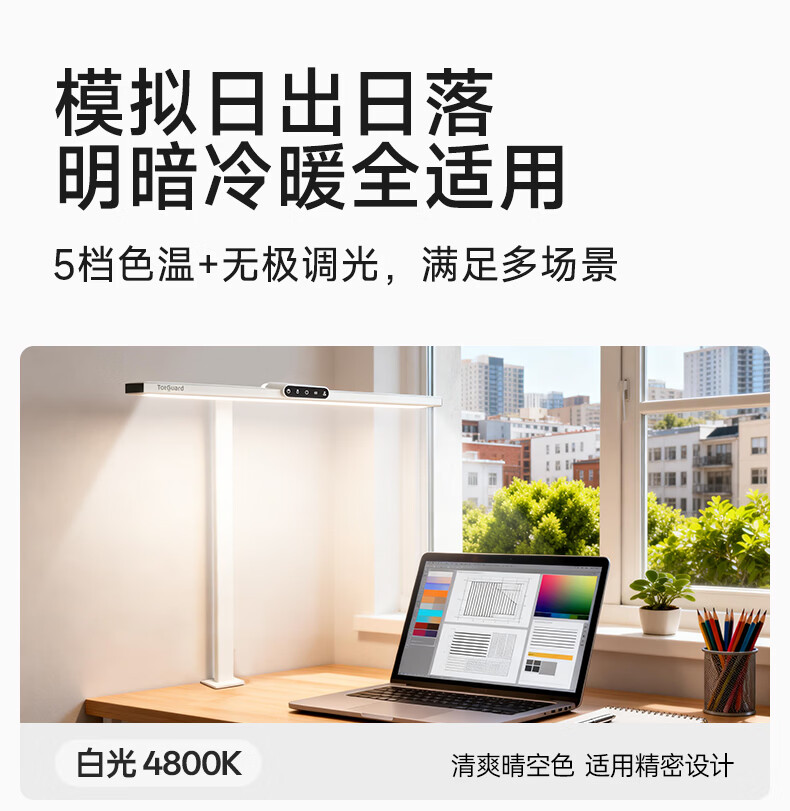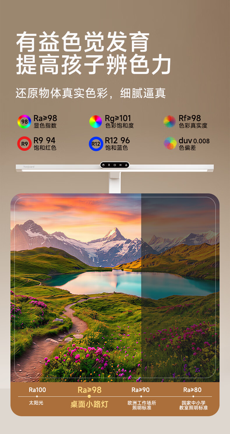 护童(Totguard)护眼台灯学生专用防蓝光防近视全光谱大路灯智能阅读灯桌面小路灯 夹桌款【广域照明+无蓝光危害】桌面小路灯