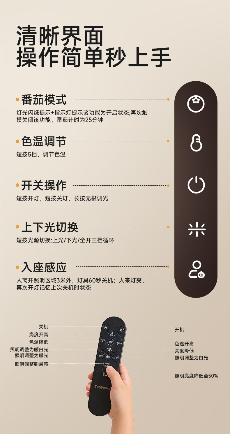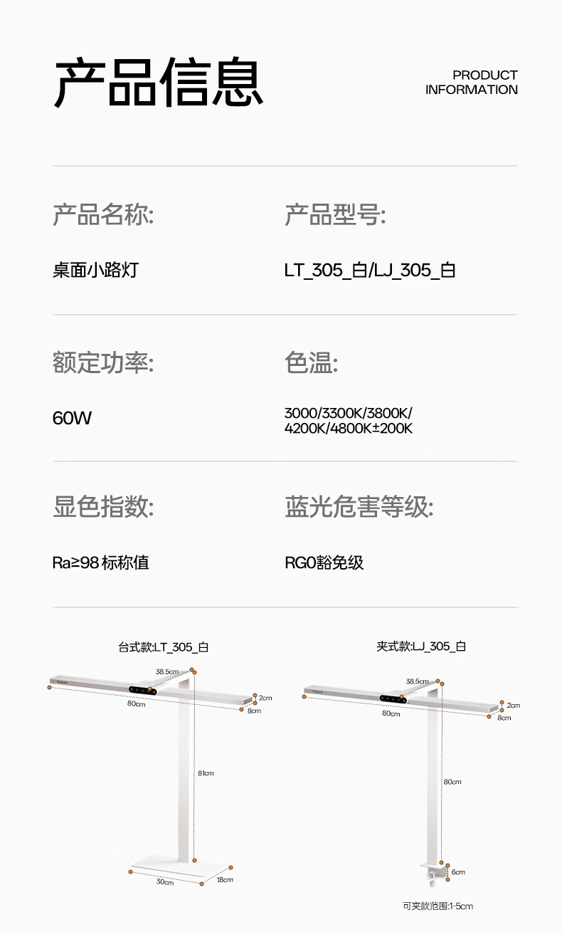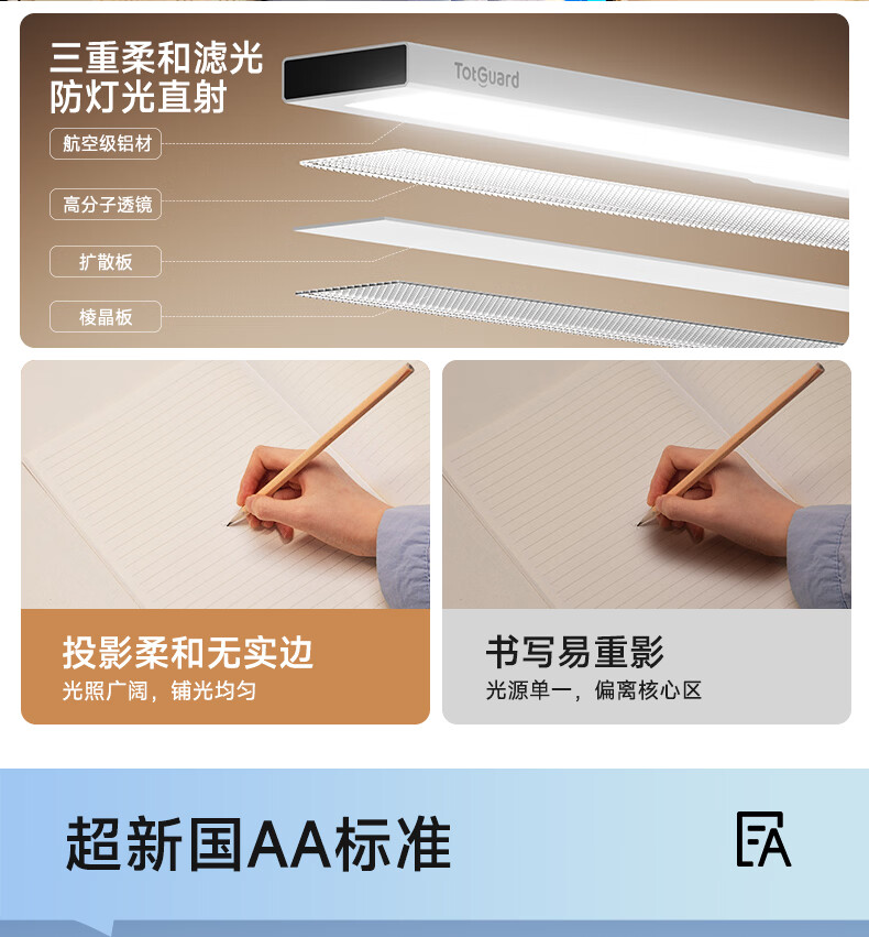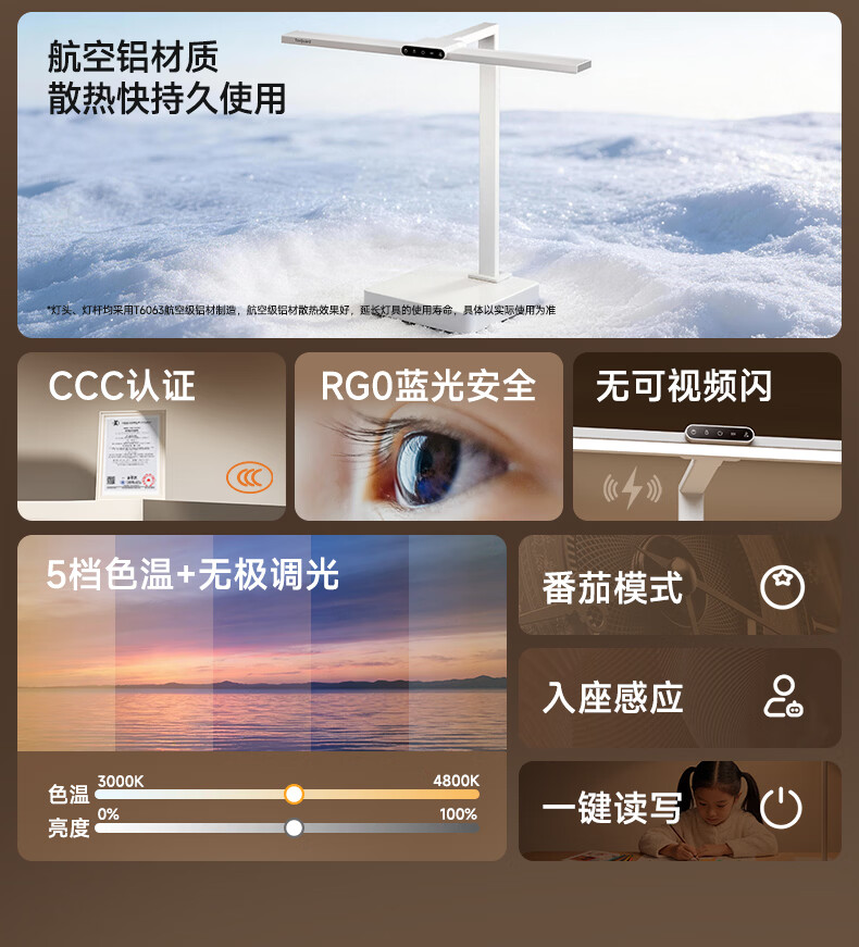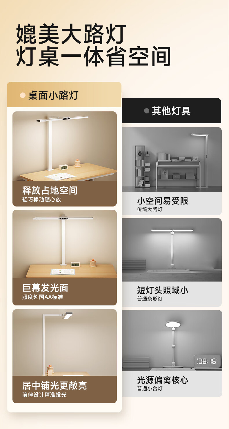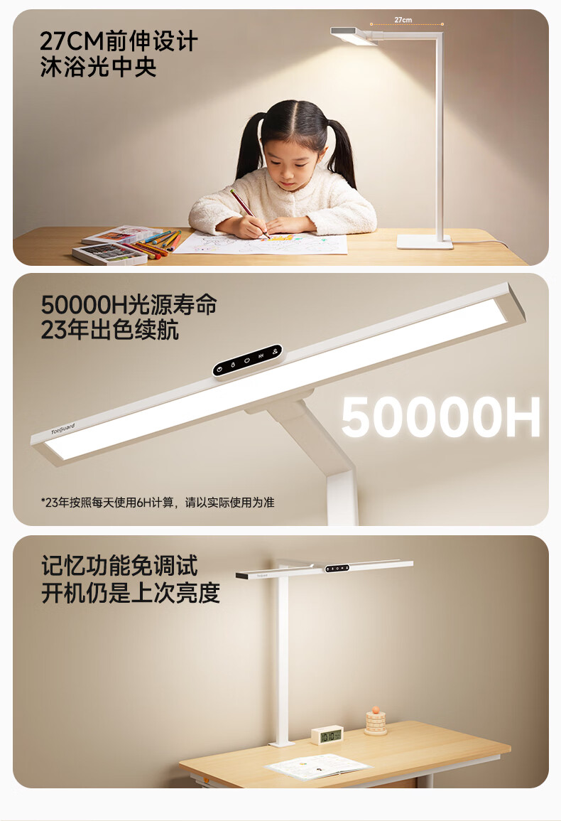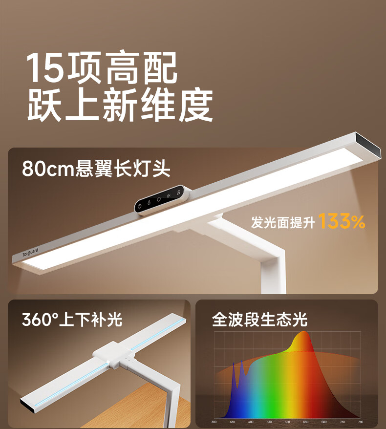 护童(Totguard)护眼台灯学生专用防蓝光防近视全光谱大路灯智能阅读灯桌面小路灯 夹桌款【广域照明+无蓝光危害】桌面小路灯