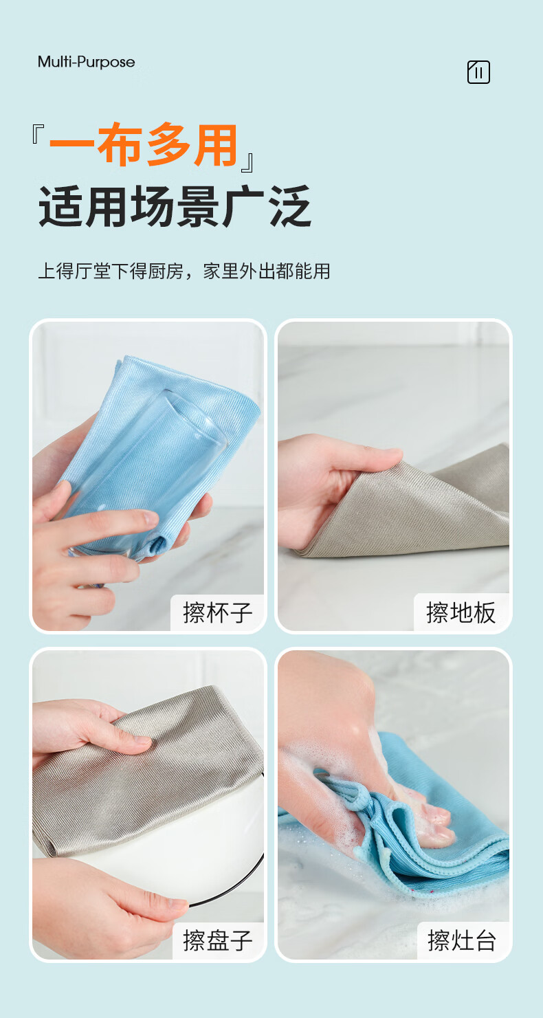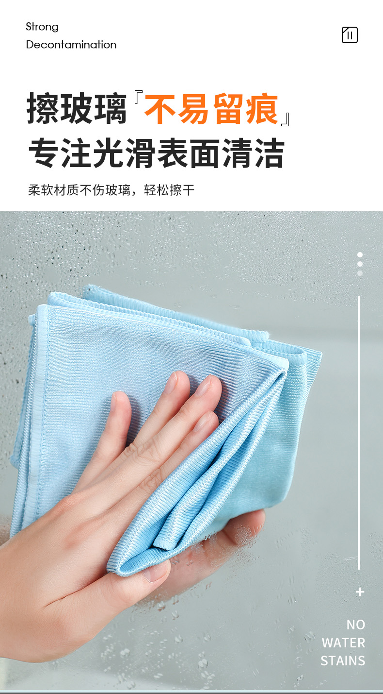 洁丽雅玻璃清洁布40*40cm*5条加厚擦玻璃鱼鳞抹布家务清洁不易掉毛
