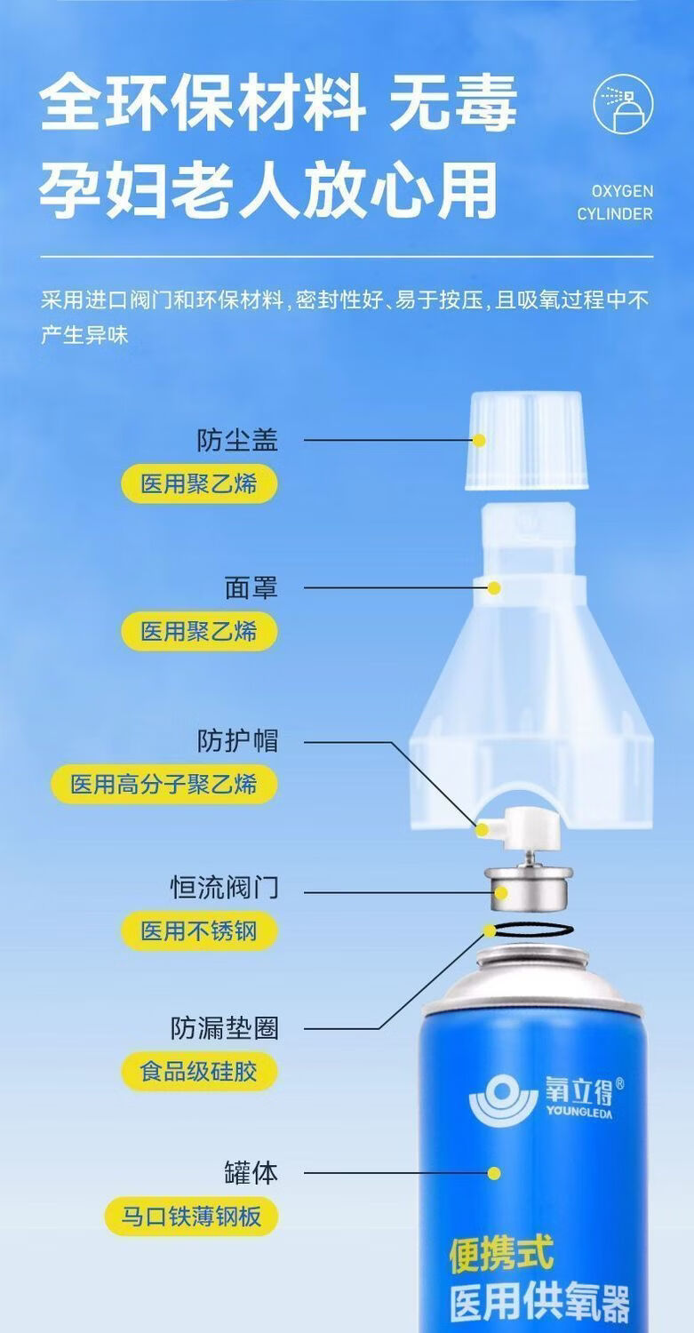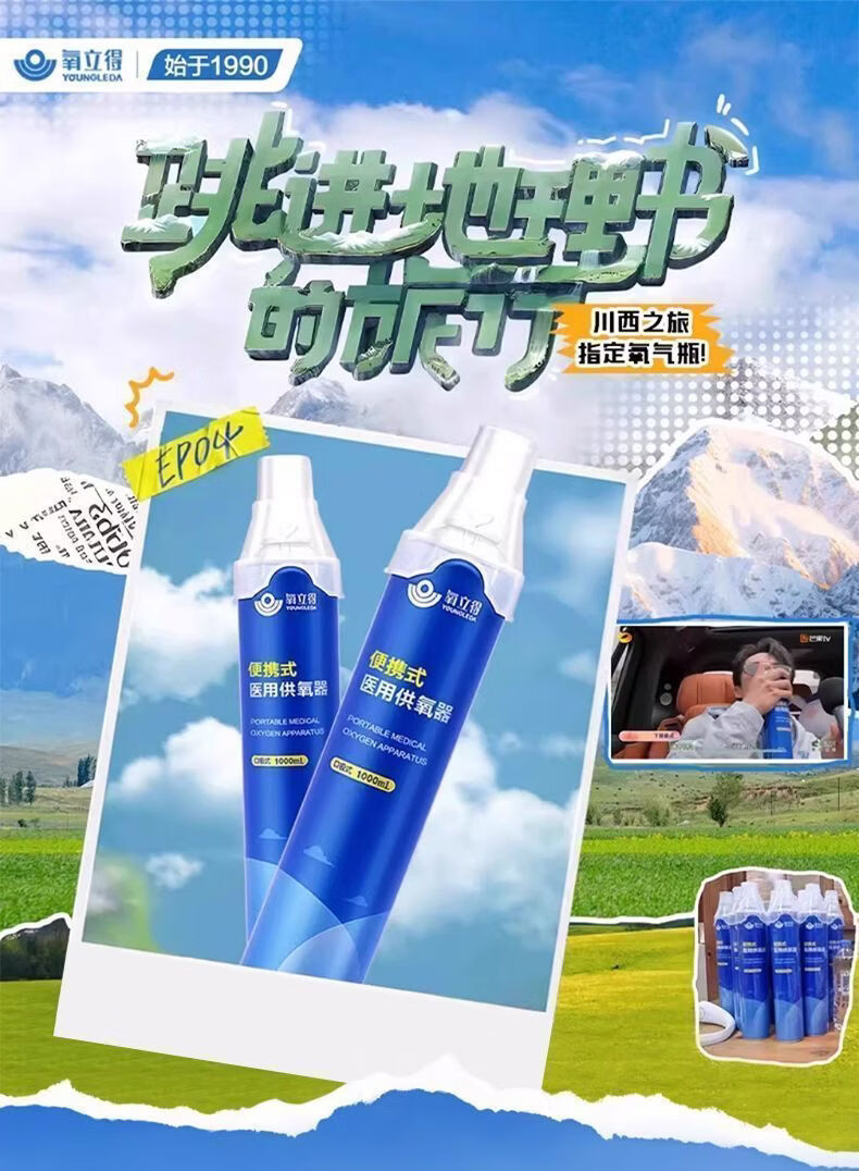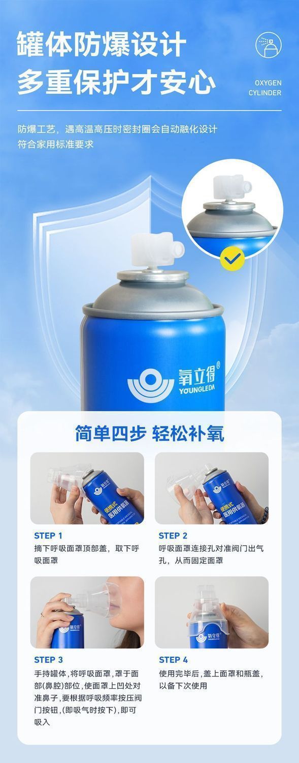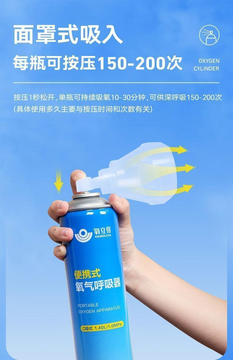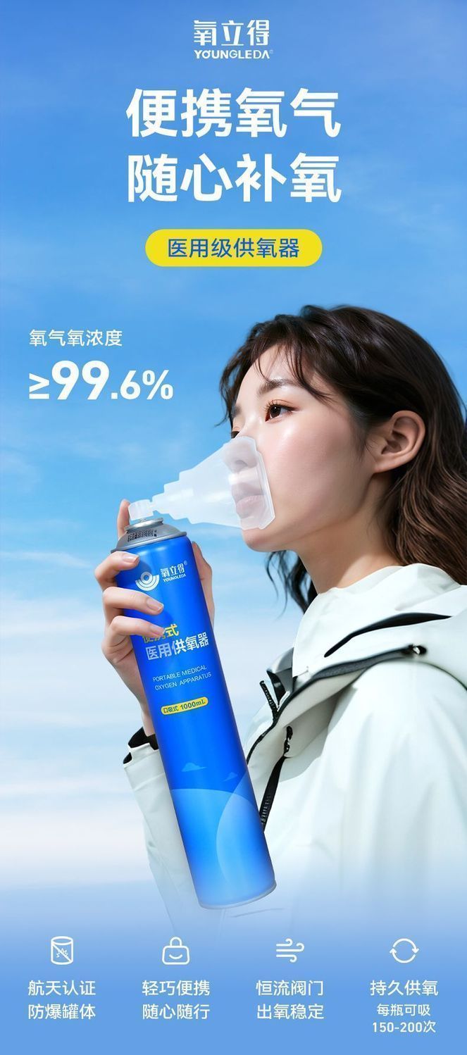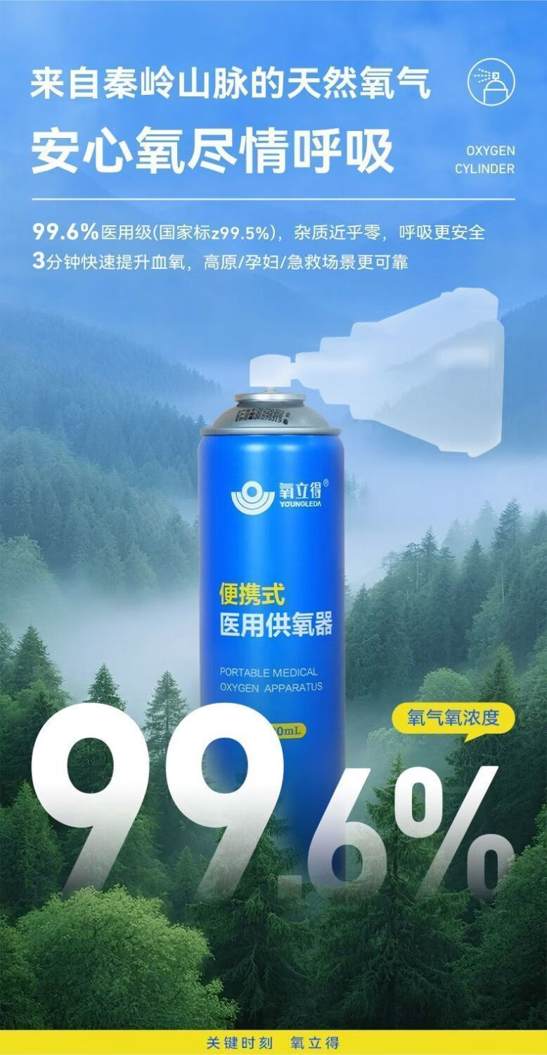 可孚氧立得氧气瓶便携式高原旅游西藏高反家用老人孕妇吸氧医用级小罐 1000ml/瓶*6瓶 旅游装【顺丰包邮】