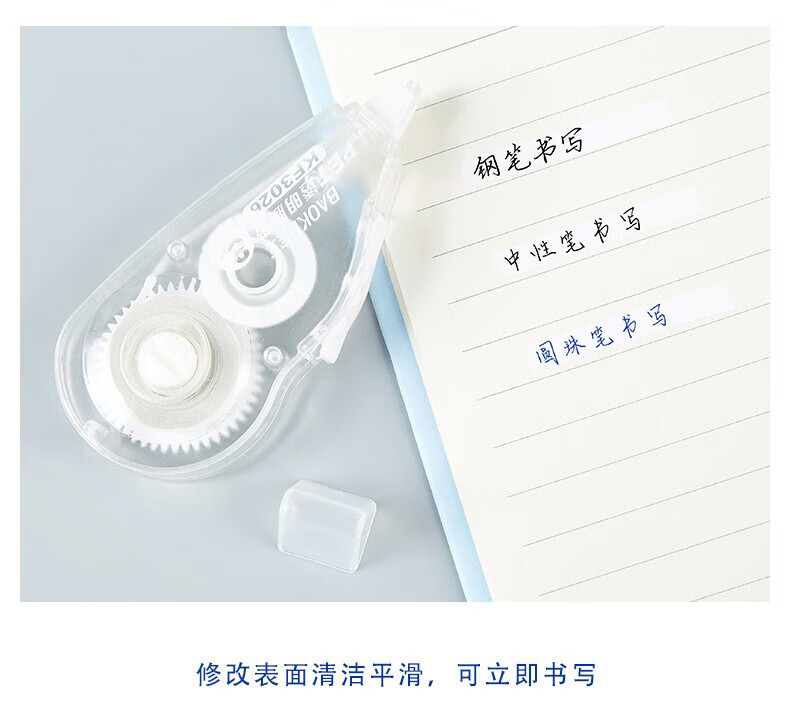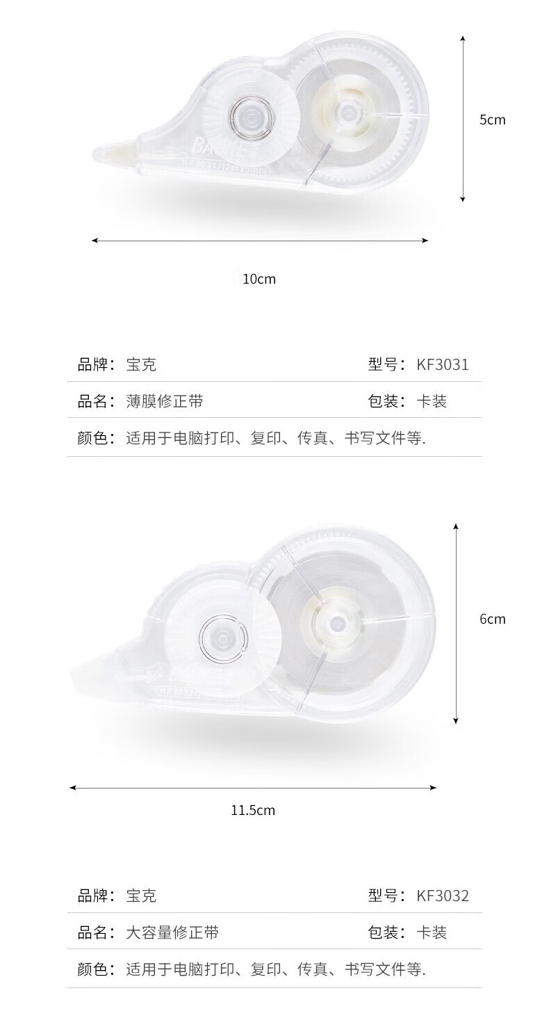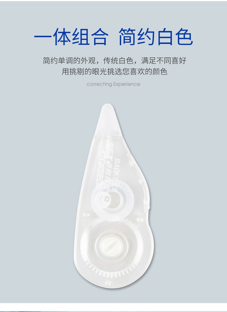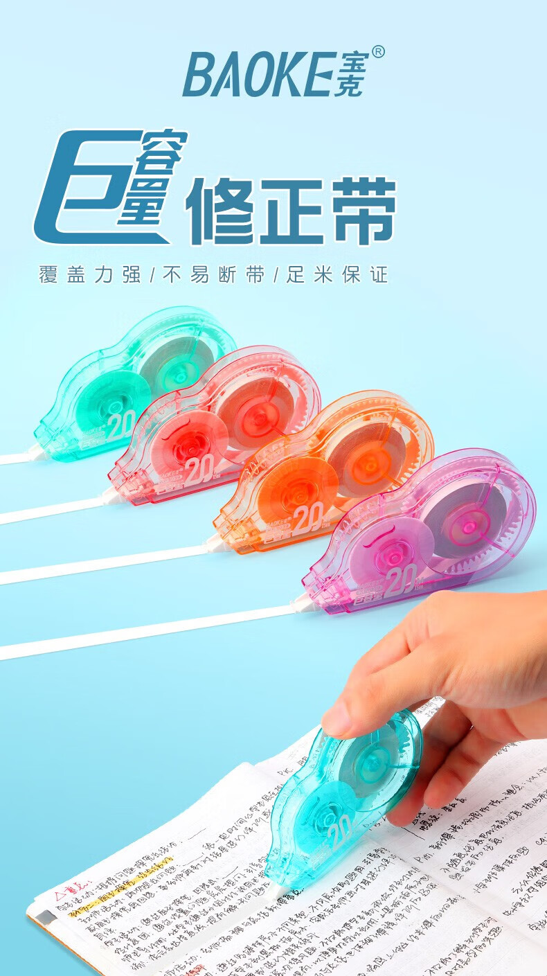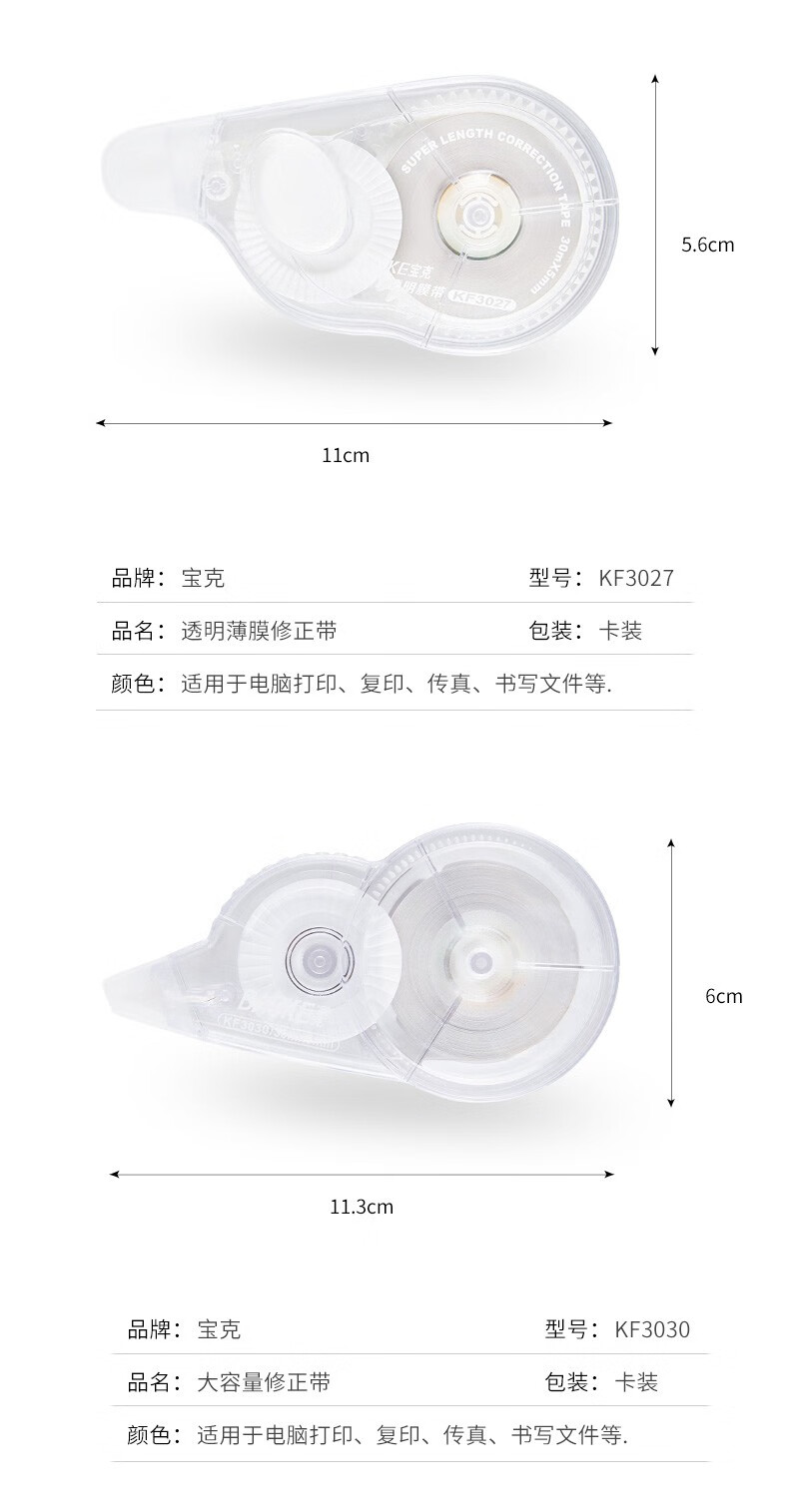 宝克(BAOKE) 学生办公修正带 平整顺滑 改正带 便携式简约 涂改带 学生文具 学习办公用品 12米*6支 透明 KF3066 6支分享装【包邮】