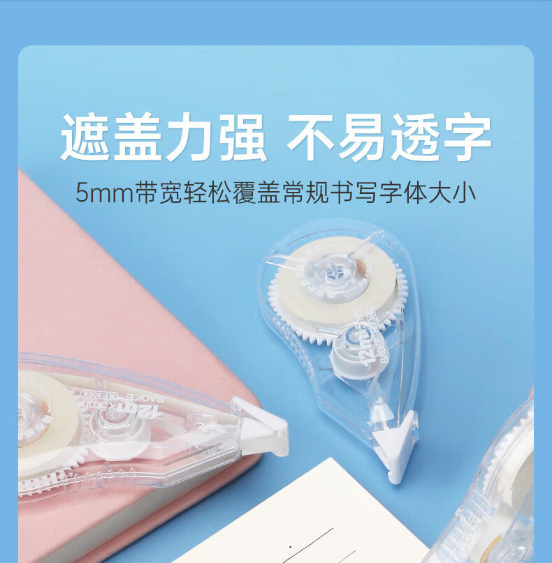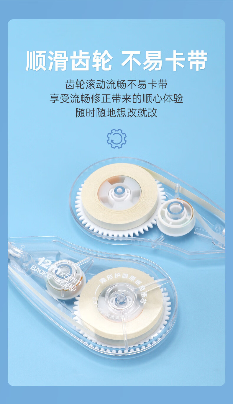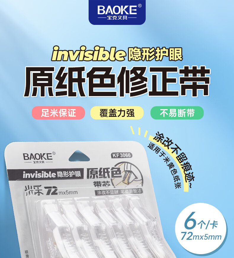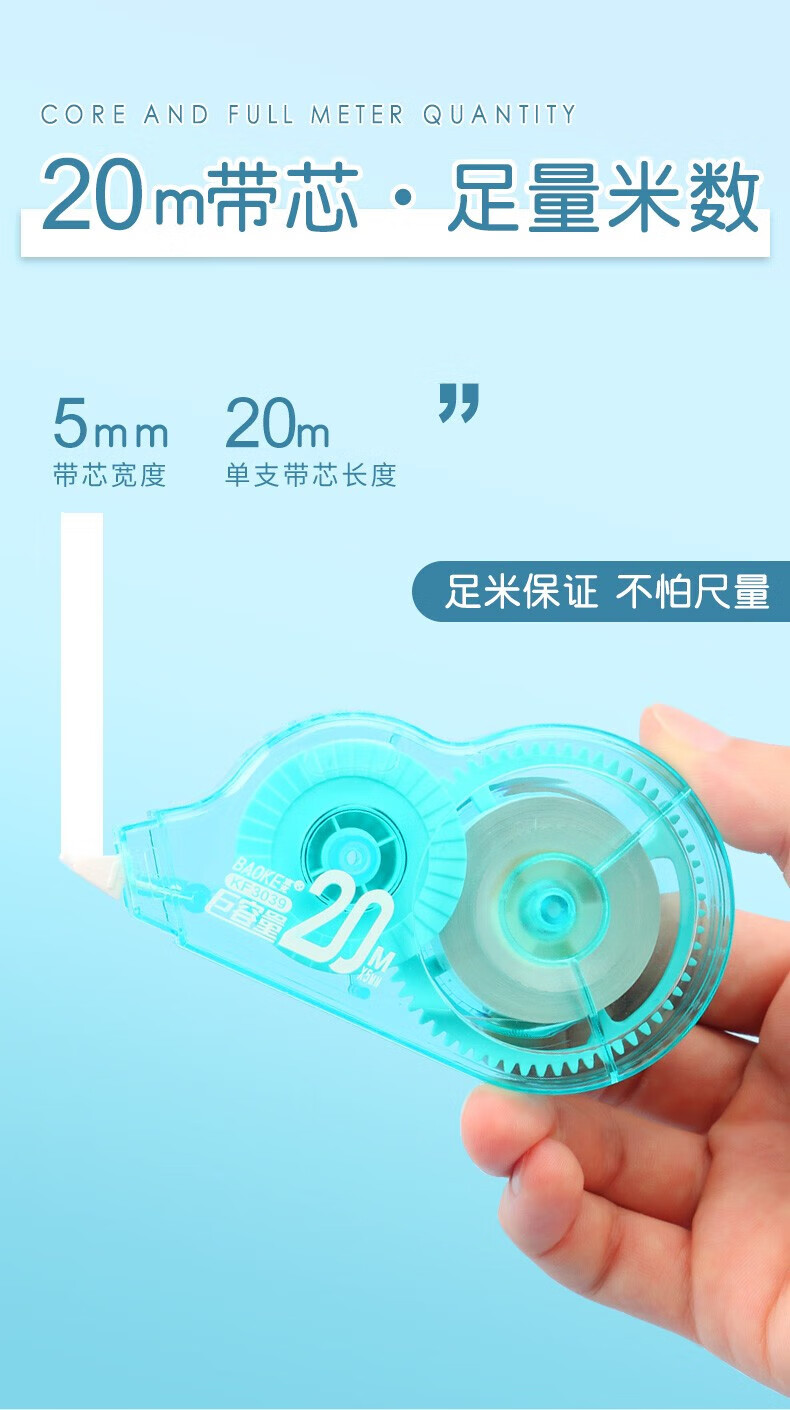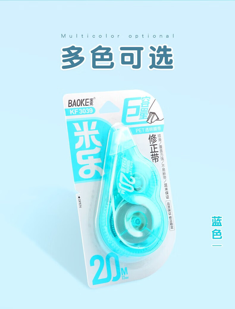 宝克(BAOKE) 学生办公修正带 平整顺滑 改正带 便携式简约 涂改带 学生文具 学习办公用品 12米*6支 透明 KF3066 6支分享装【包邮】