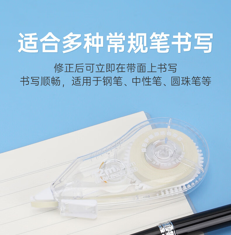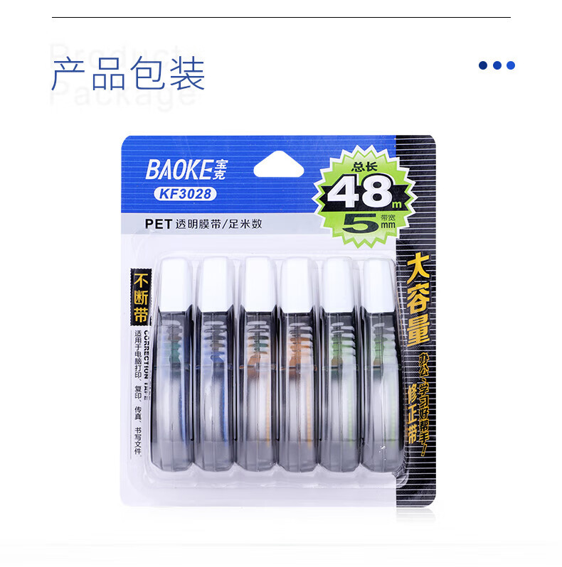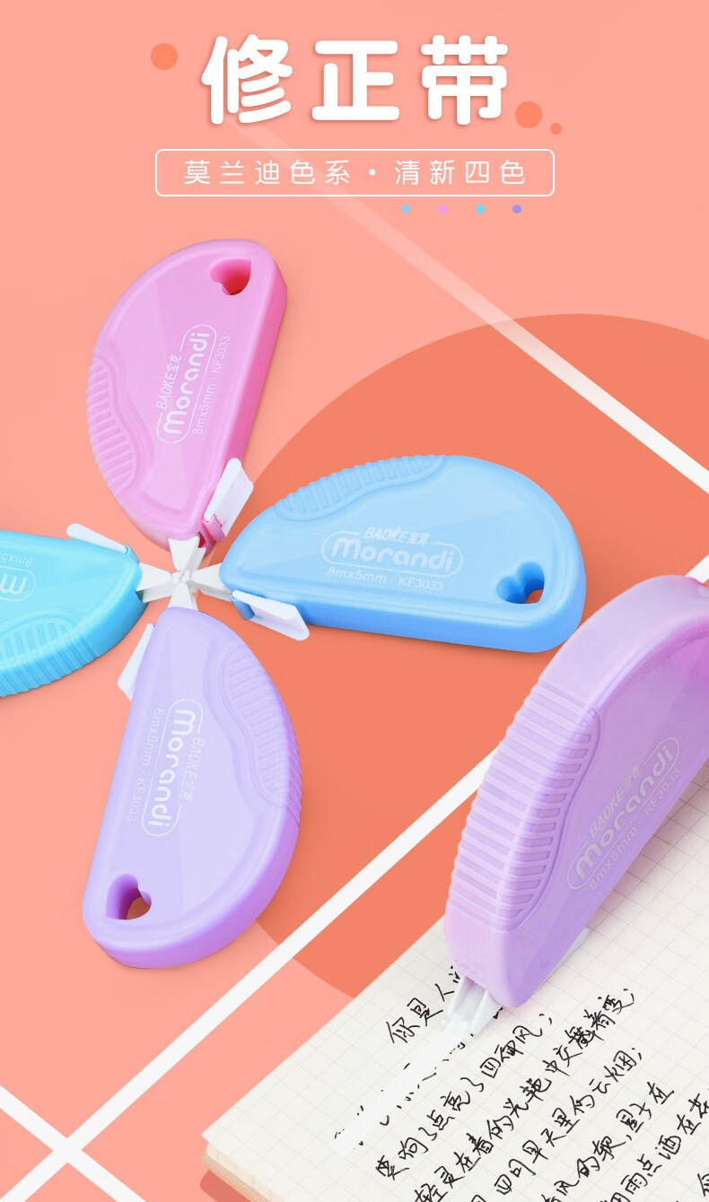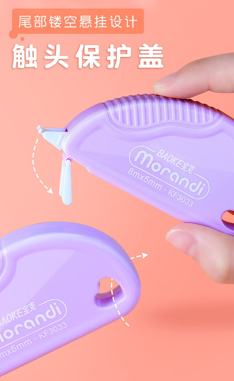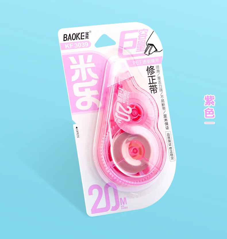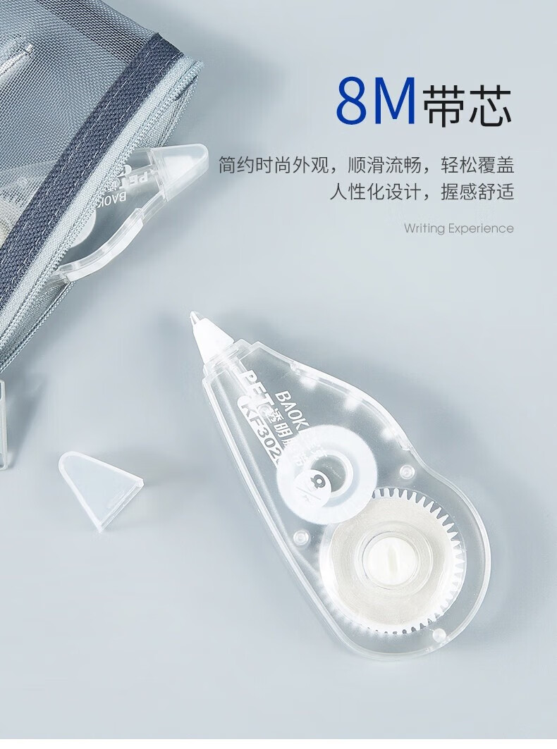 宝克(BAOKE) 学生办公修正带 平整顺滑 改正带 便携式简约 涂改带 学生文具 学习办公用品 12米*6支 透明 KF3066 6支分享装【包邮】