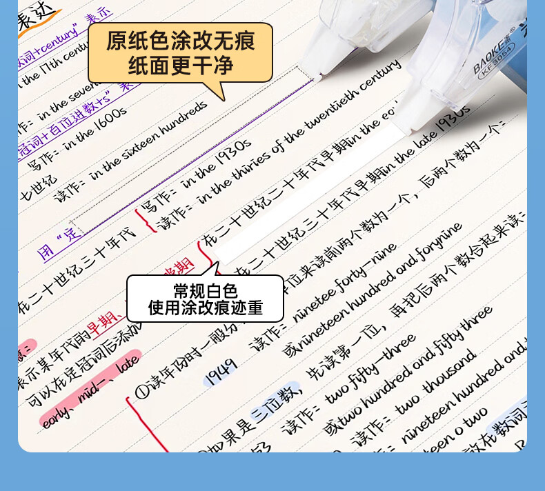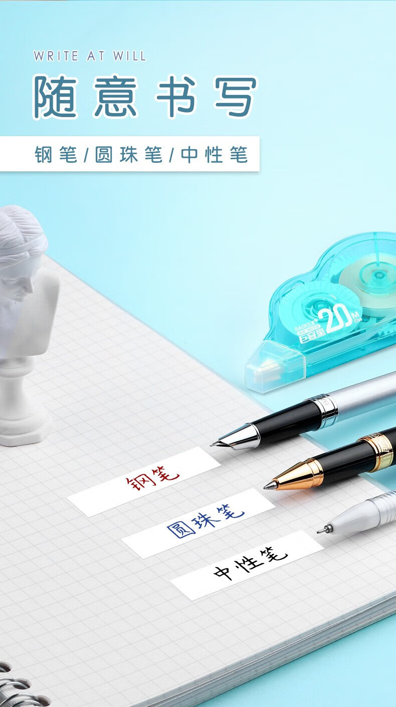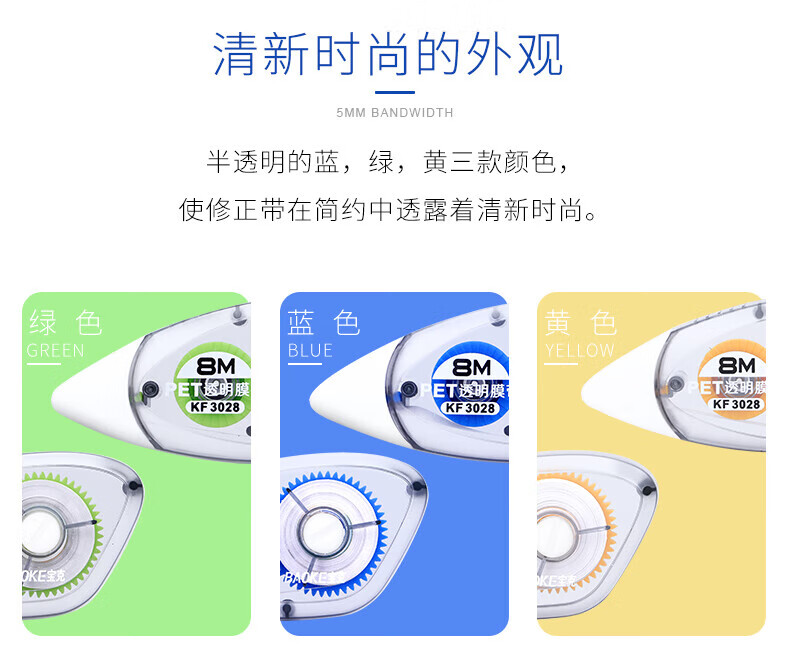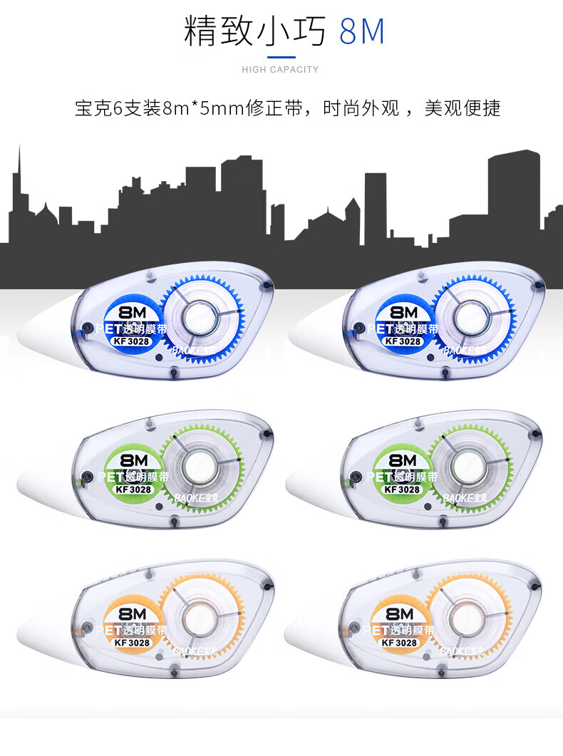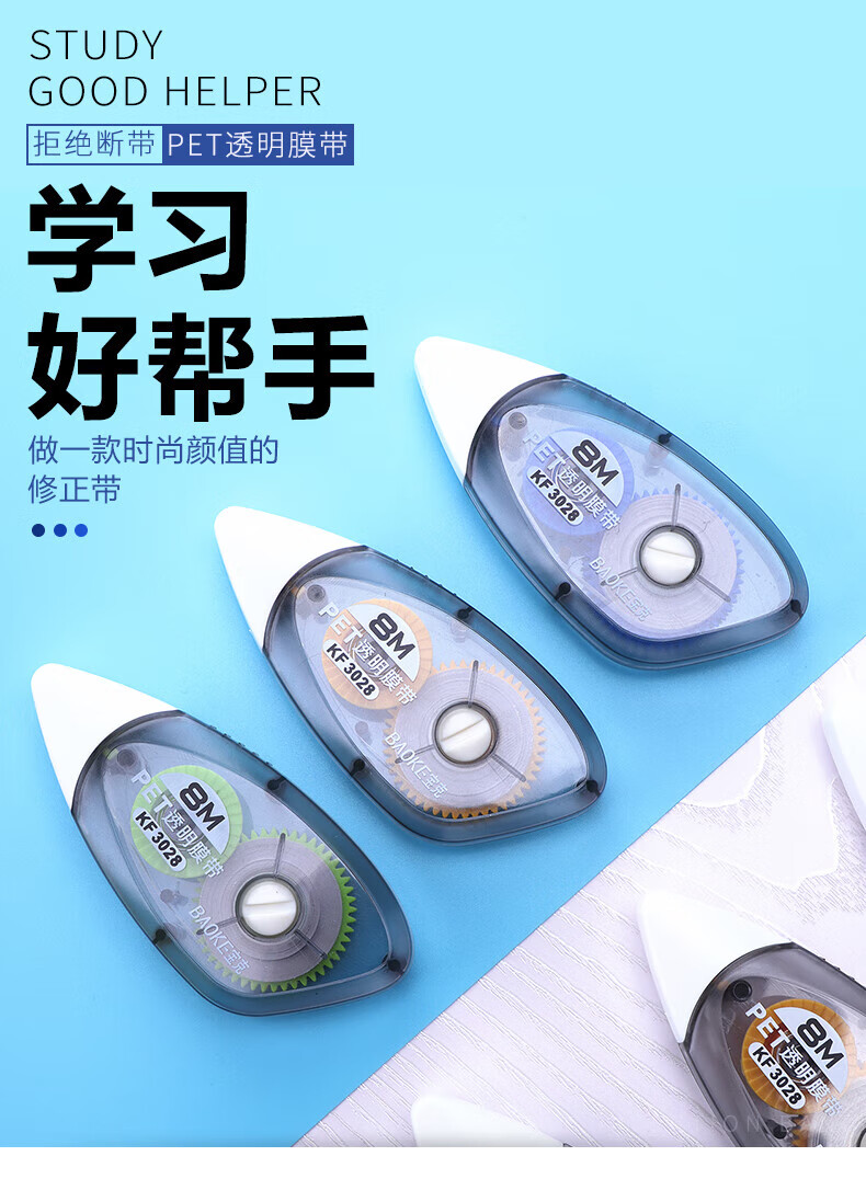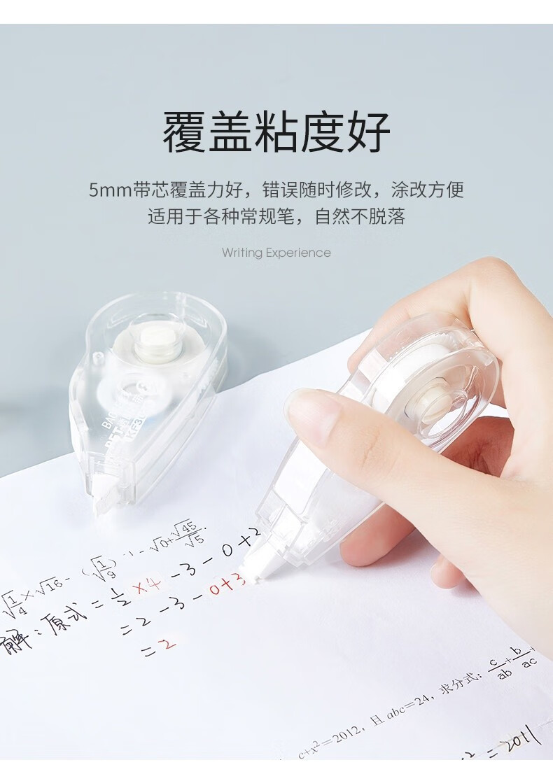 宝克(BAOKE) 学生办公修正带 平整顺滑 改正带 便携式简约 涂改带 学生文具 学习办公用品 12米*6支 透明 KF3066 6支分享装【包邮】