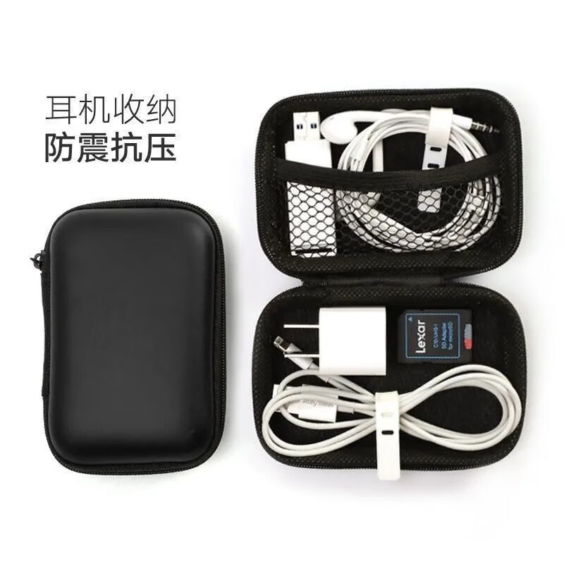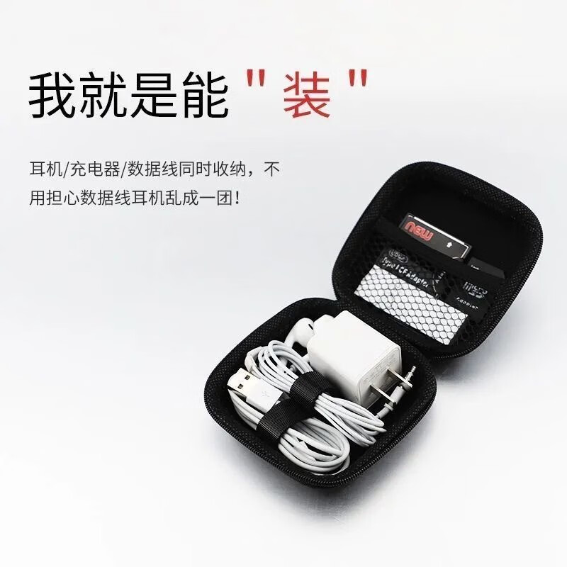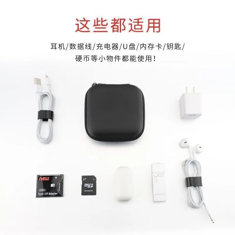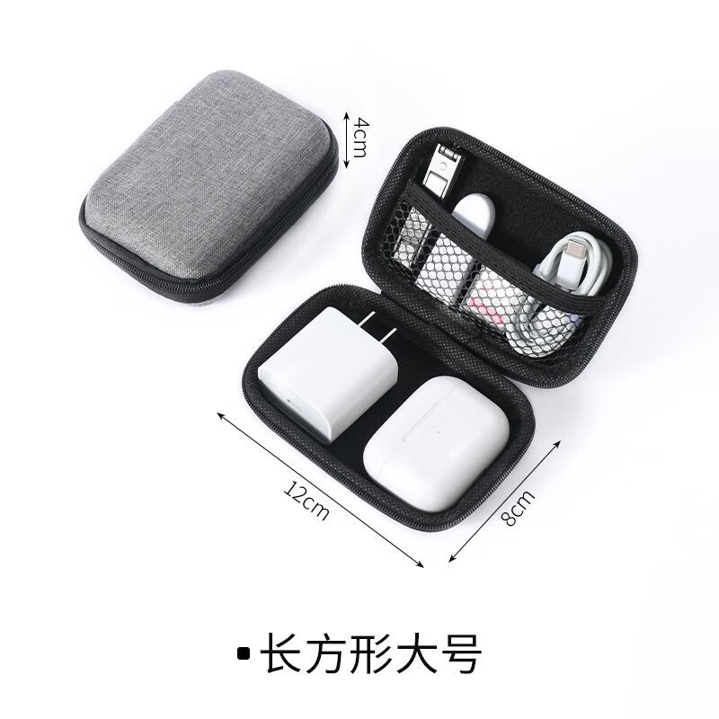 【万人好评】多功能收纳包便携旅行耳机包防震减压整理包大容量数据线充电器U盘内存卡收纳盒 雪花布方形大收纳盒12*8*4cm【一个装】