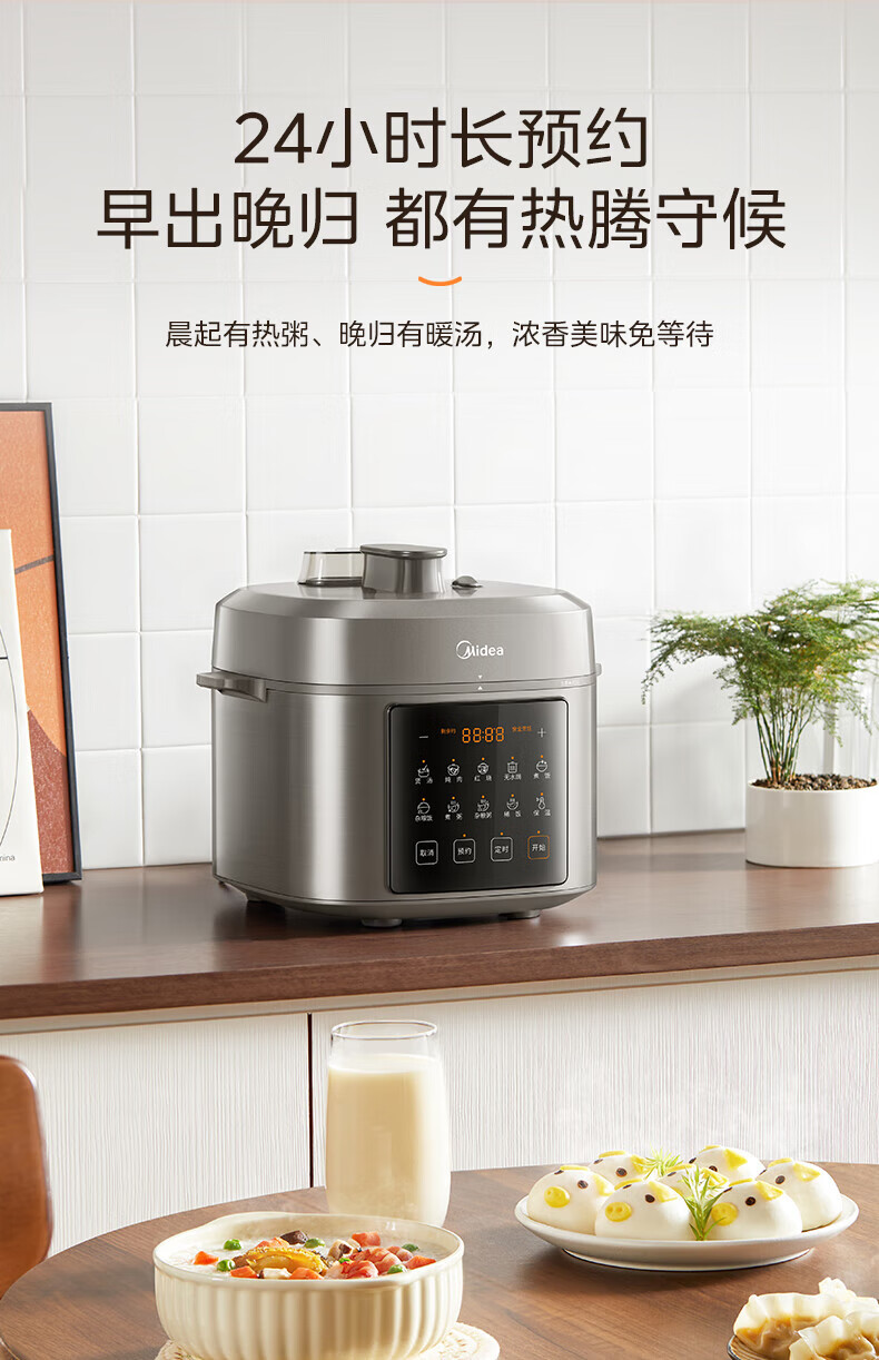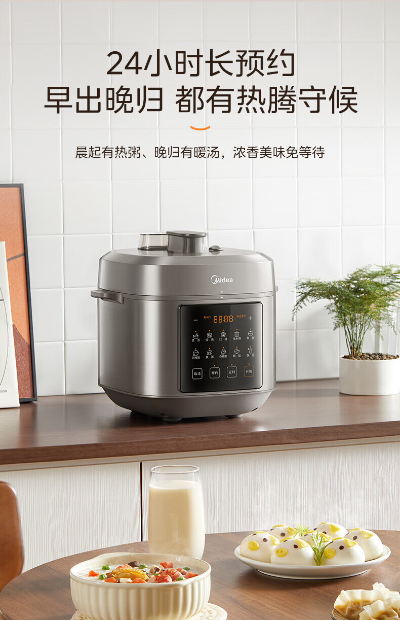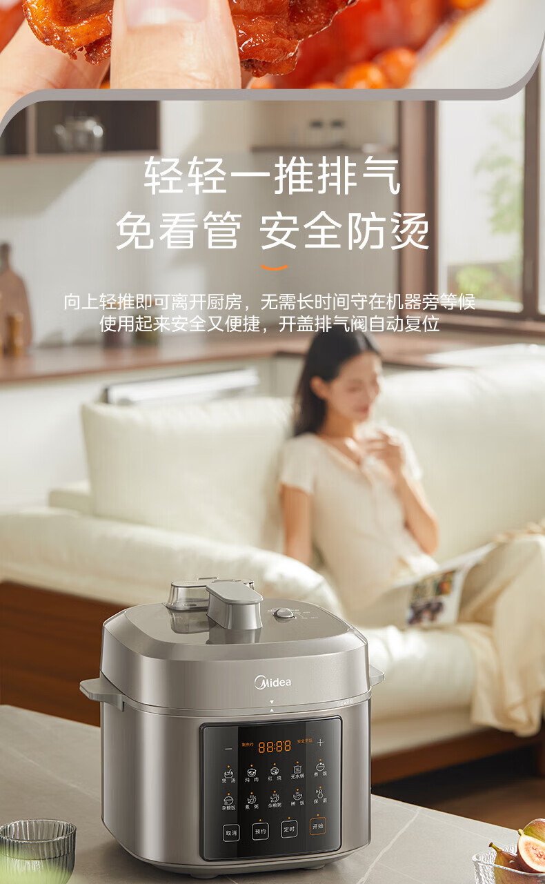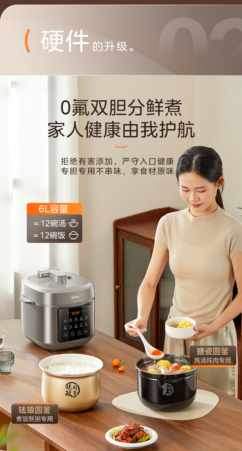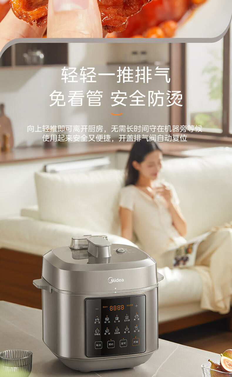 美的(Midea)0氟搪瓷珐琅球胆釜电压力锅5L双胆 全自动智能多功能预约 触控家用高压饭锅电饭煲4-6人MY-E5923 【0氟球胆】 5L