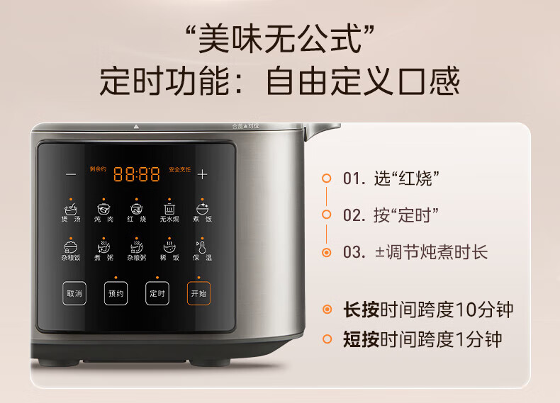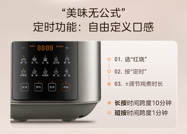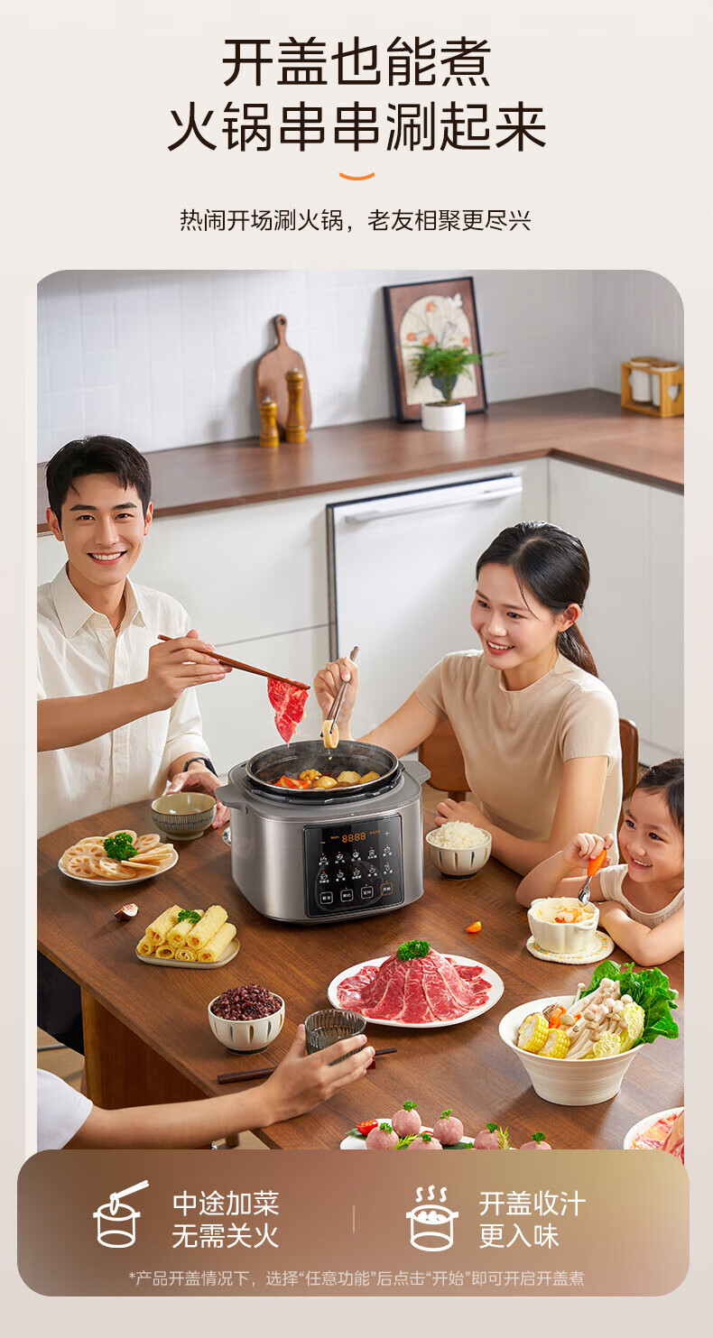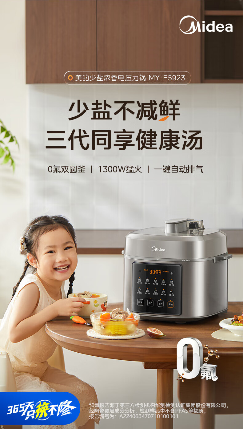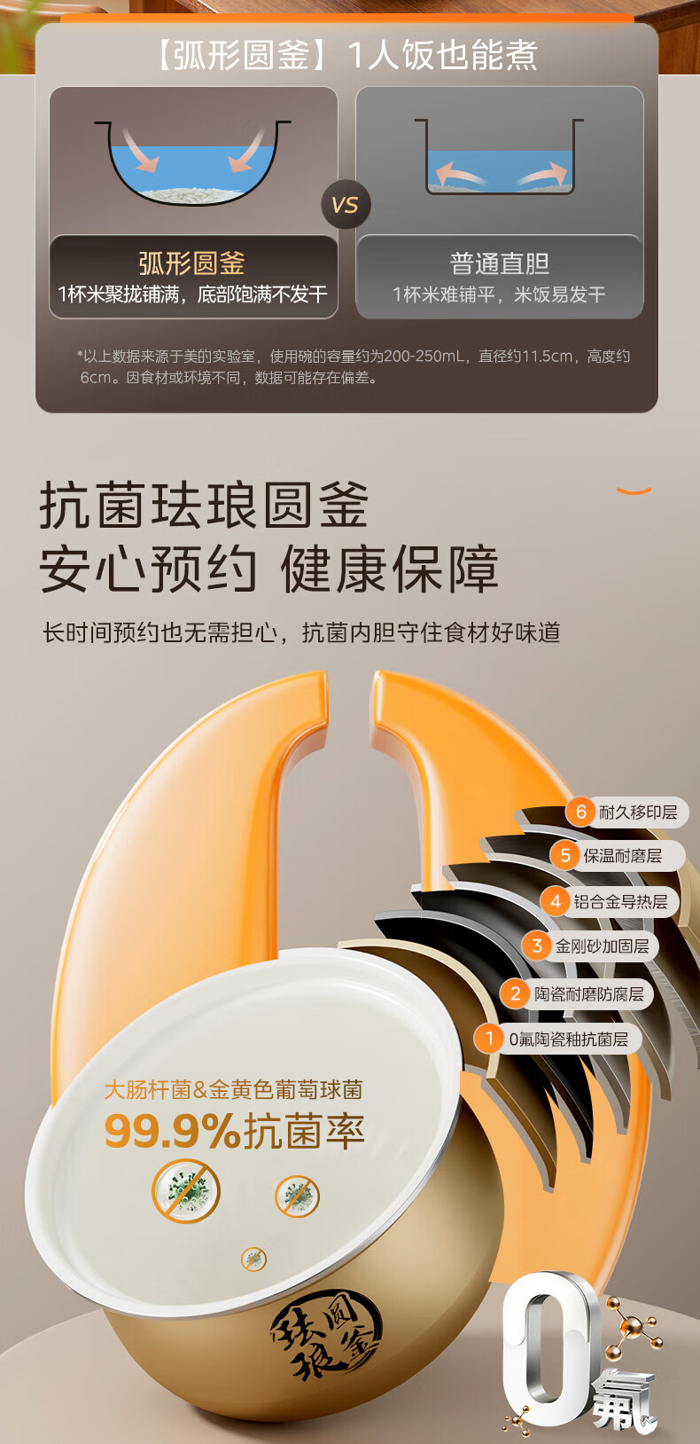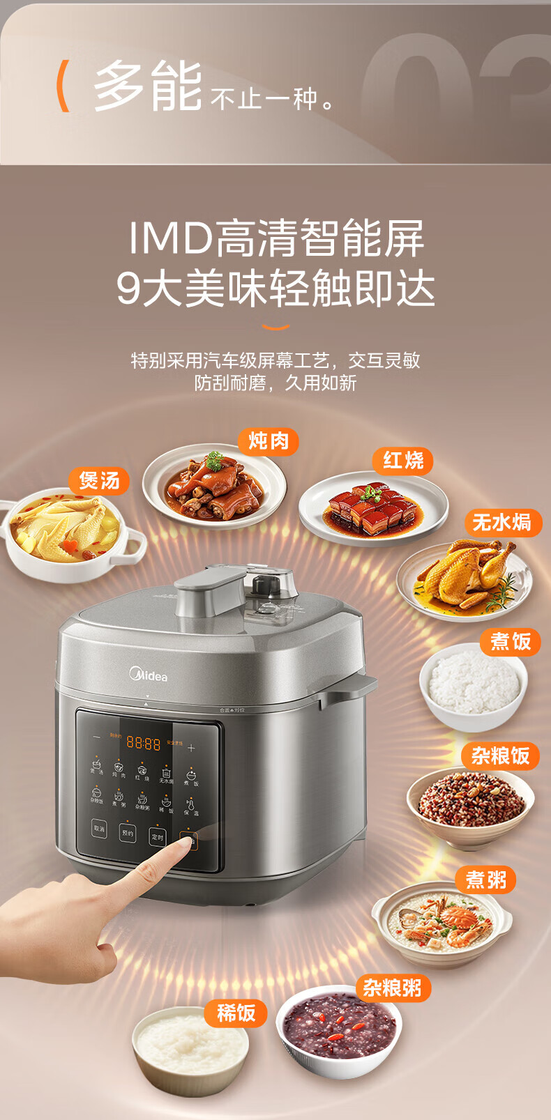 美的(Midea)0氟搪瓷珐琅球胆釜电压力锅5L双胆 全自动智能多功能预约 触控家用高压饭锅电饭煲4-6人MY-E5923 【0氟球胆】 5L