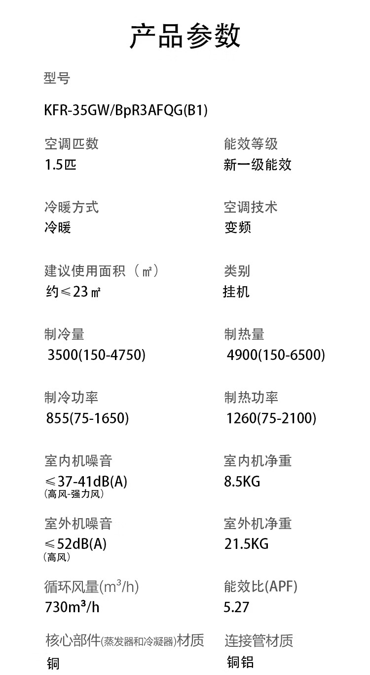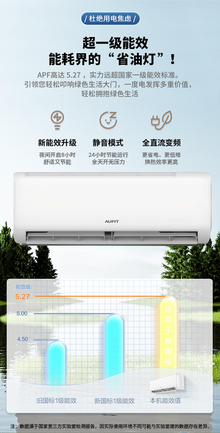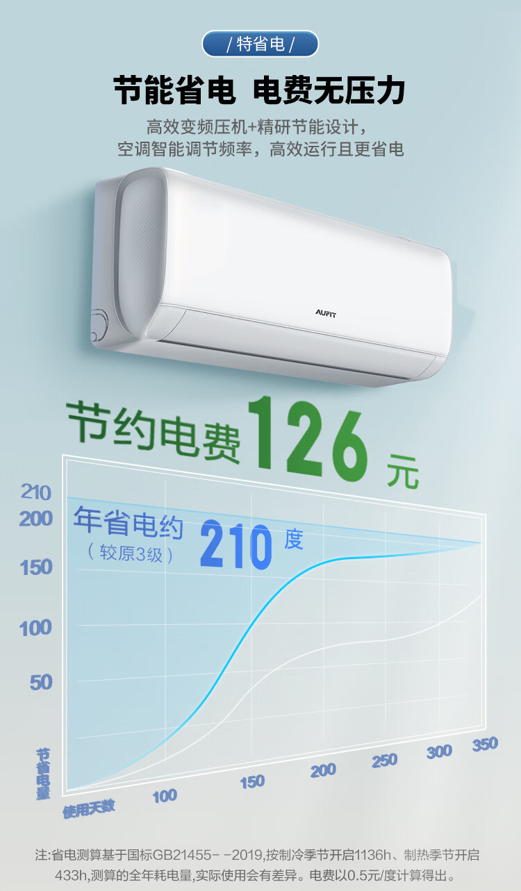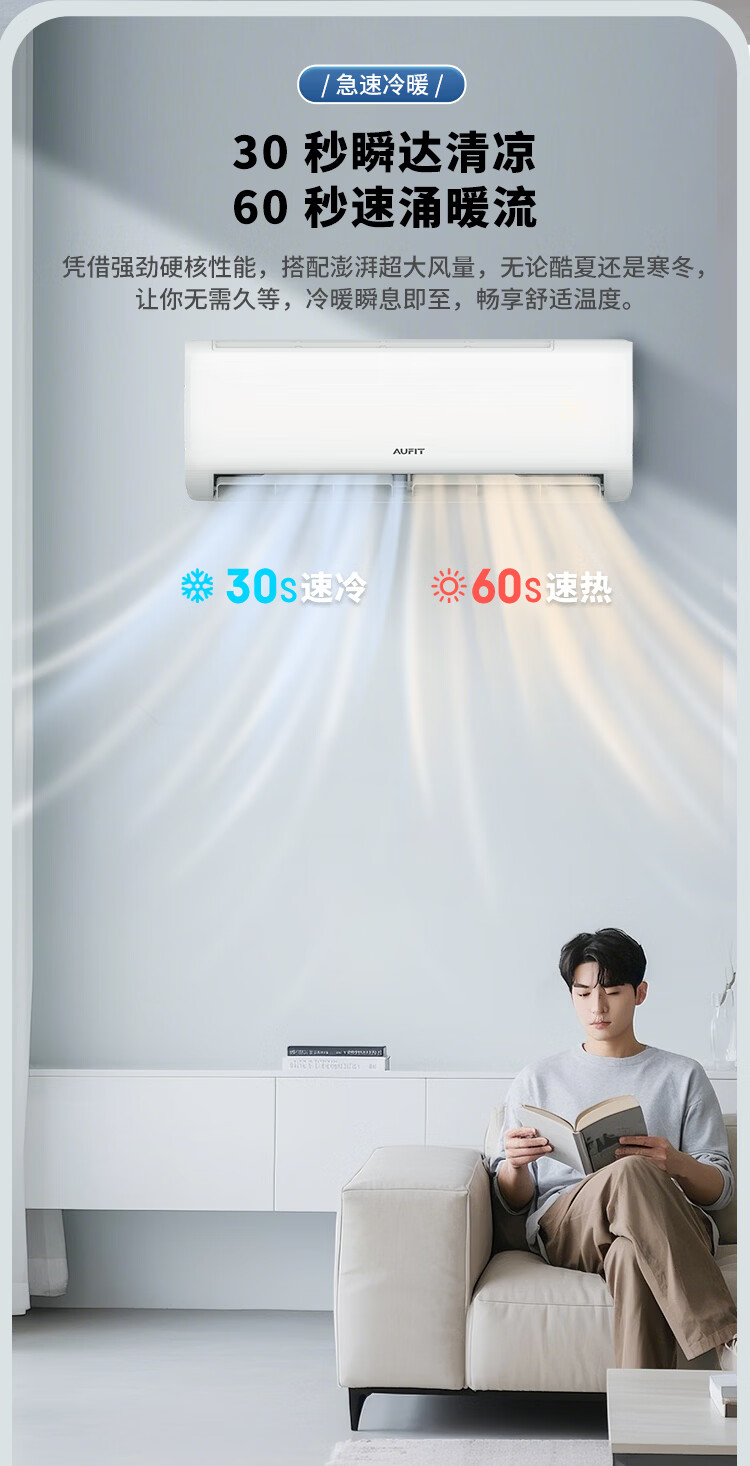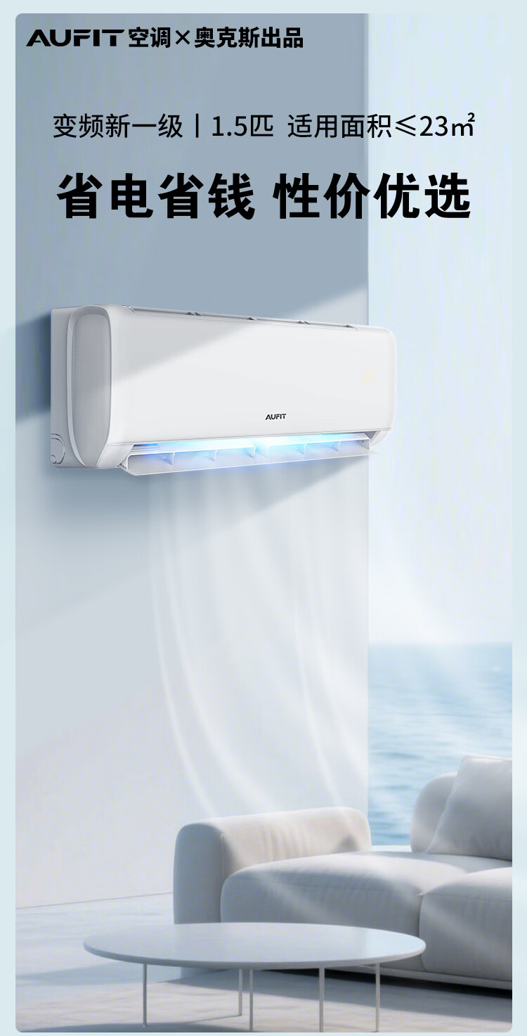 AUFIT大1.5匹空调挂机奥克斯出品新一级能效变频冷暖壁挂式 大风量双排铜管 自清洁 支持以旧换新补贴