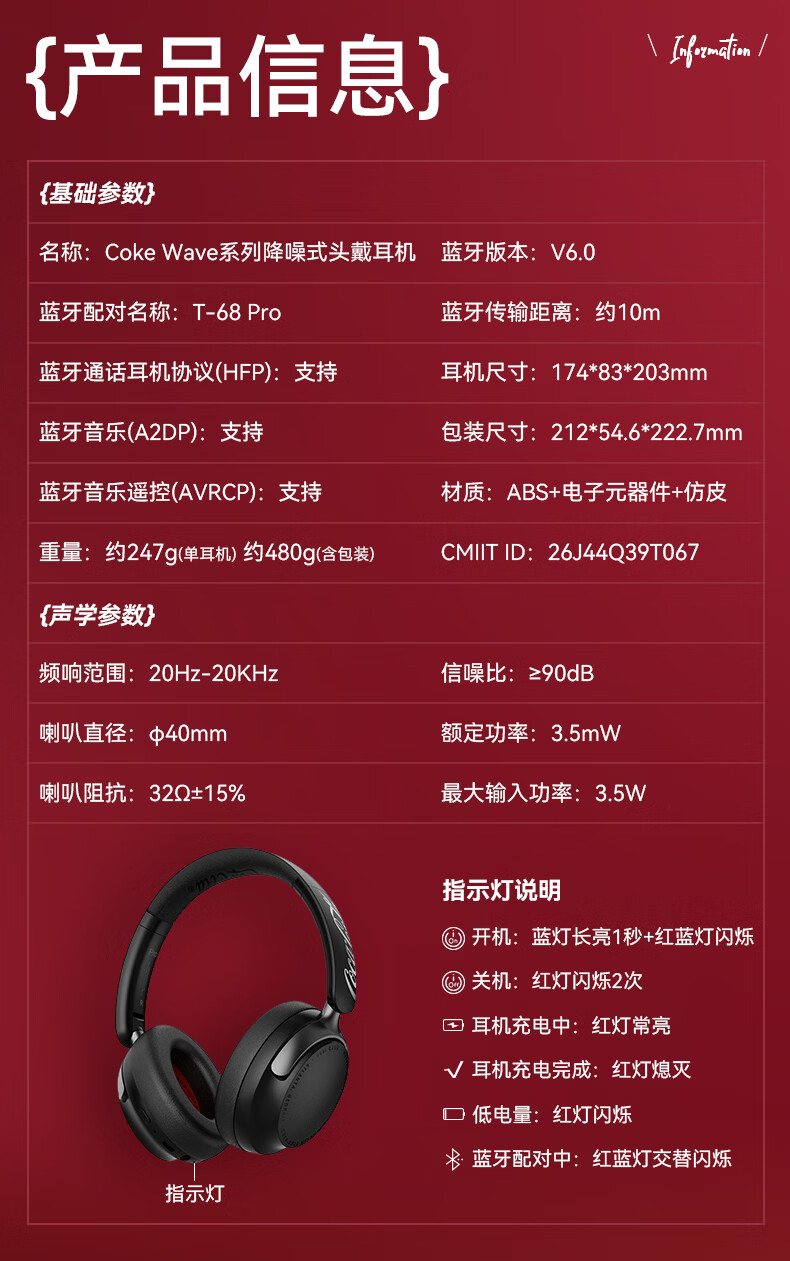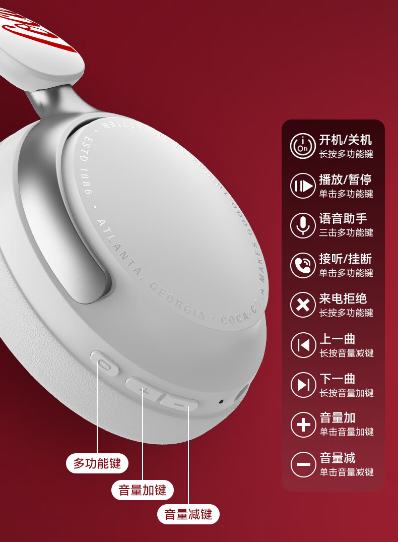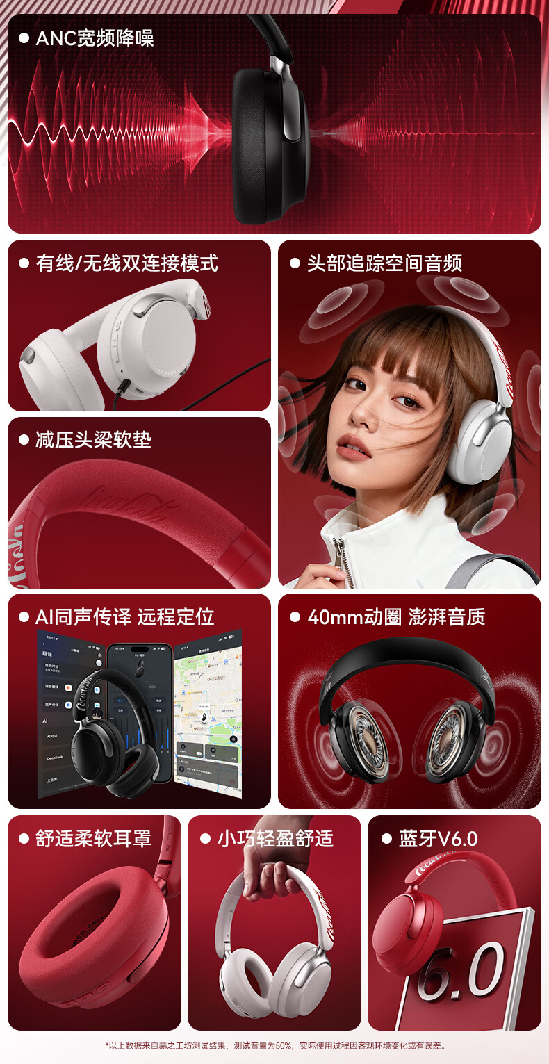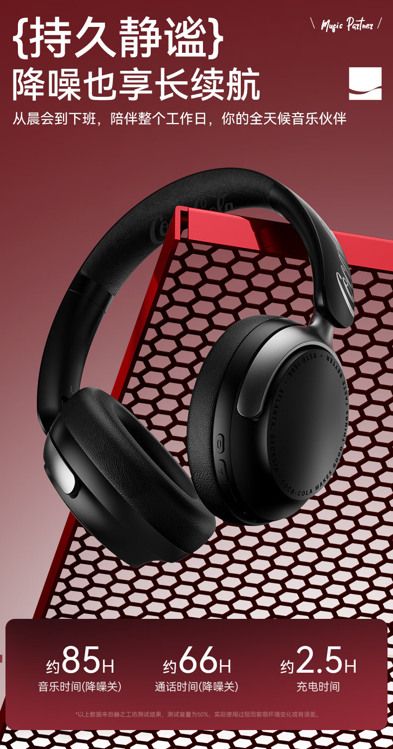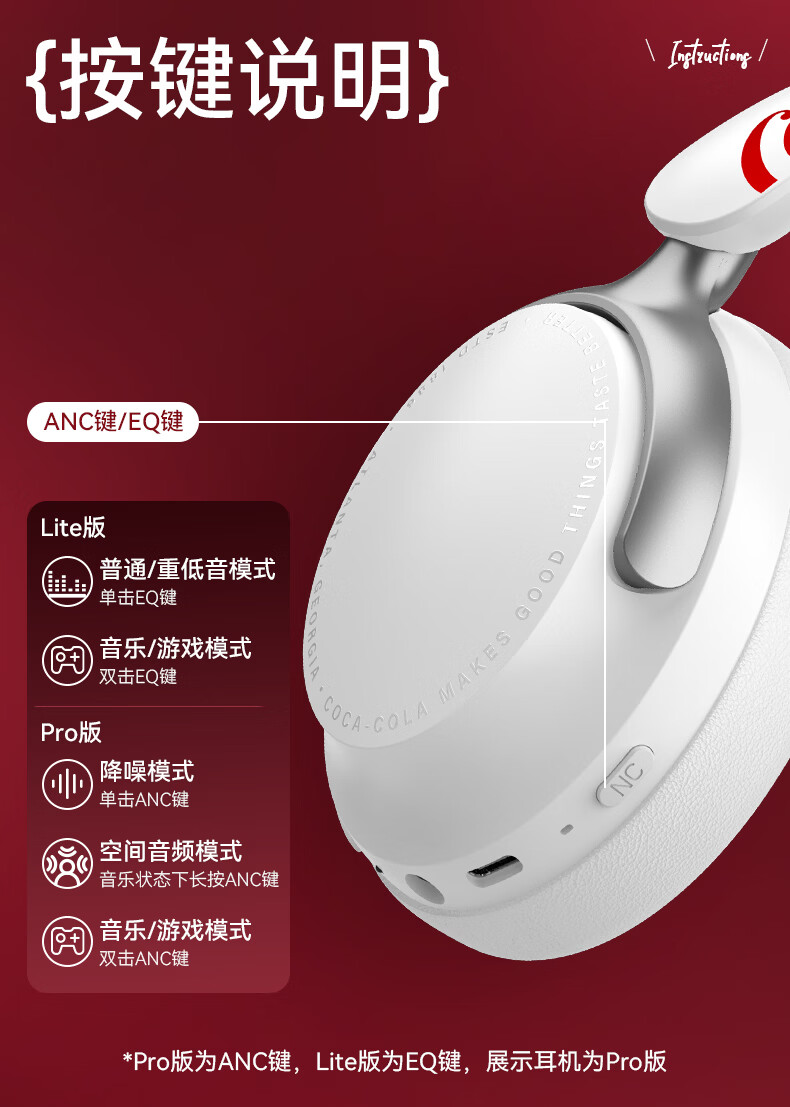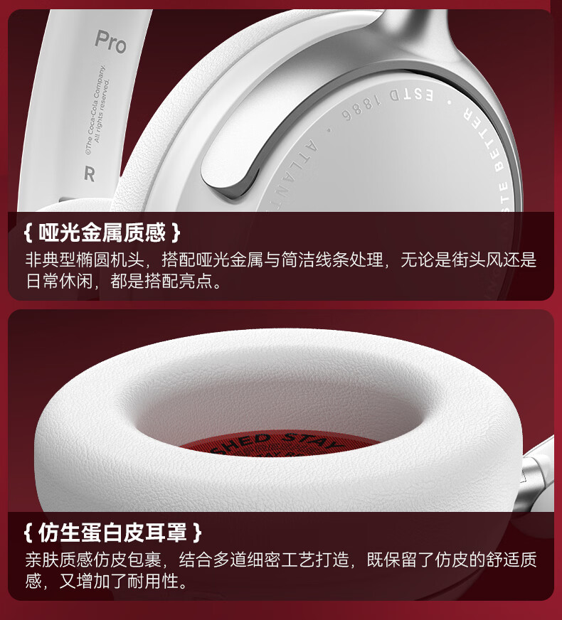 可口可乐【2026最新款丨旗舰顶配】T-68 Pro蓝牙耳机头戴式主动降噪空间音频游戏电竞运动无线长续航AI耳机