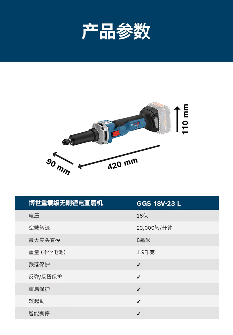 博世(BOSCH)GGS 18V-23 L重载级无刷锂电直磨机专业直磨打磨抛光机手持电磨机 无刷锂电直磨机(裸机)