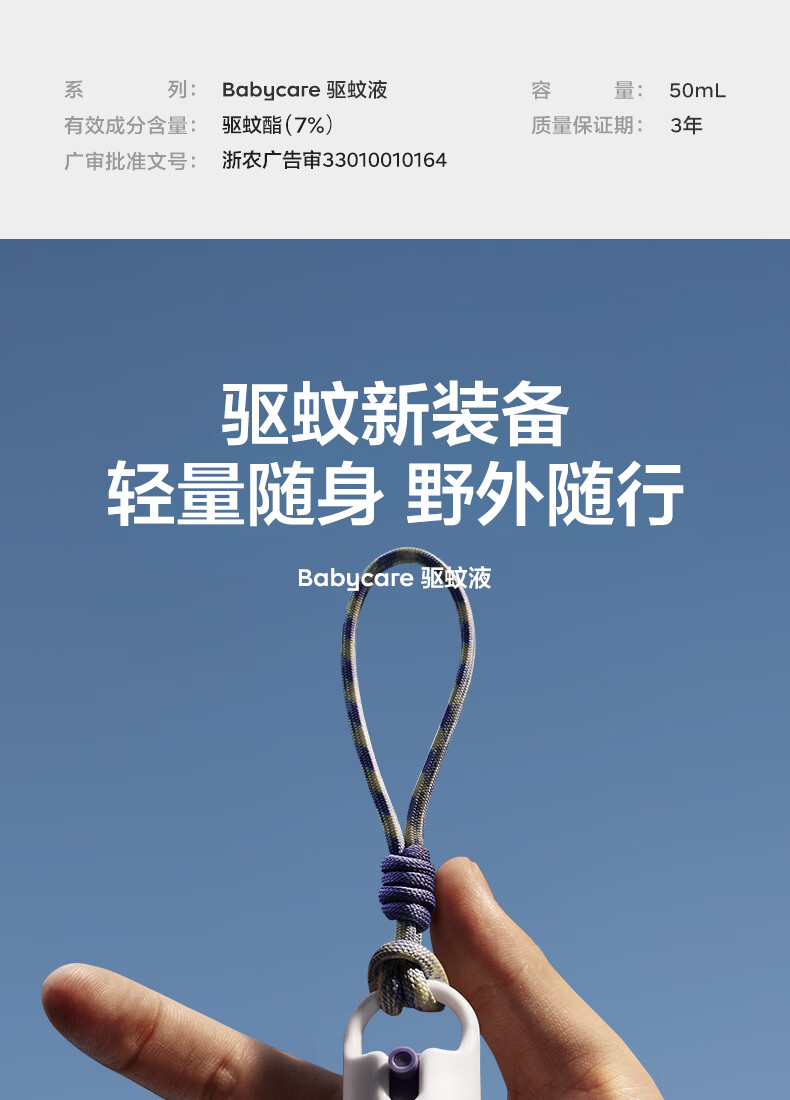 babycare云雾喷婴儿驱蚊液户外防驱蚊神器宝宝儿童母婴花露水7%羟哌酯50ml