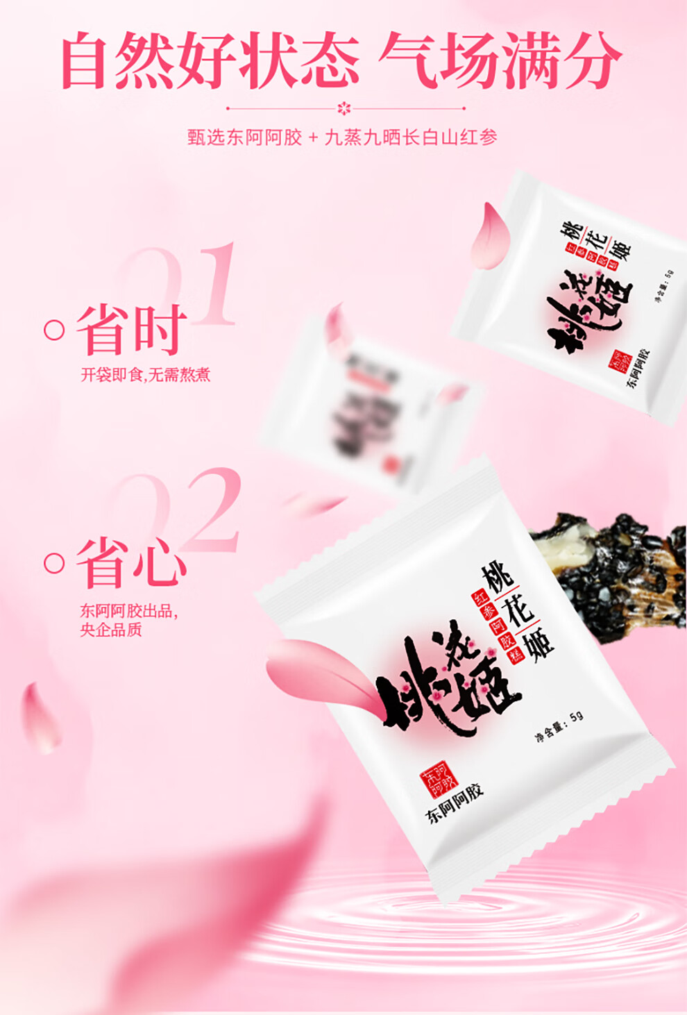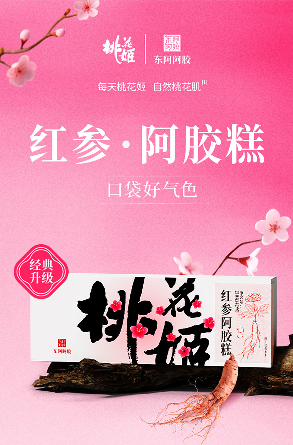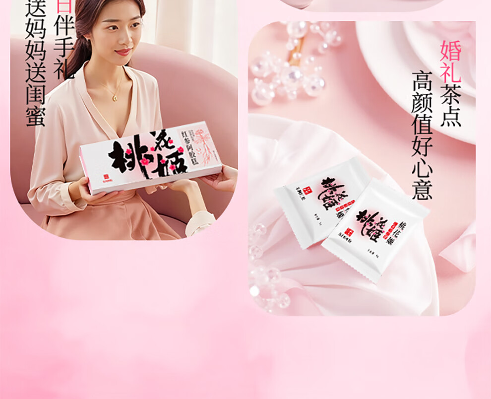 东阿阿胶桃花姬红参阿胶糕210g礼袋装送妈妈礼物送长辈女营养品滋养好礼