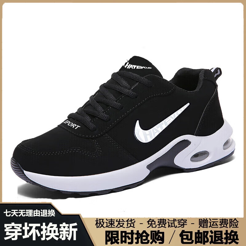 轻奢男鞋2026春季新款运动鞋男网面透气跑步鞋男士休闲百搭鞋子男 NK8866黑白【网面款】 41