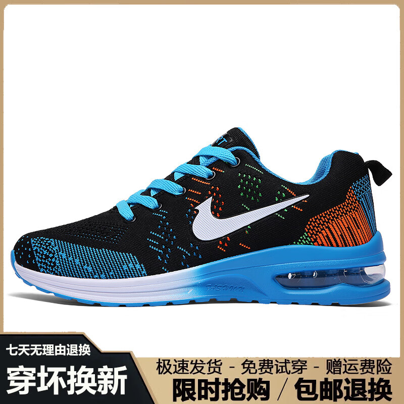 潮牌男鞋2026春夏季新款百搭透气网面跑步鞋男户外防滑运动鞋子男 NK-YF9201黑色 39