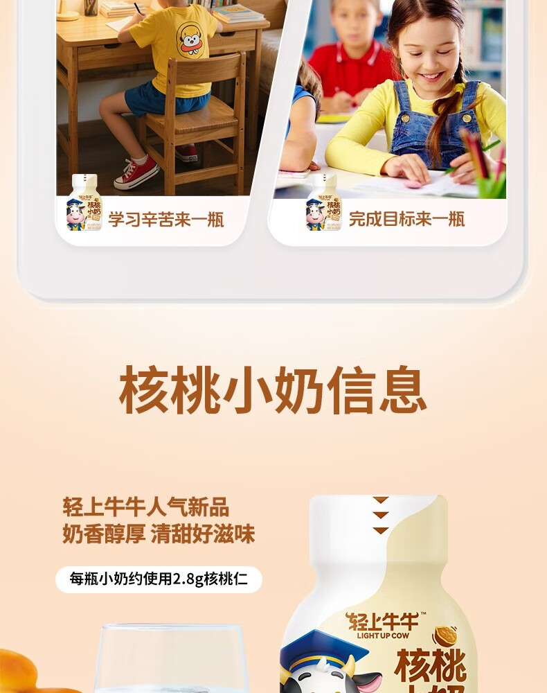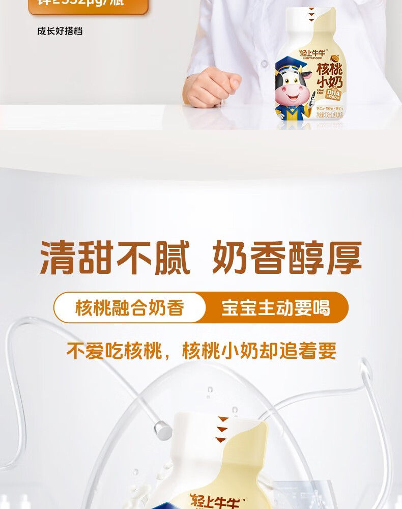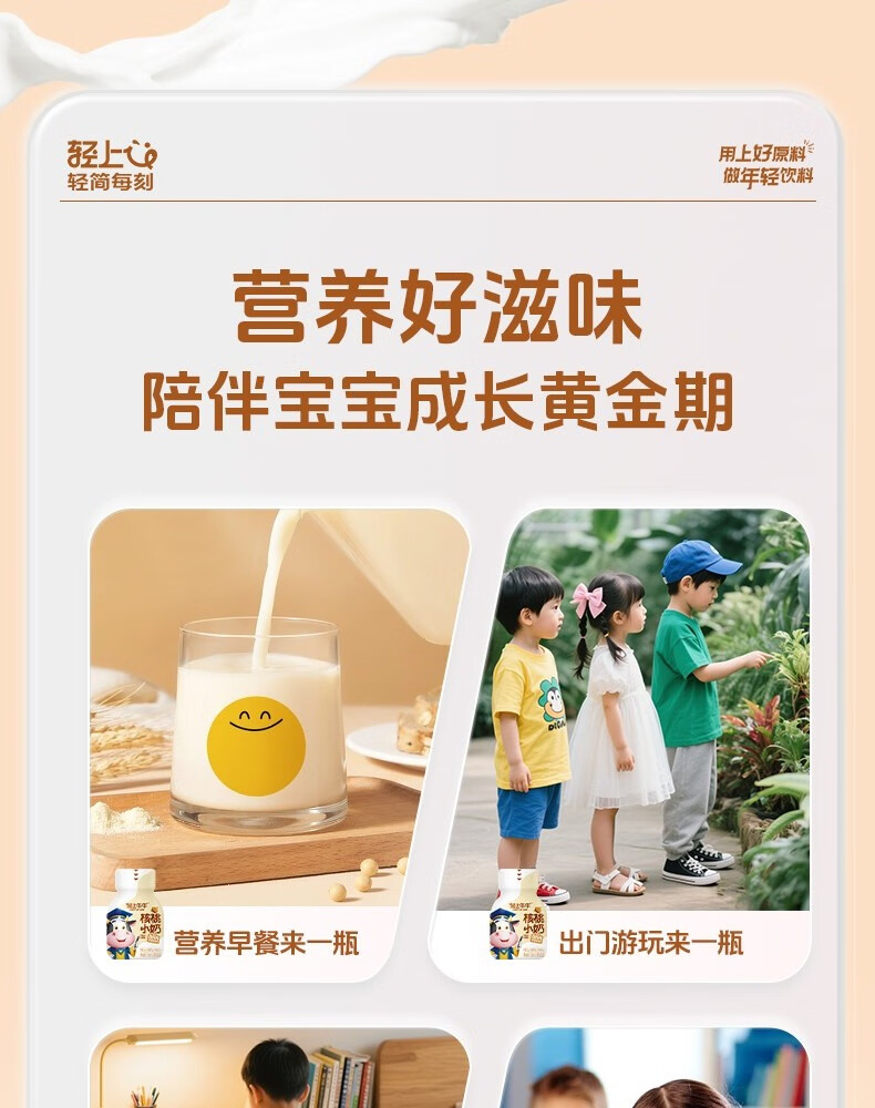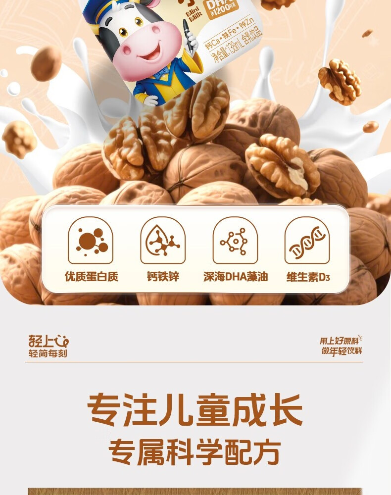 轻上【年货礼盒】核桃小奶儿童牛奶饮品含DHA钙铁锌青少年成长奶饮料 黄芽汤245ml*10瓶