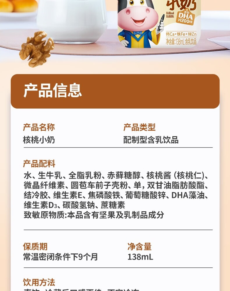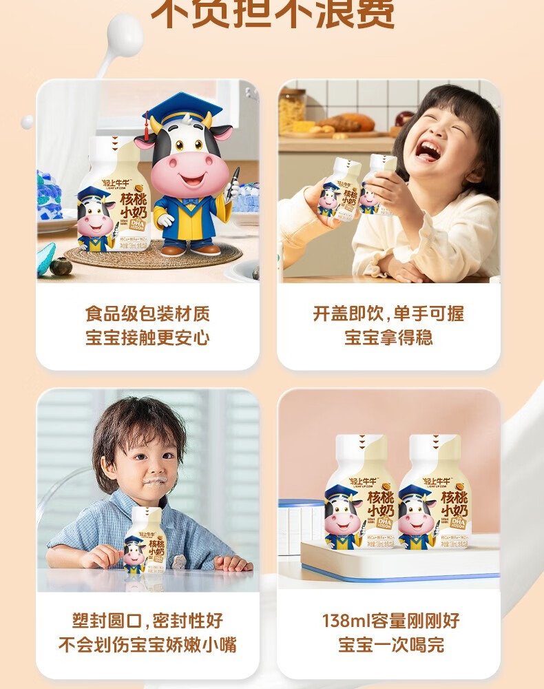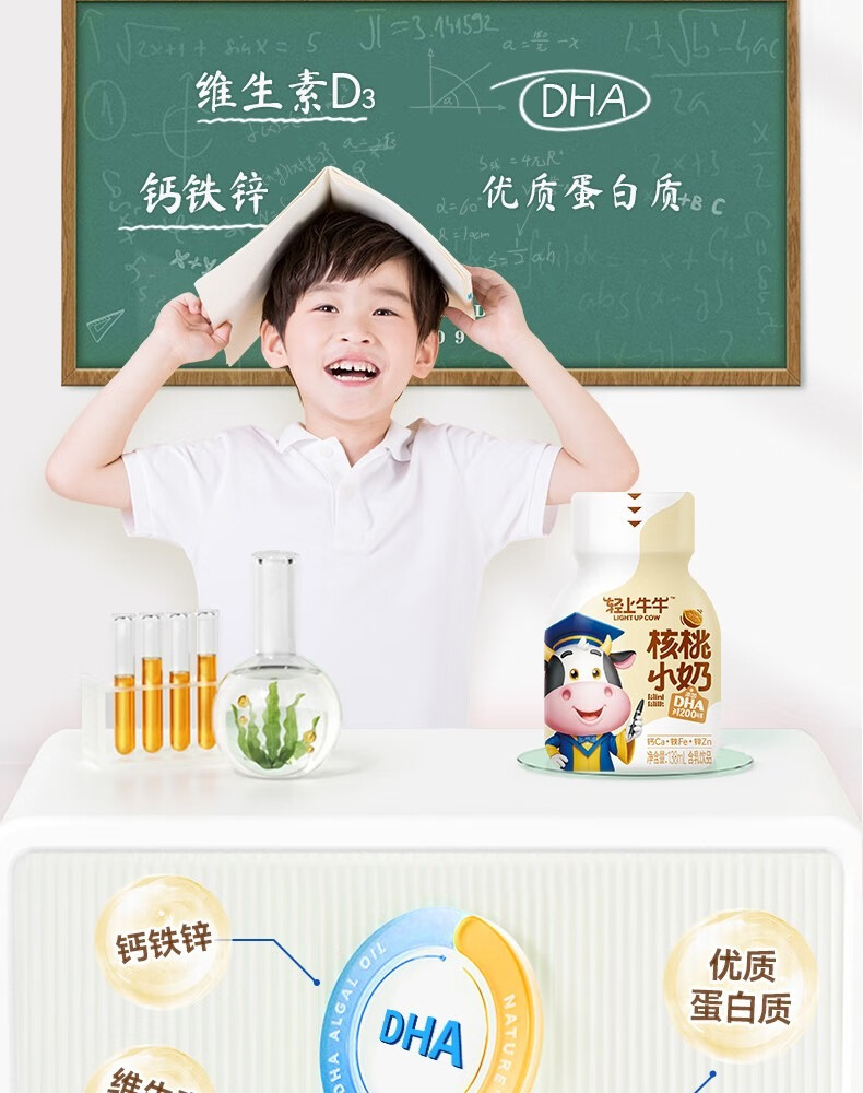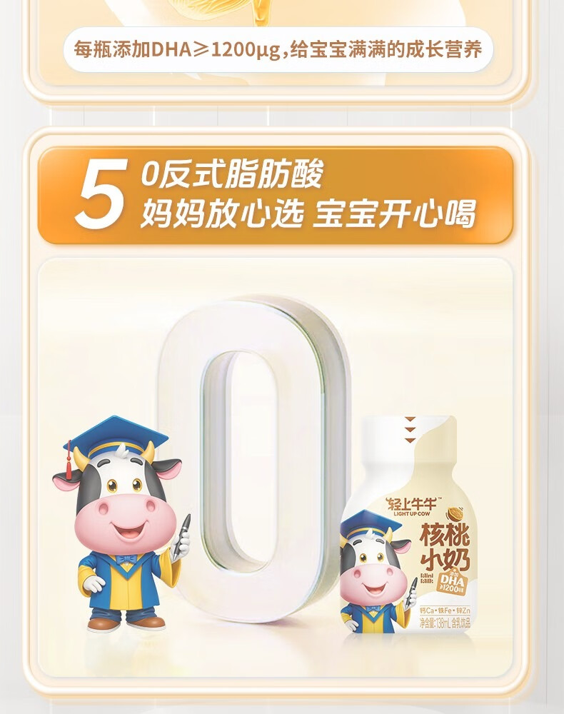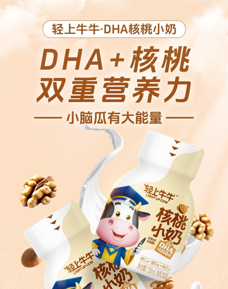 轻上【年货礼盒】核桃小奶儿童牛奶饮品含DHA钙铁锌青少年成长奶饮料 黄芽汤245ml*10瓶