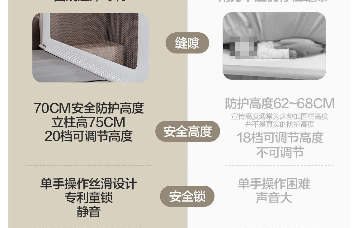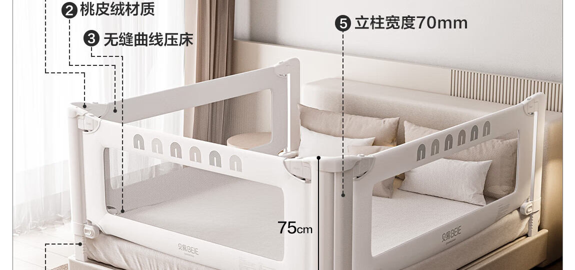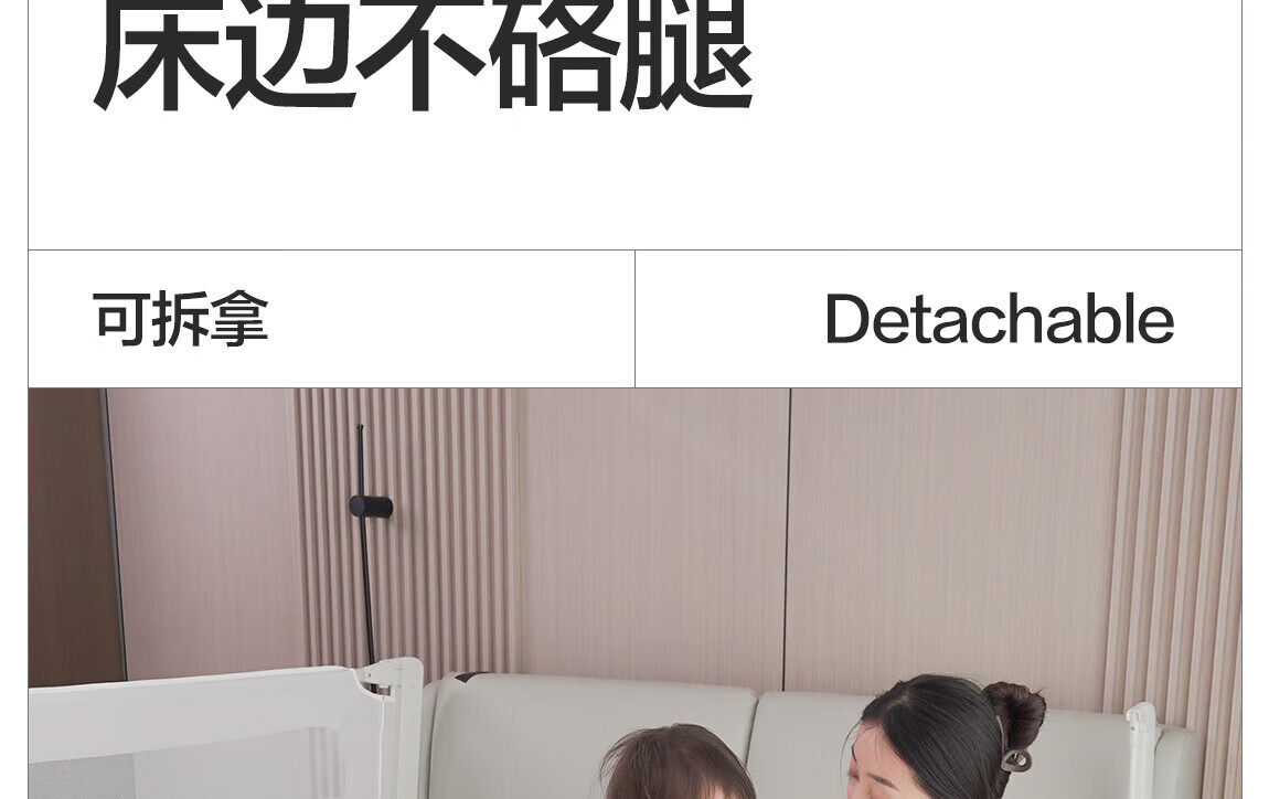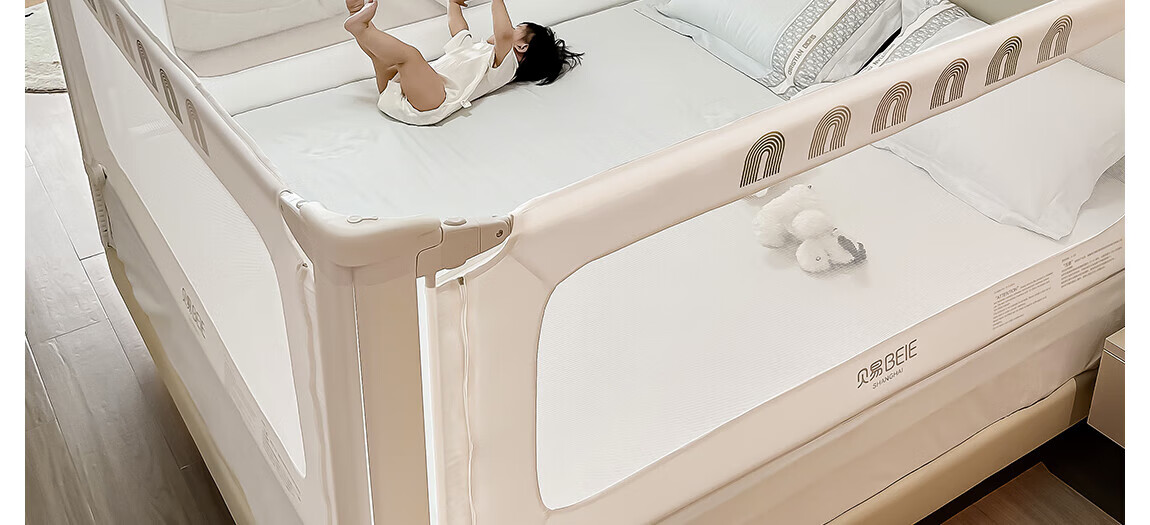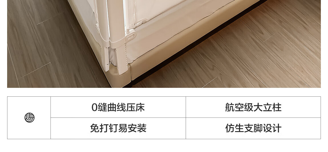 贝易婴儿床围栏宝宝防摔防护栏床边挡板防掉档板免打孔三面1.8×2m