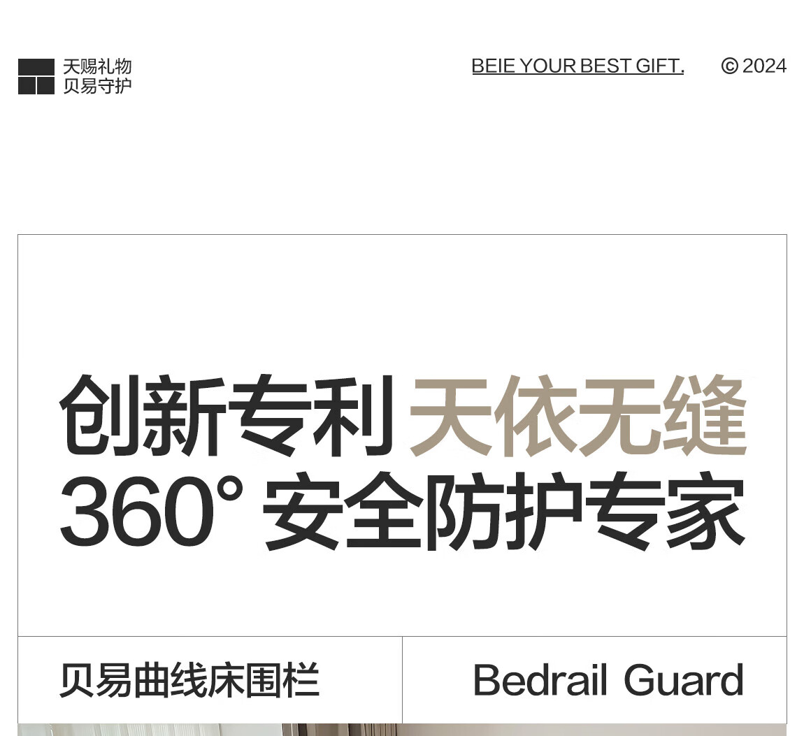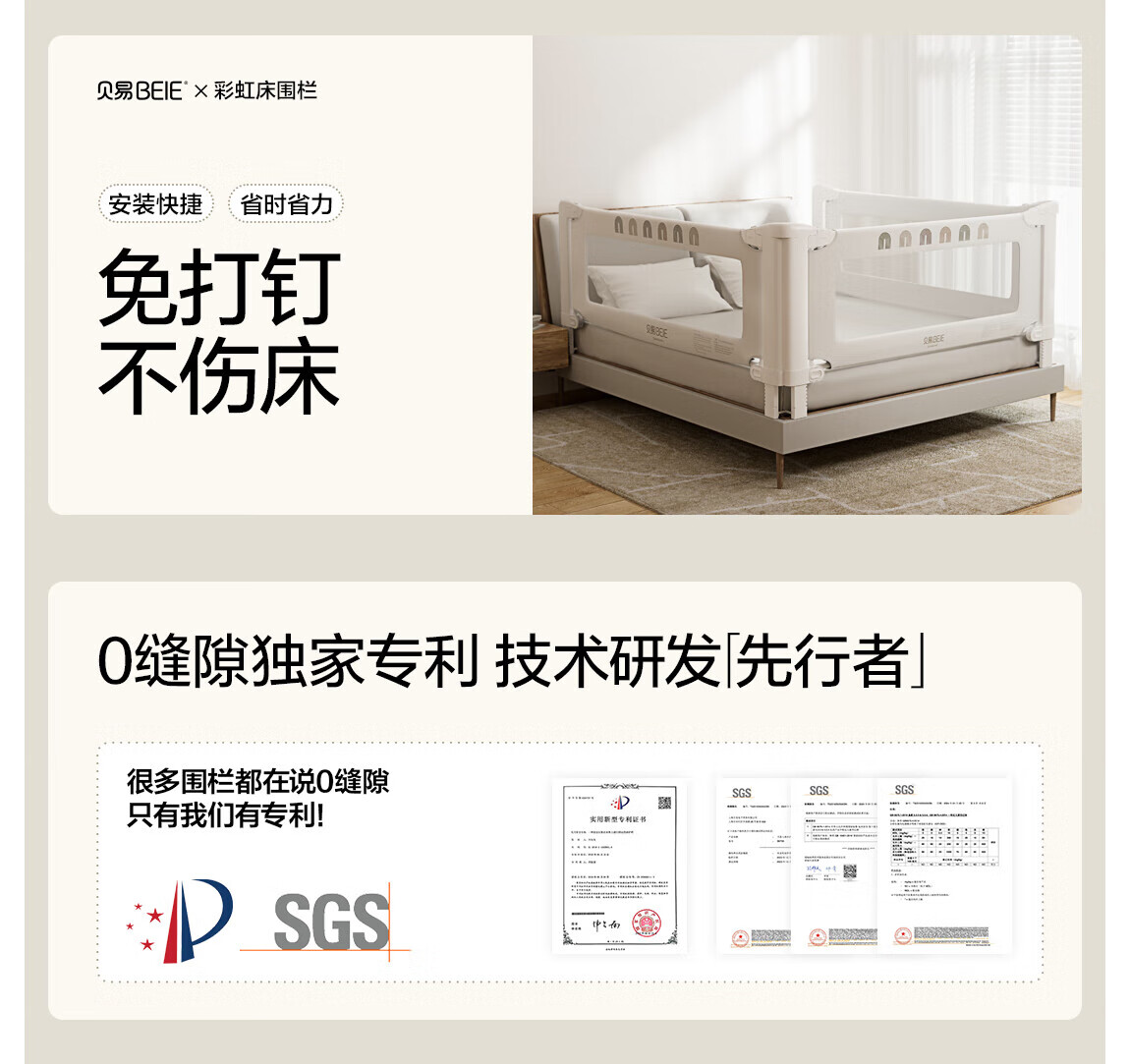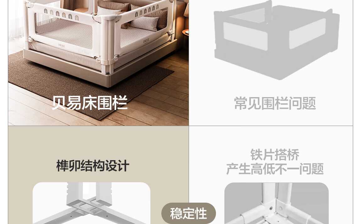 贝易婴儿床围栏宝宝防摔防护栏床边挡板防掉档板免打孔三面1.8×2m