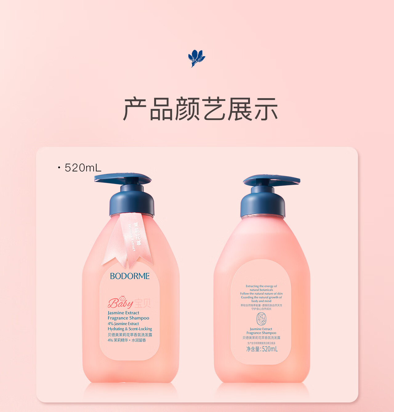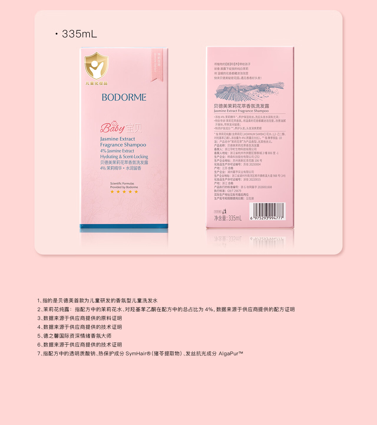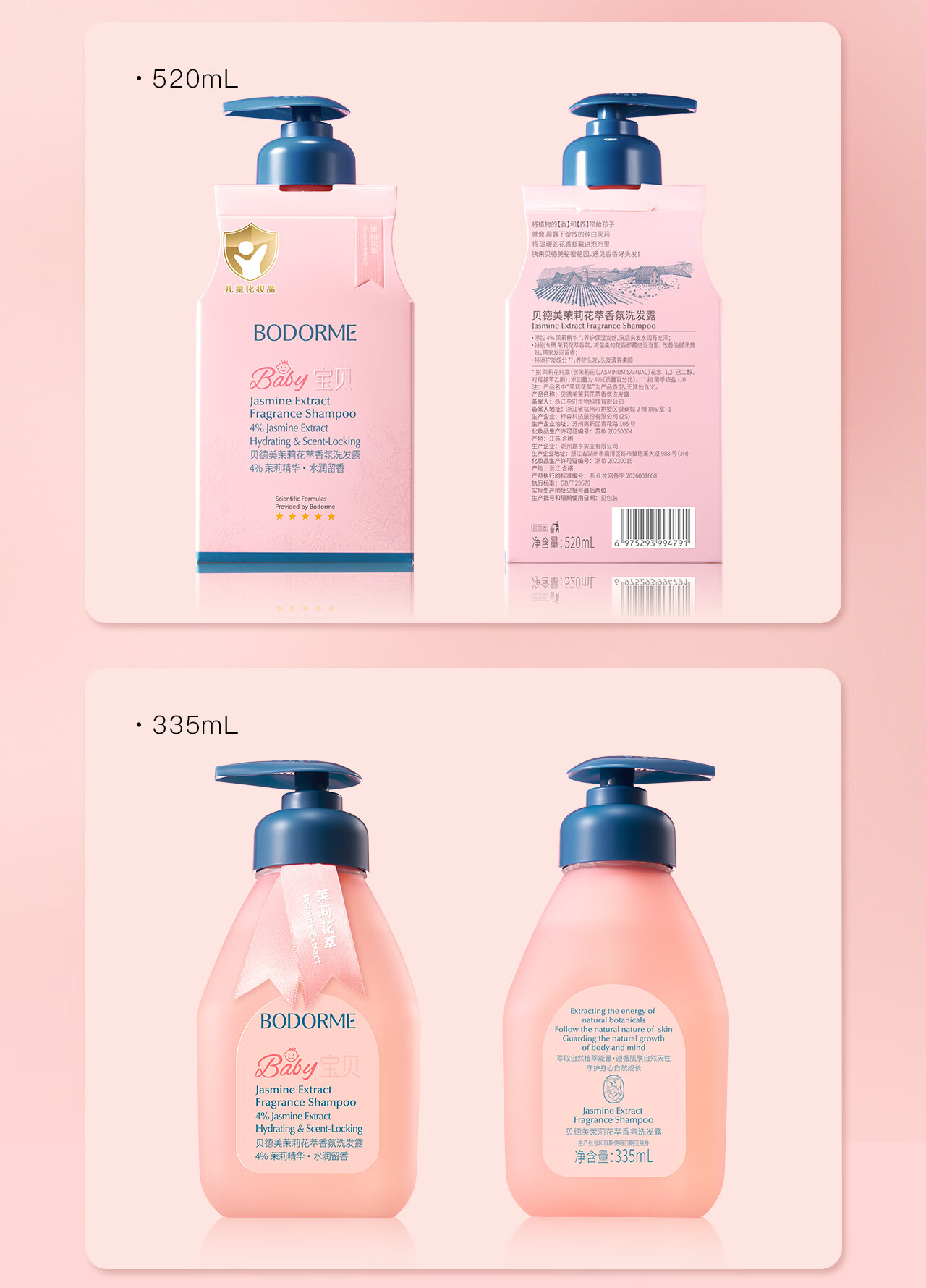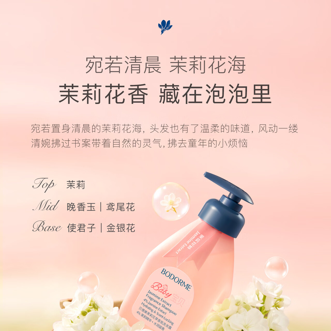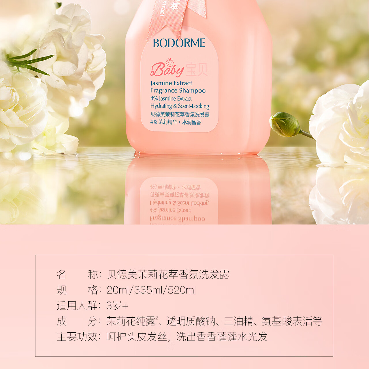 贝德美儿童香氛+柔顺洗发水持久留香氨基酸茉莉花香洗发露弱酸性335ml*2