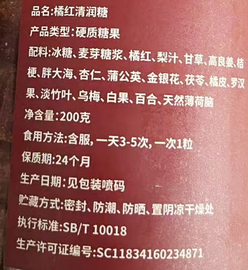 橘品化橘红罗汉果薄荷润清橘梨膏糖200克/罐 3罐装