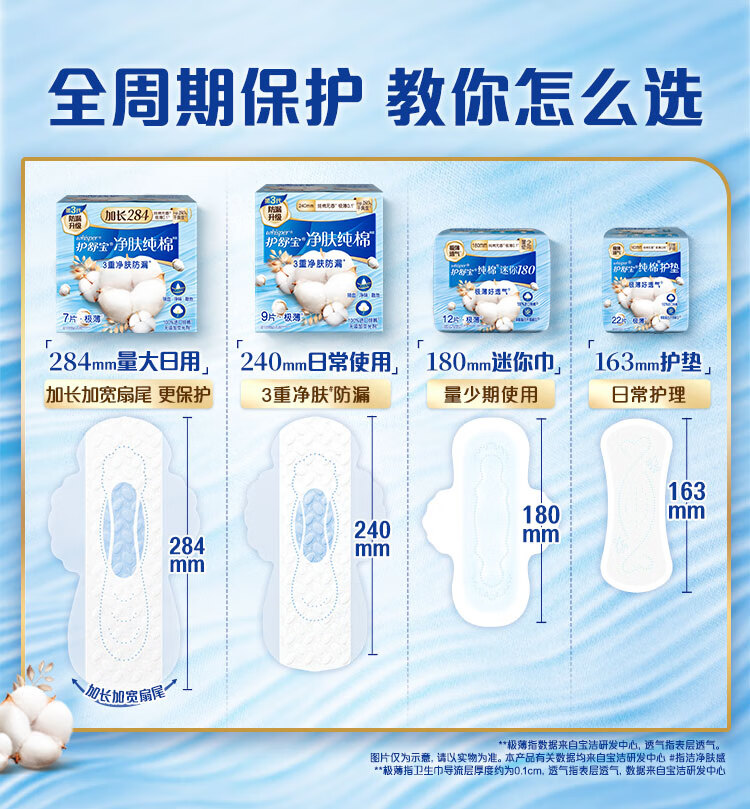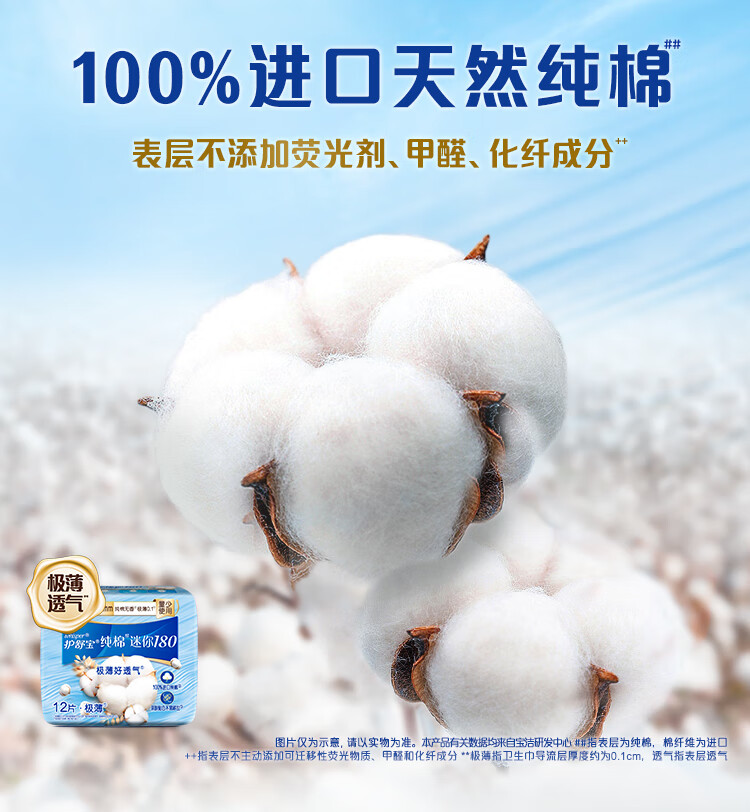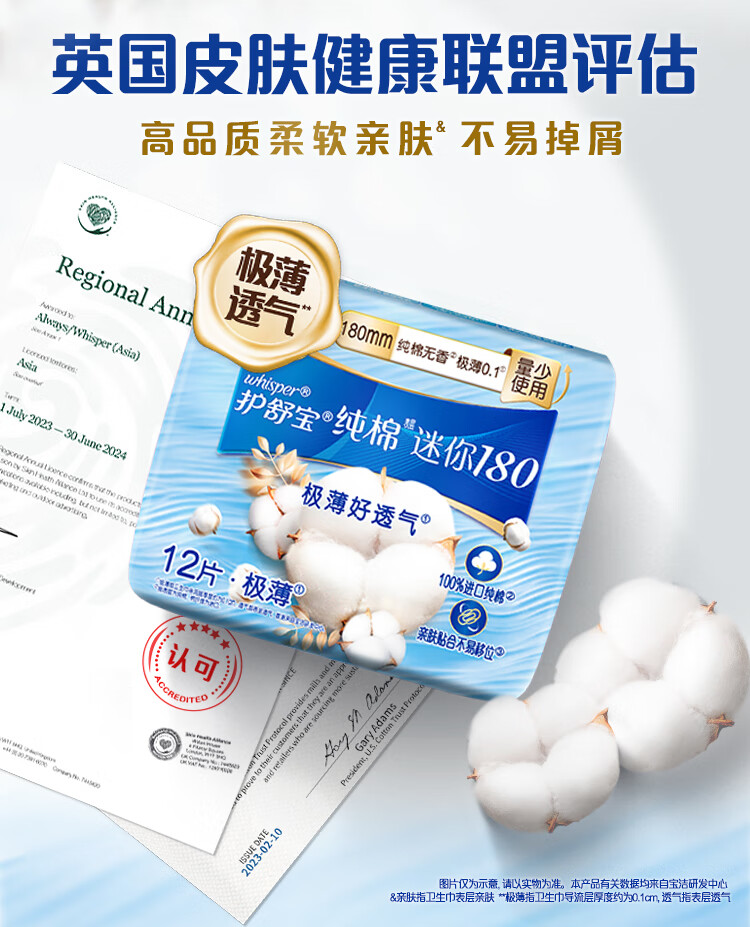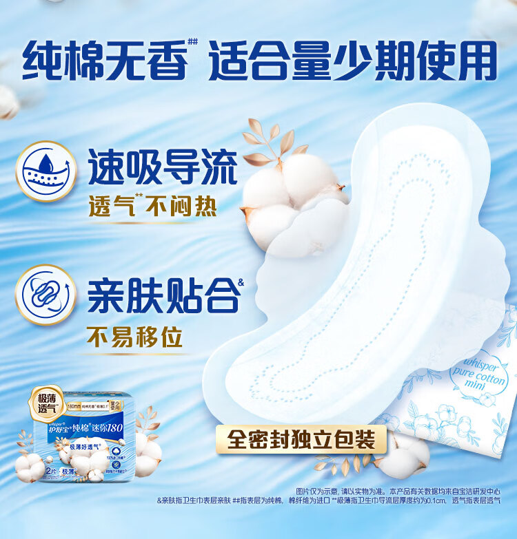 护舒宝天然纯棉迷你卫生巾量少日用180mm12片姨妈巾护垫京东自营