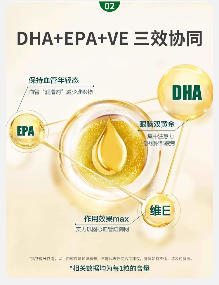 维常健蓝帽子深海鱼油90%EPA+DHA60粒血脂健康omega3中老年成人健身 3盒一月用量