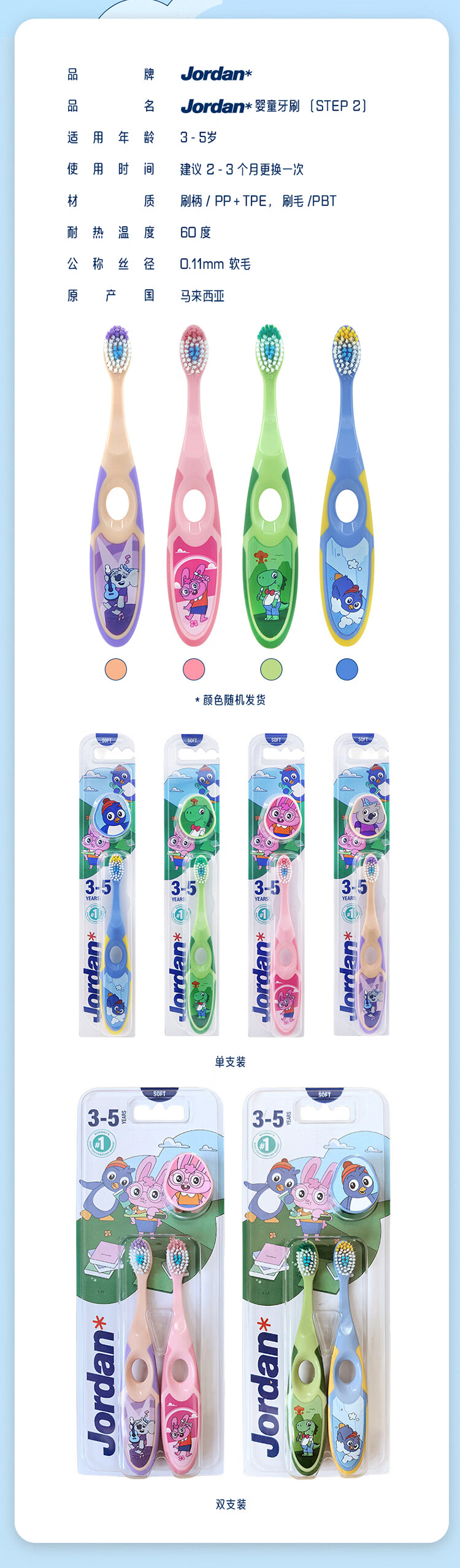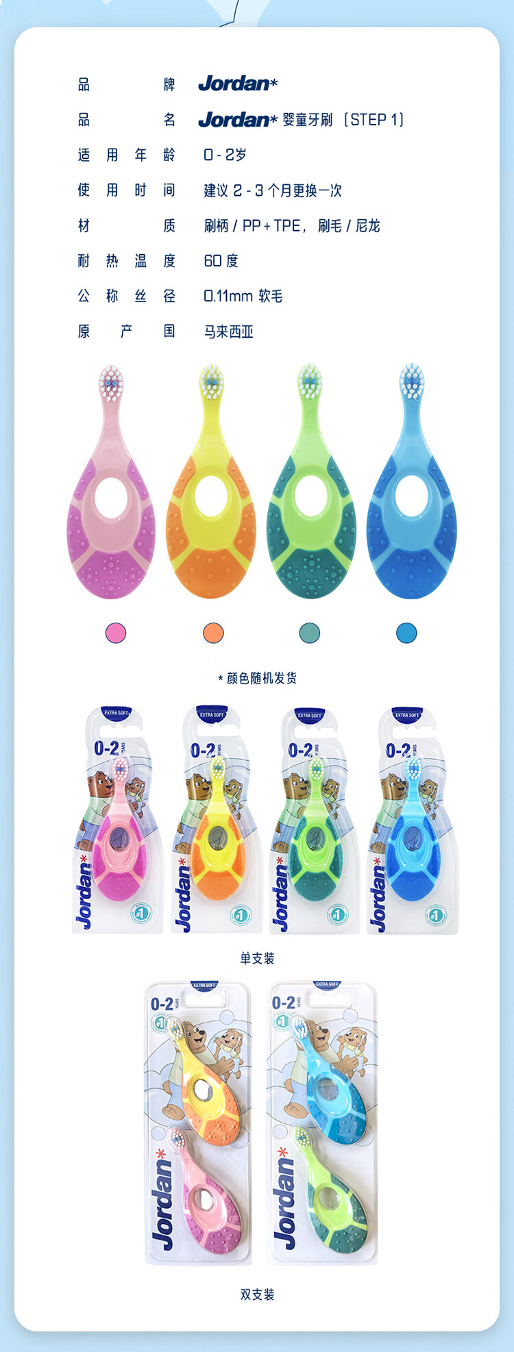 Jordan婴幼儿童宝宝软毛牙刷0-1-2-3-5-9+岁训练护齿乳牙牙刷 0-2岁双支B款
