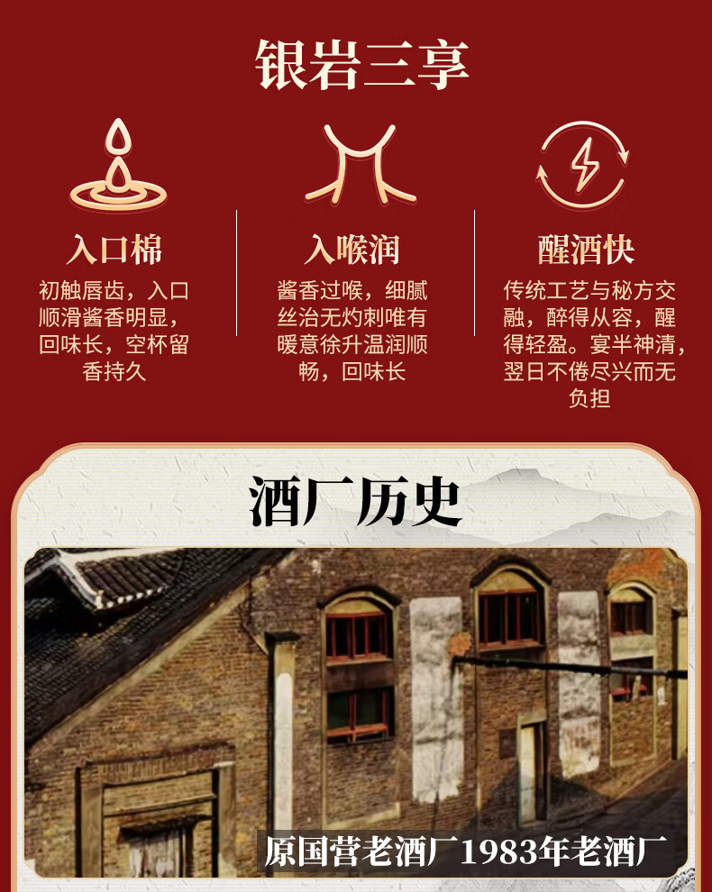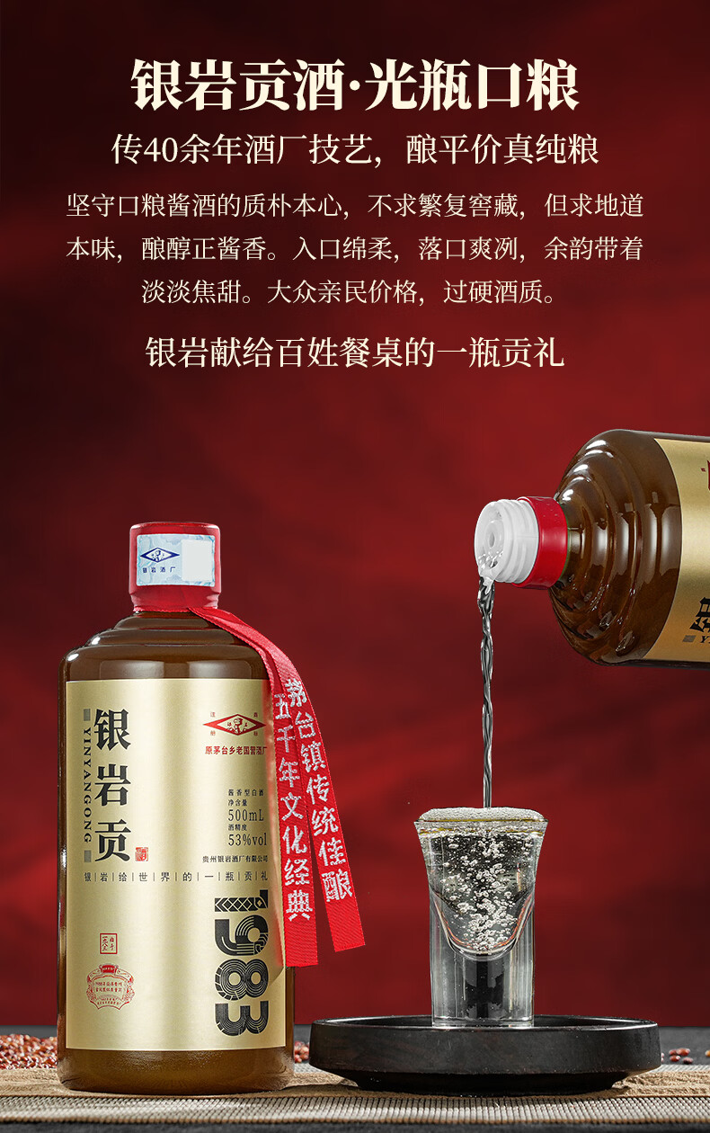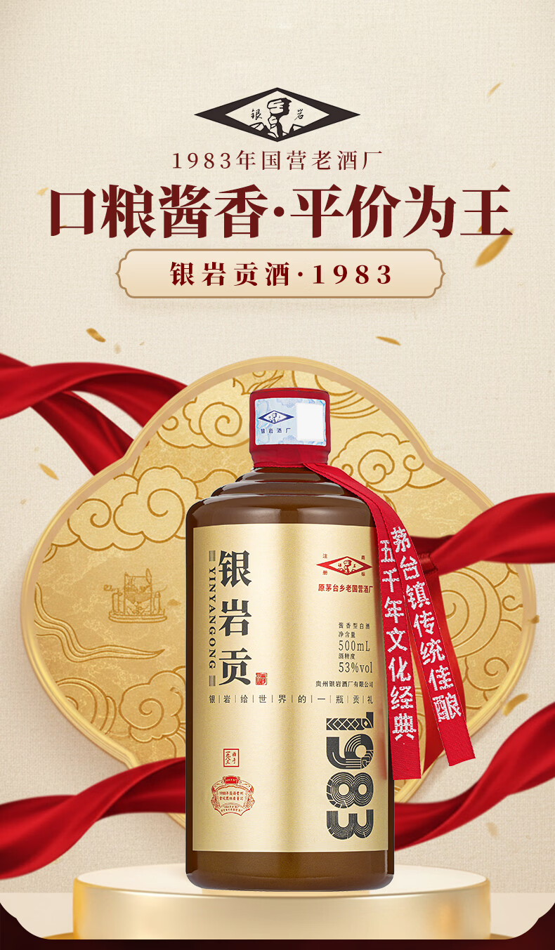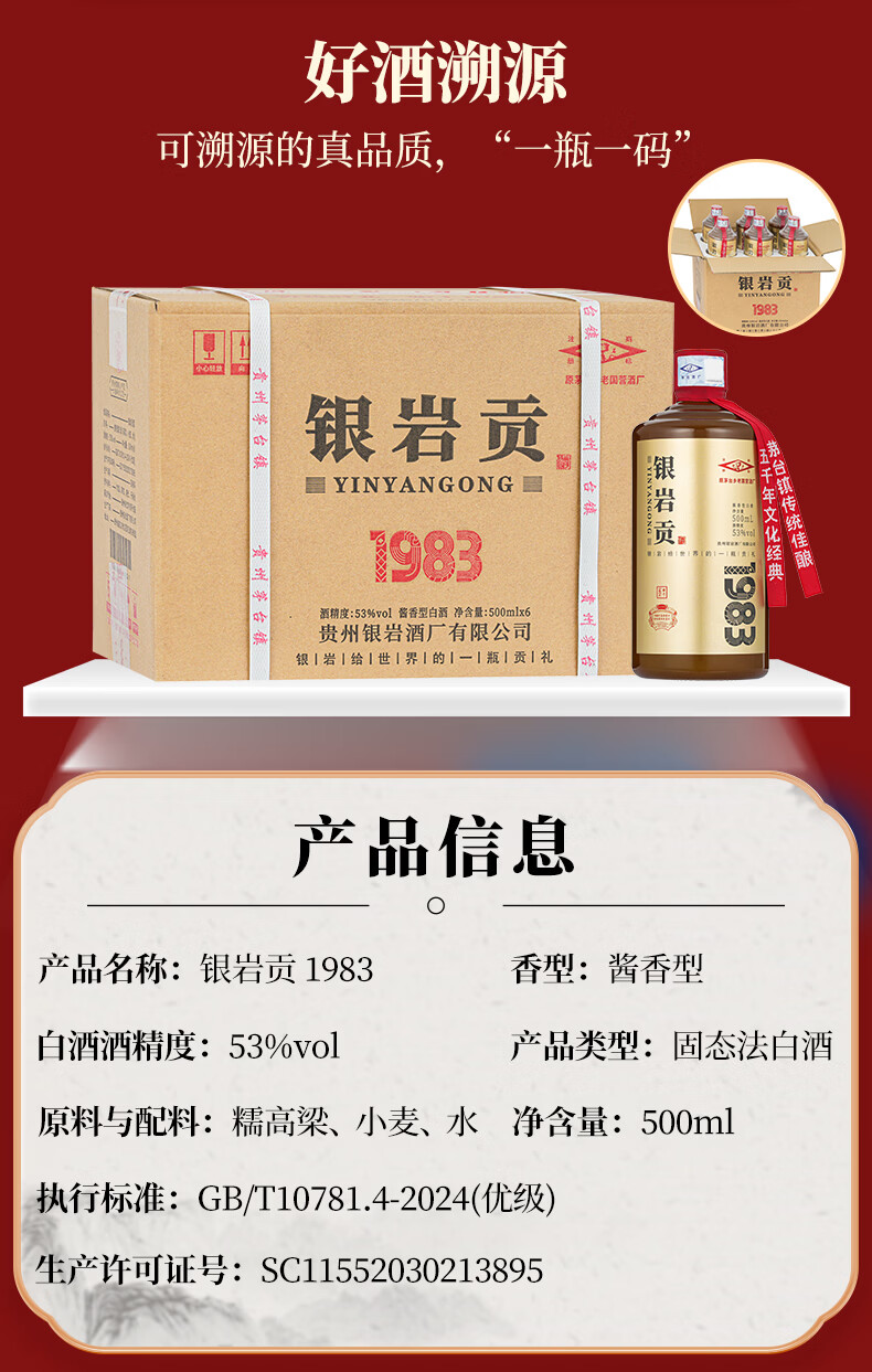 银岩贡酒1983 大曲坤沙工艺 53度纯粮酱香酒 原国营老酱酒厂出品 53度 500mL 6瓶 原箱装