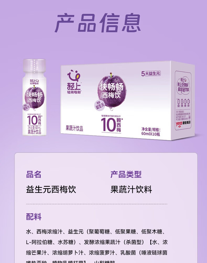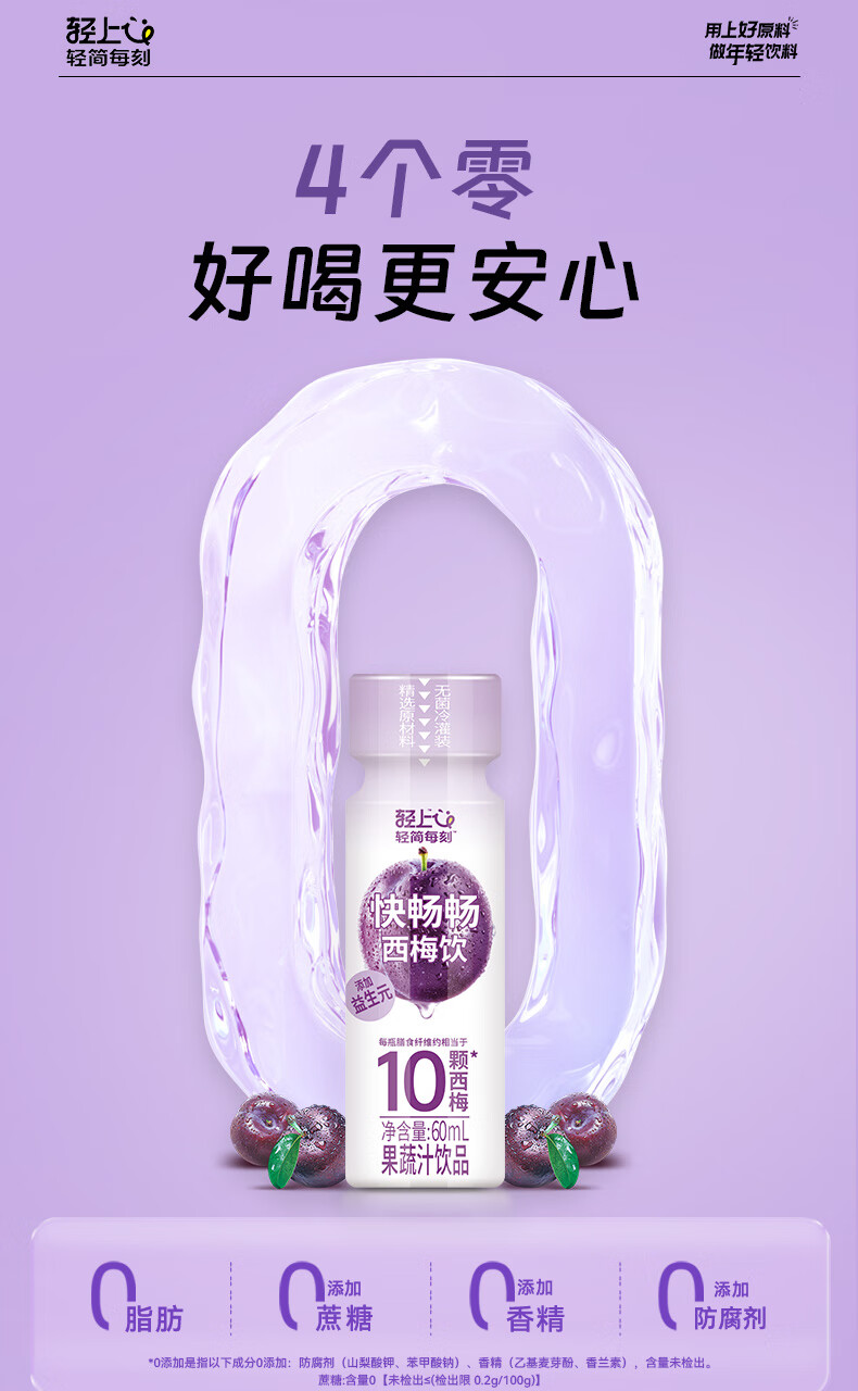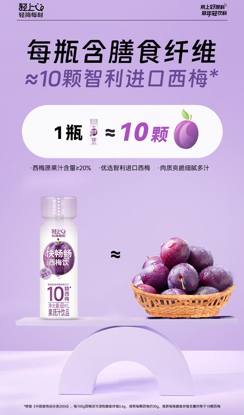 轻上西梅饮5大益生元膳食纤维3种发酵果蔬汁 西梅饮60ml*15瓶