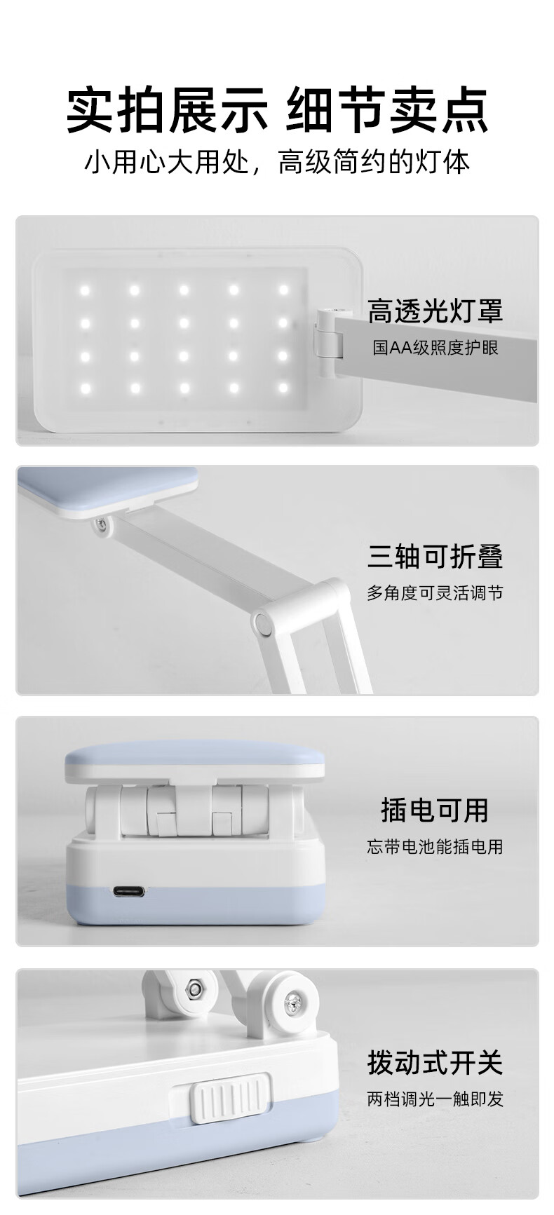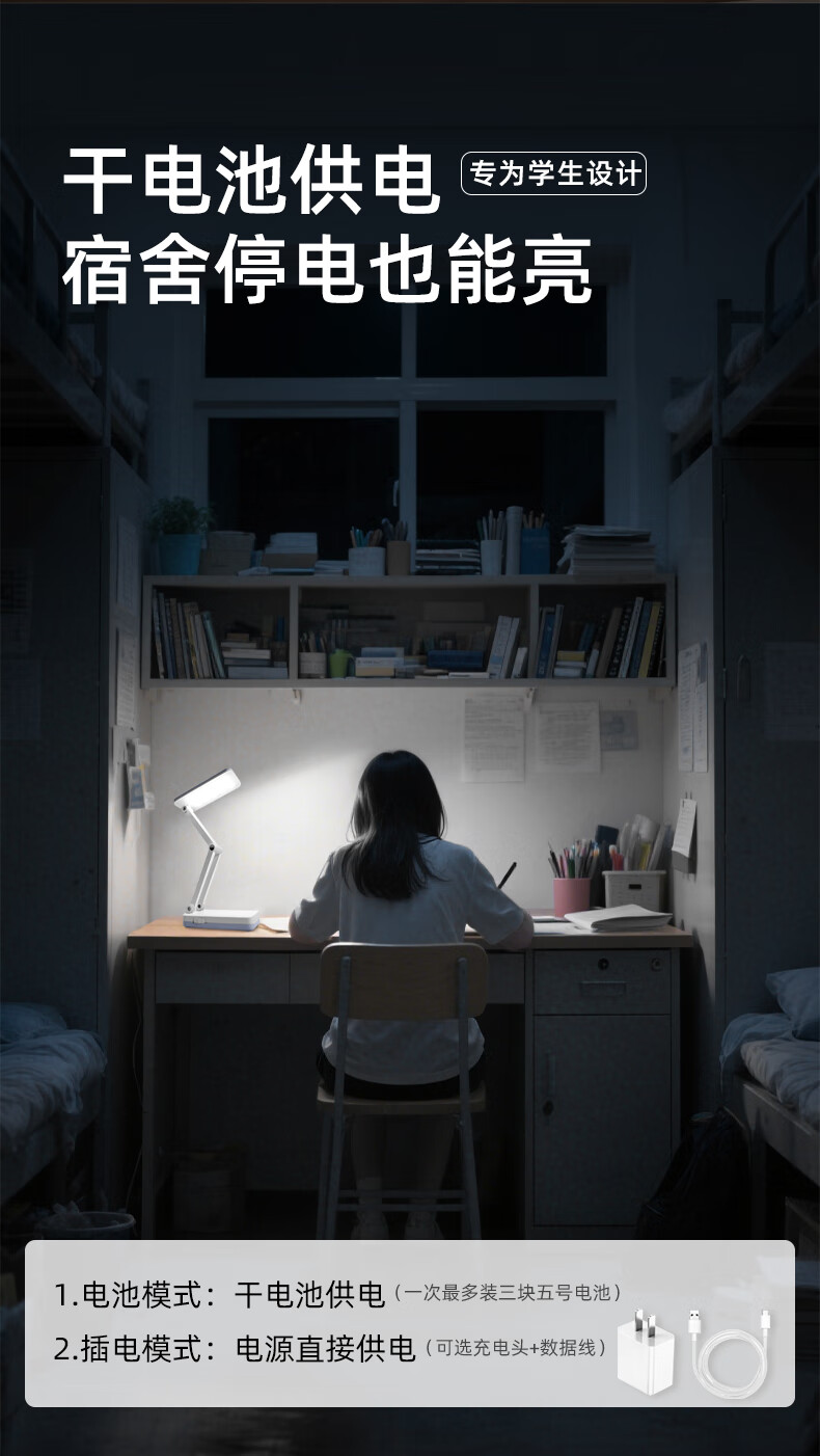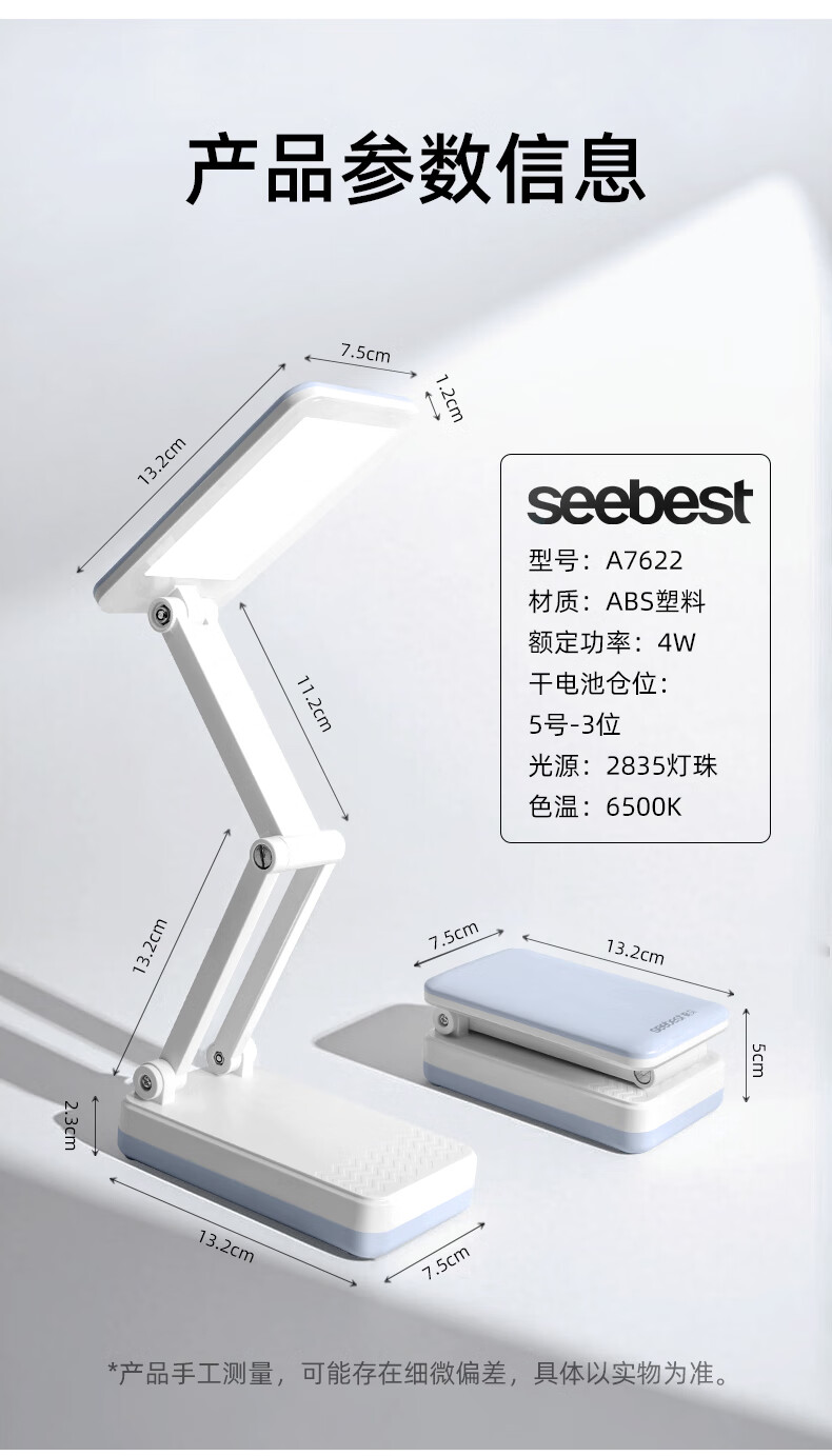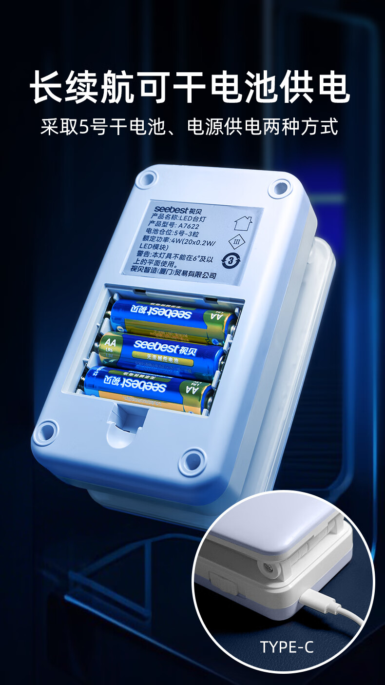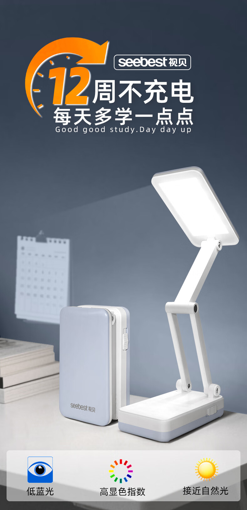 视贝(SEEBEST)折叠台灯学生宿舍床头学习灯长续航住校5号干电池插电两用灯 【可干电池/可插电】自备电池