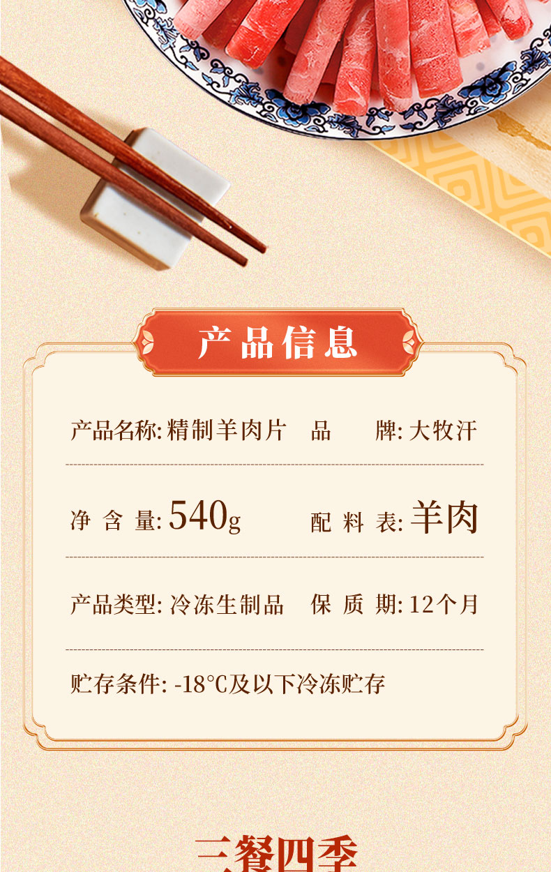 民维大牧汗国产精制原切羊肉片540g 火锅食材烧烤涮肉羊肉卷 羊肉生鲜