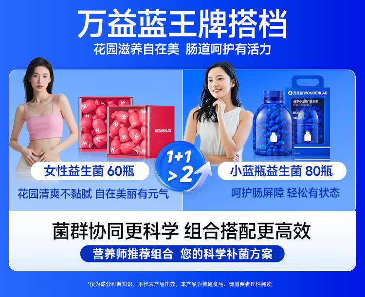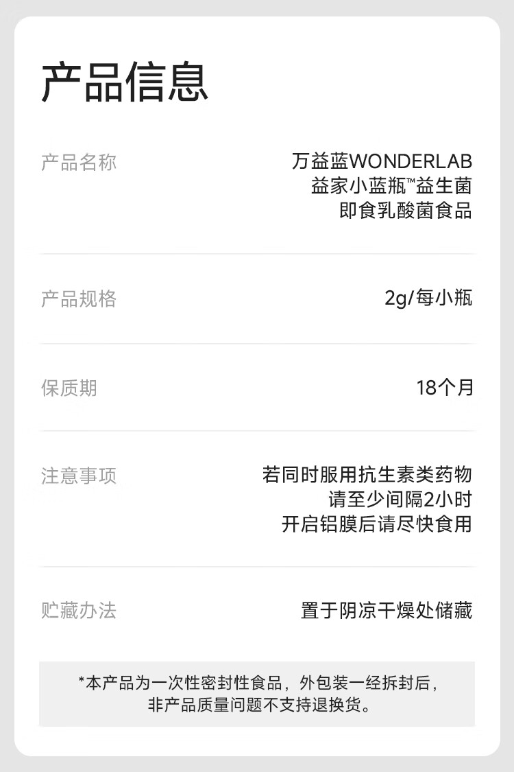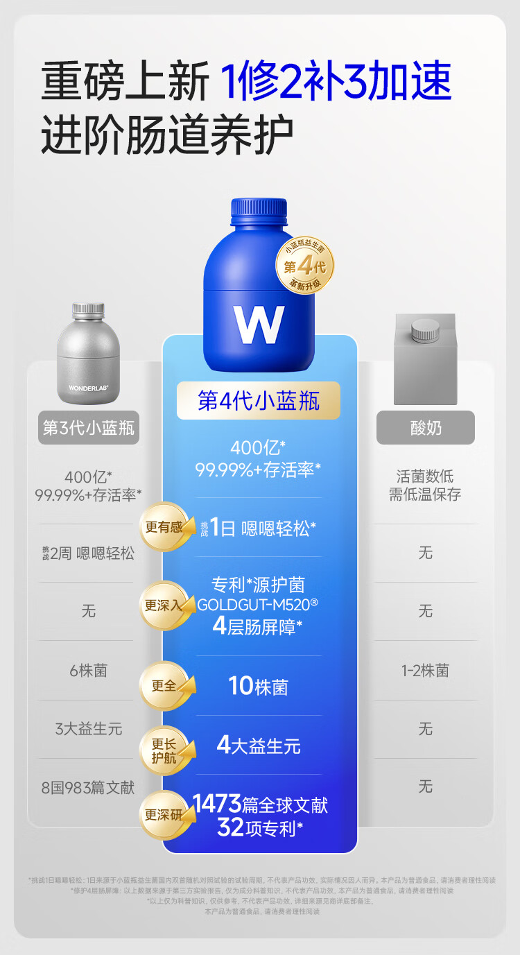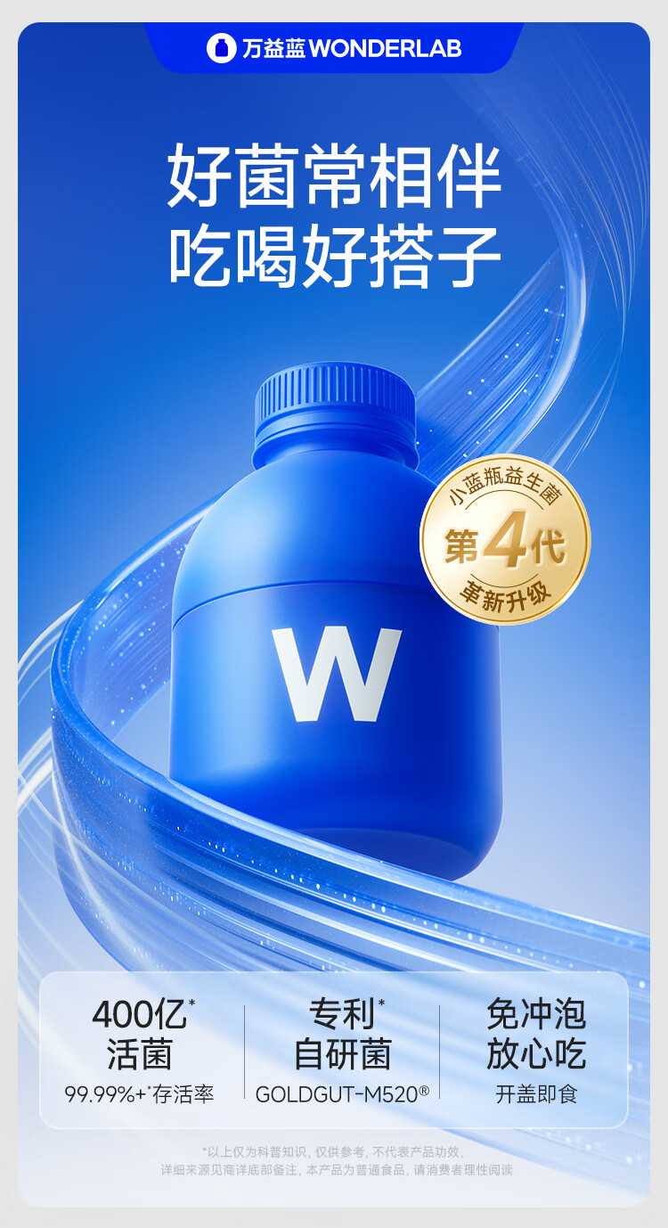 万益蓝WonderLab 小蓝瓶益生菌40瓶升级4.0 肠道肠胃益生菌 成人调理