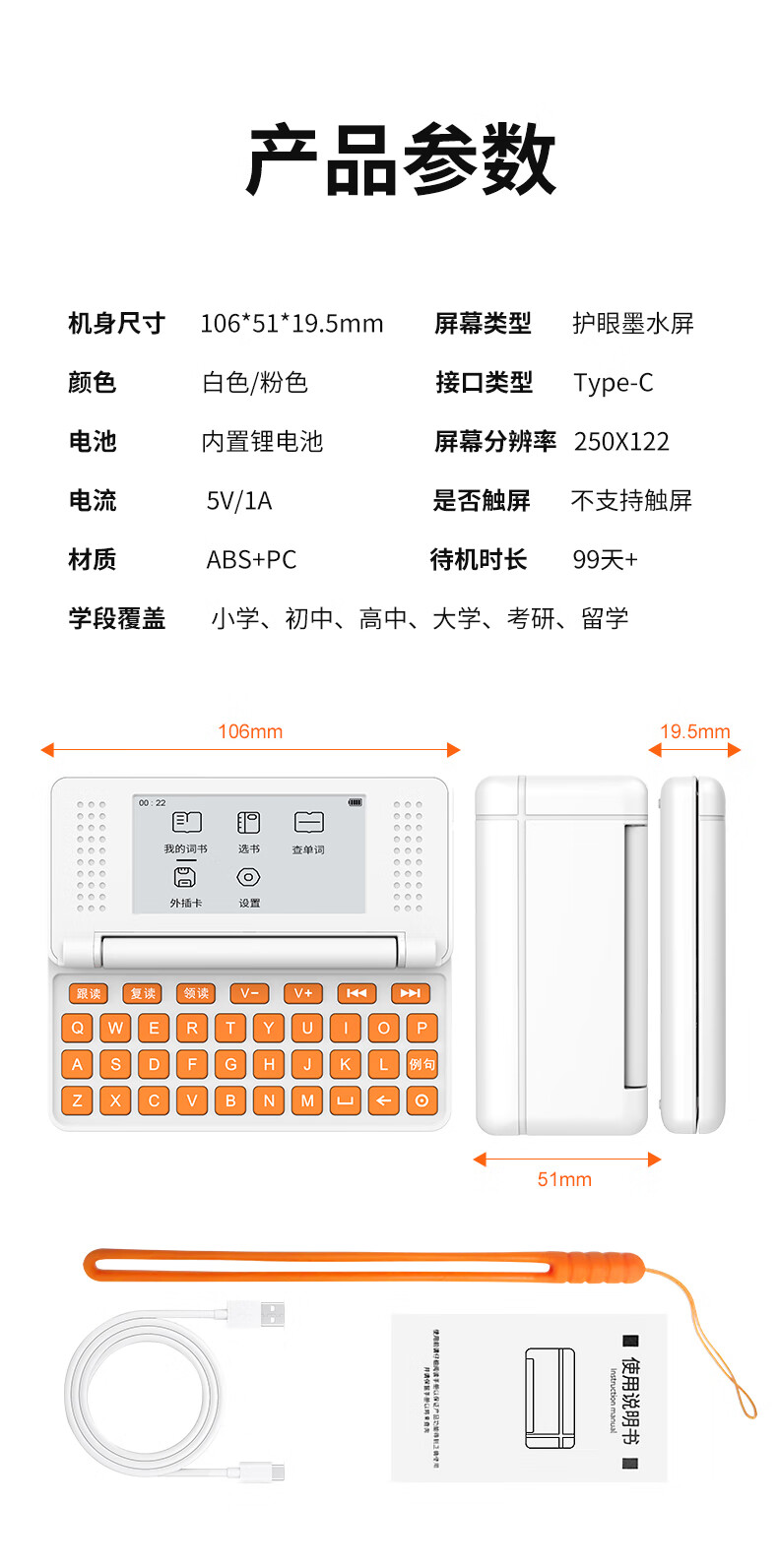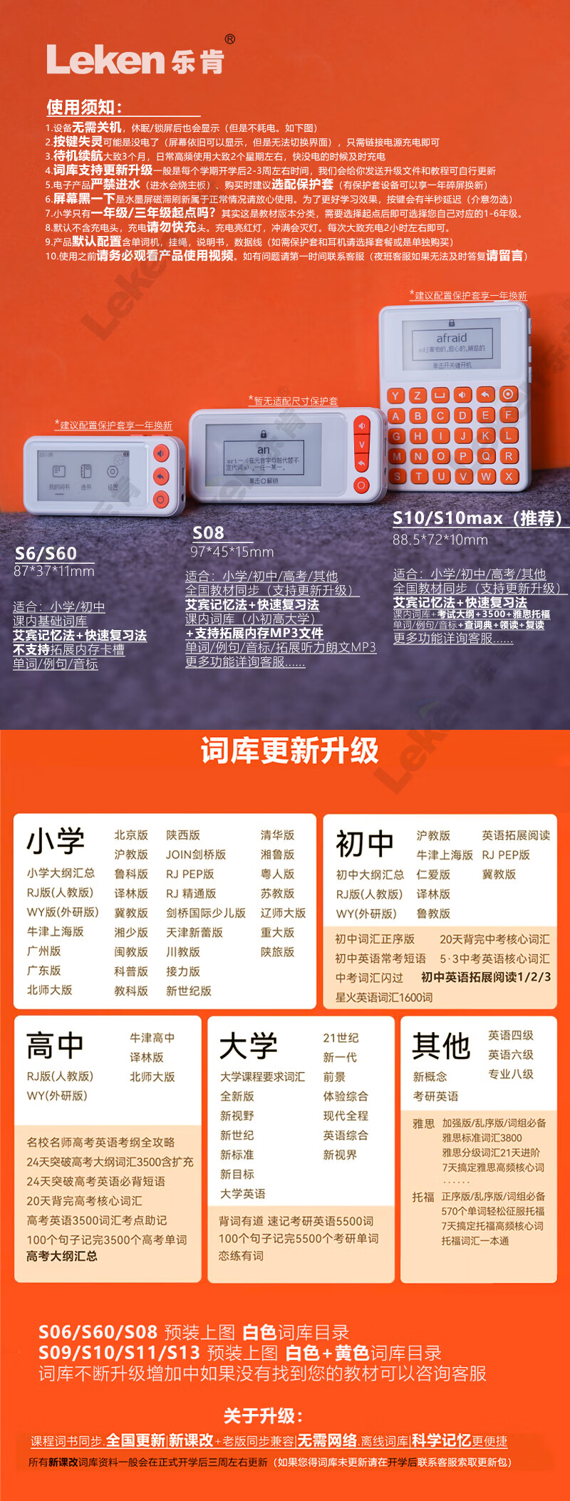 乐肯单词机听力宝单词通水墨屏英语便携单词卡小初高学生英语学习必备 S8【基础款】教材单词跟学+听力+支持拓展