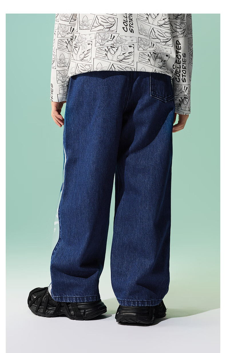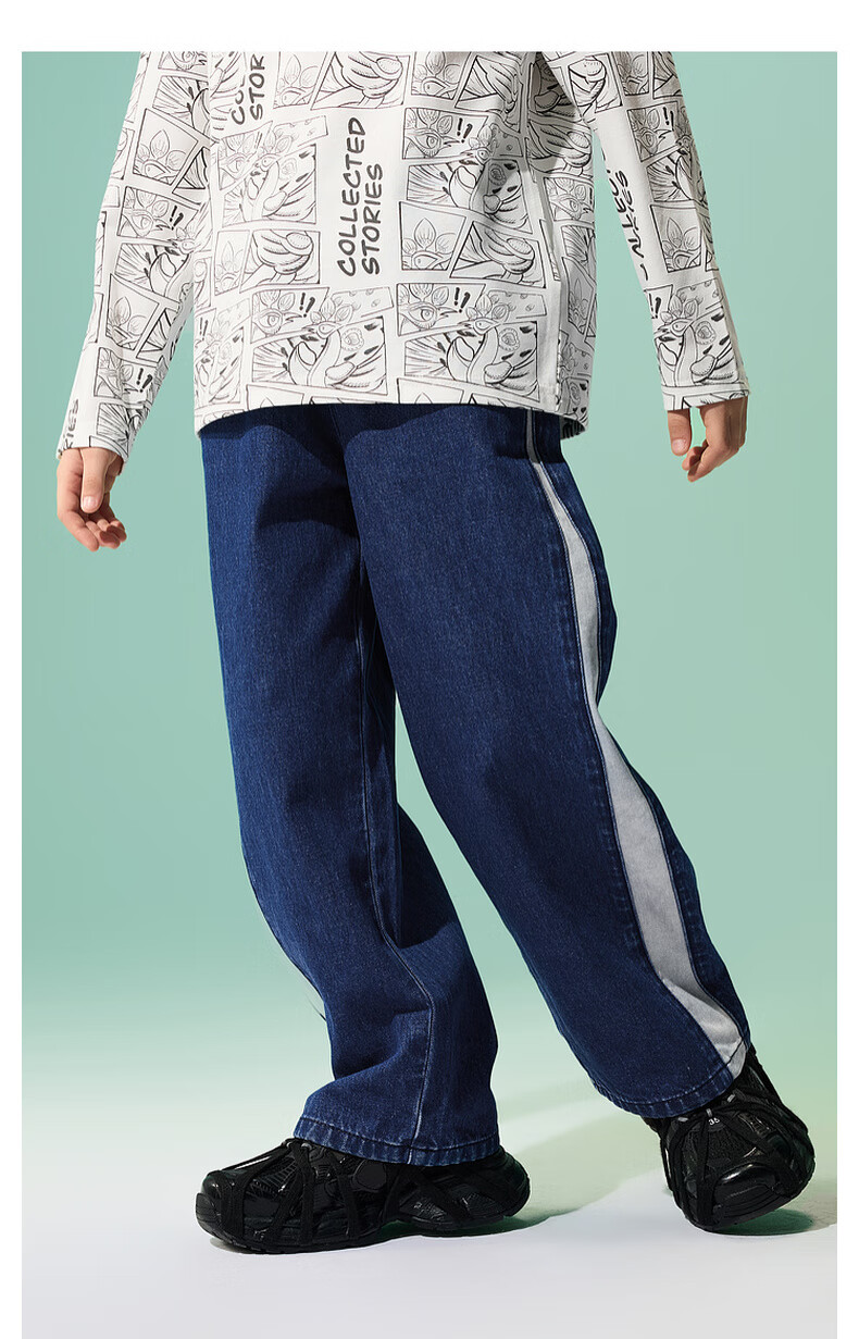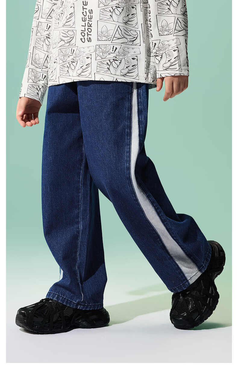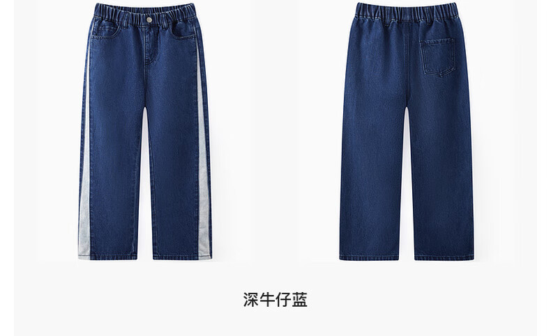 马骑顿(MQD)【国潮系列】男童裤子2025春秋季新款宽松直筒拼色儿童牛仔裤百搭 深牛仔蓝 130