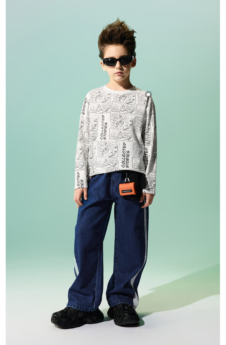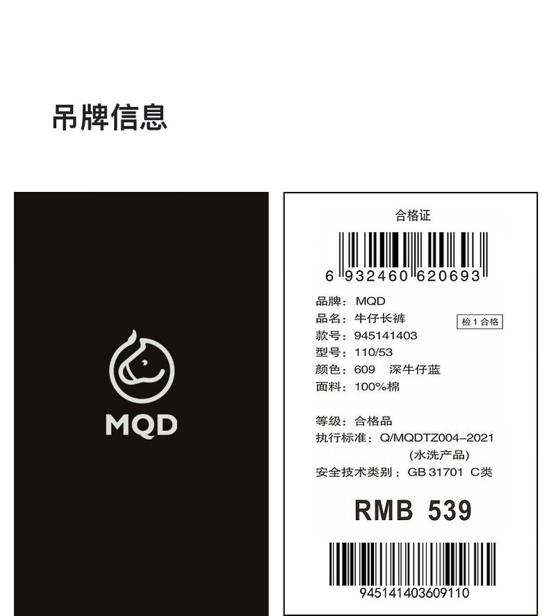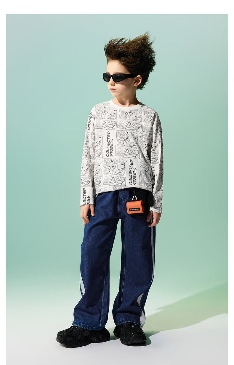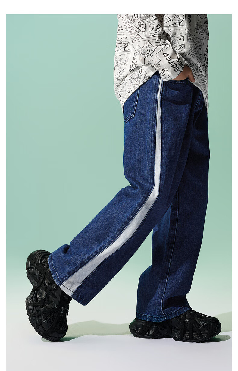 马骑顿(MQD)【国潮系列】男童裤子2025春秋季新款宽松直筒拼色儿童牛仔裤百搭 深牛仔蓝 130