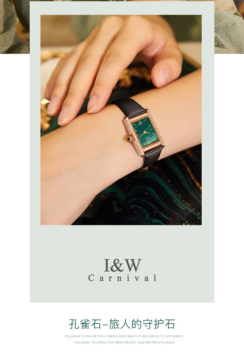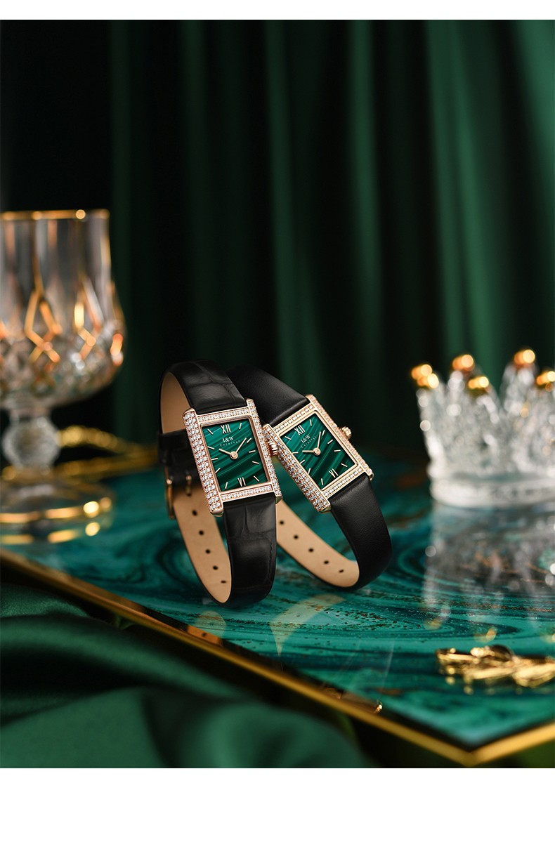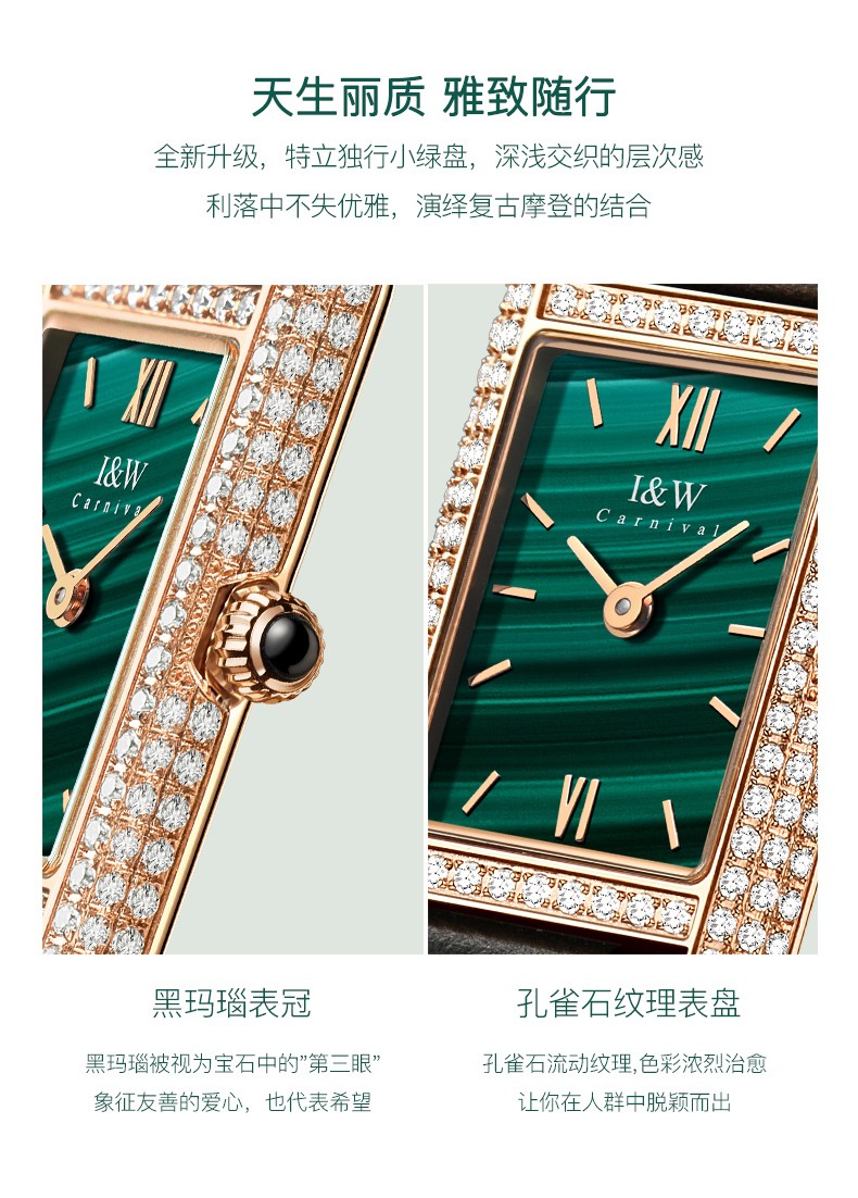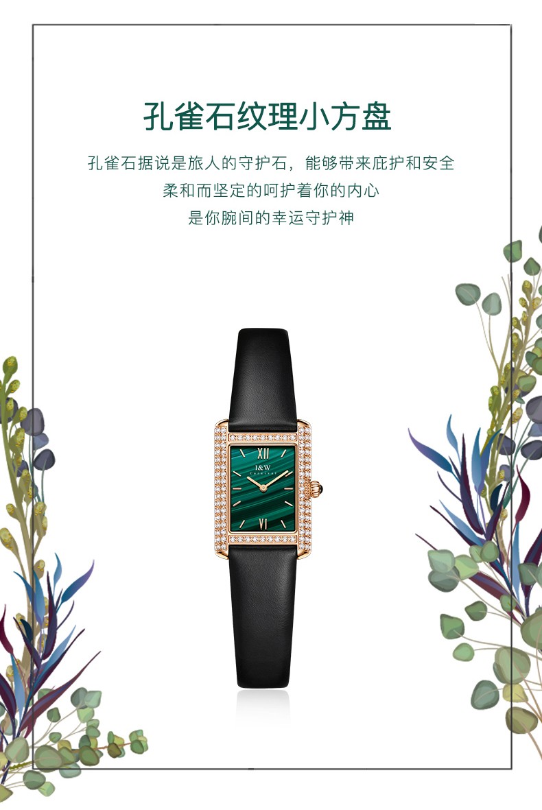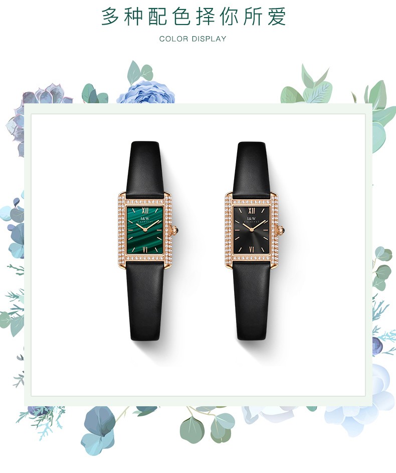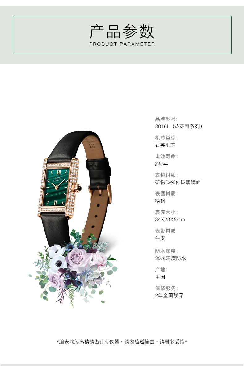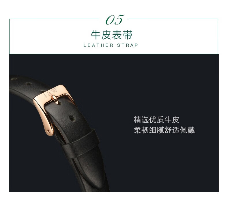 爱沃驰瑞士达芬奇系列经典校园风石英手表女士表七夕生日礼物送女友 玫金壳黑面|黑皮带
