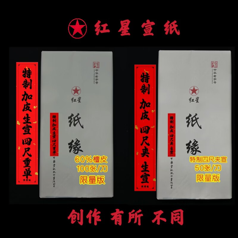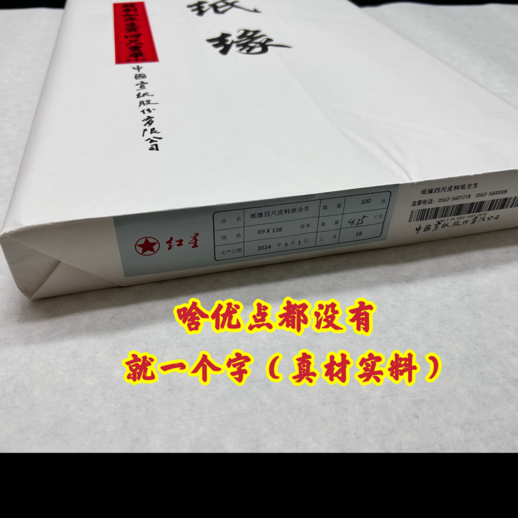红星(RED STAR)红星宣纸纸缘四尺特制加皮重单夹宣国画书法创作生宣纸檀皮宣 特制四尺夹宣50张