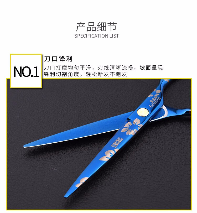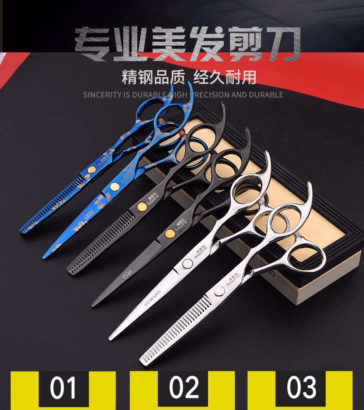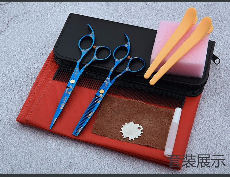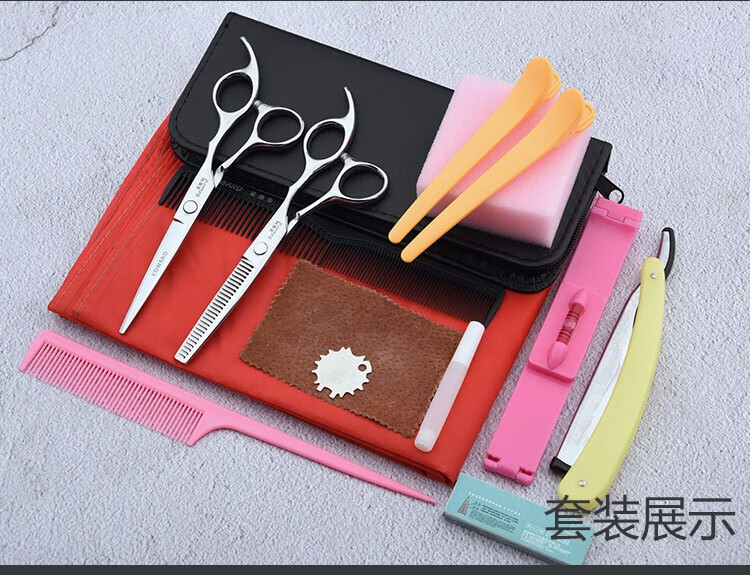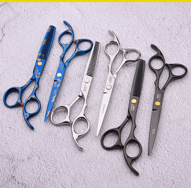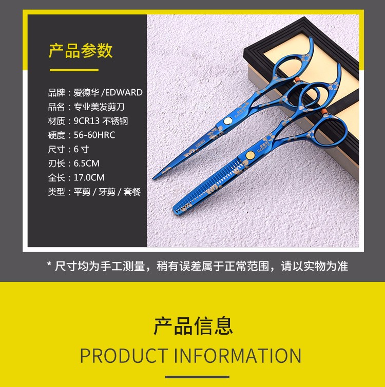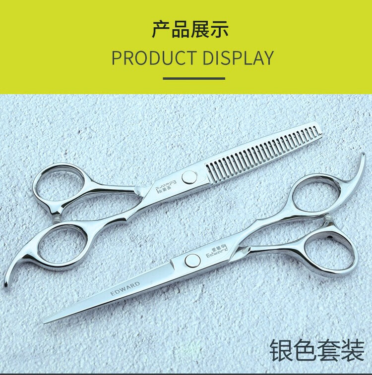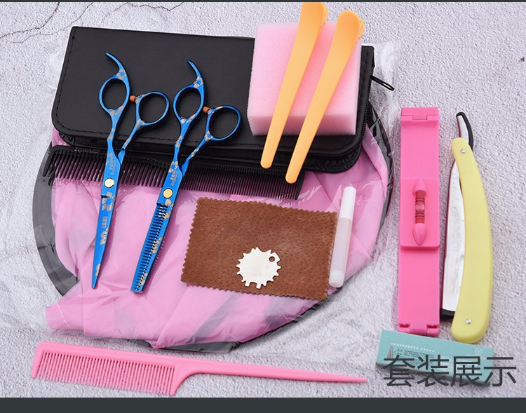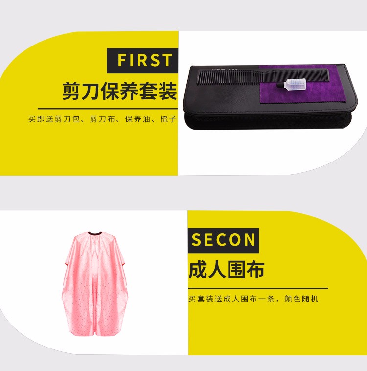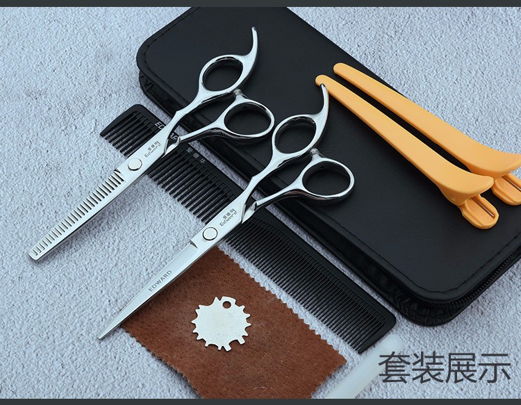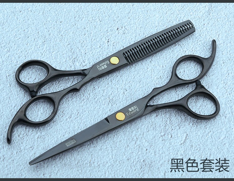 爱德华(EDWARD) 发廊专用打薄剪美发剪理发剪刀平剪牙剪剪头发家用套装多个尺寸 黑色 六寸配围兜刮刀尖尾梳十四件套