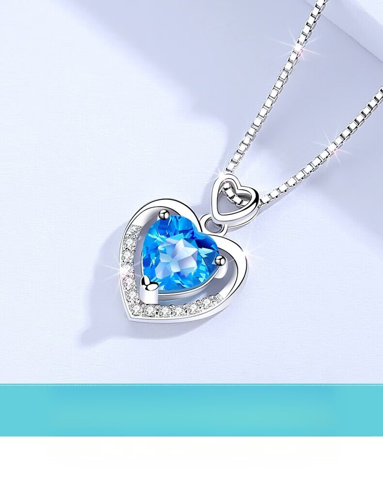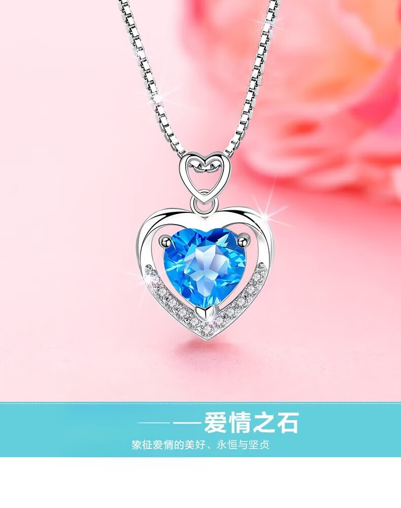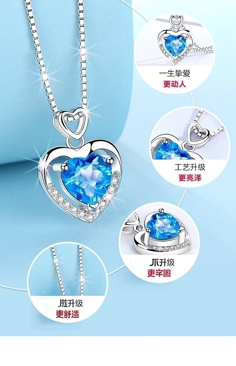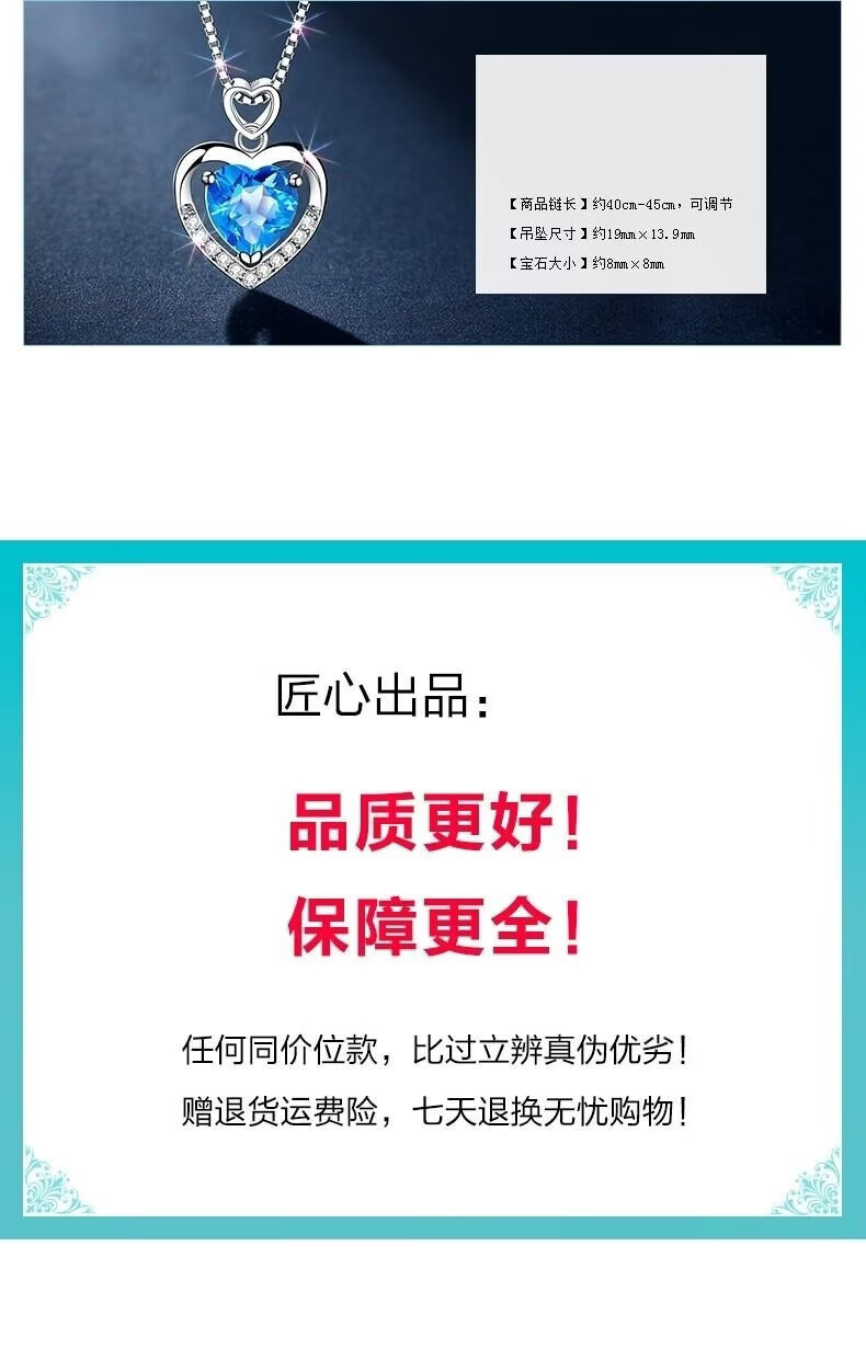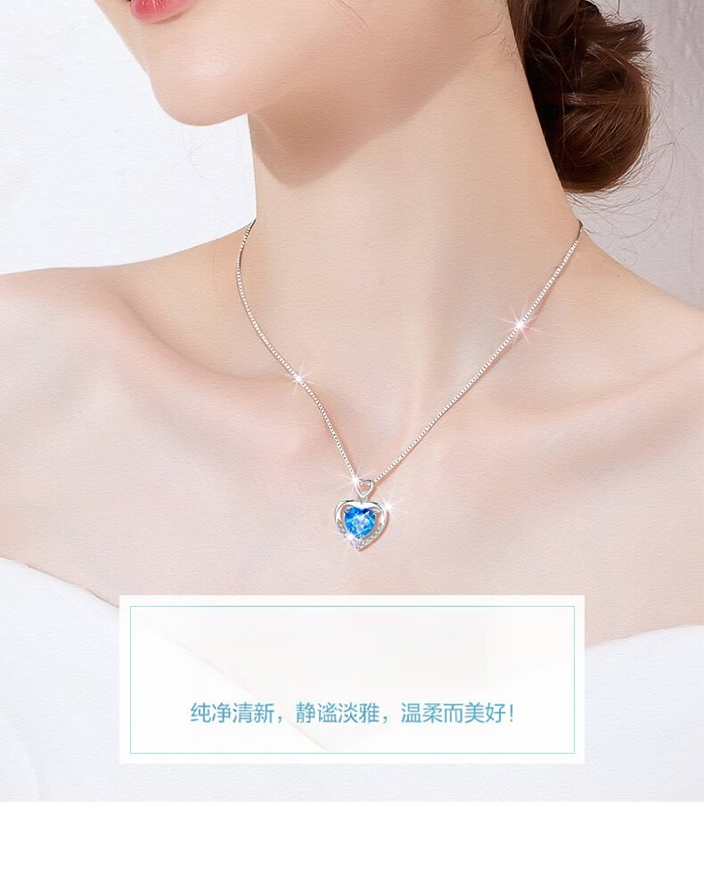 洛希曼海洋之心项链女款镶钻时尚饰品生日礼物送女友老婆【免费刻字】 豪华礼盒+本地仓+永恒之心项链