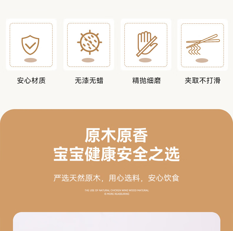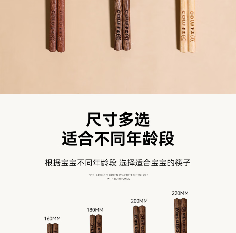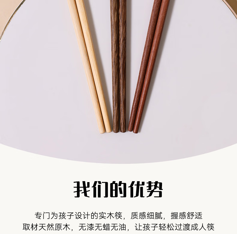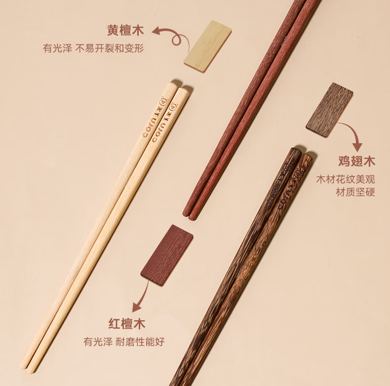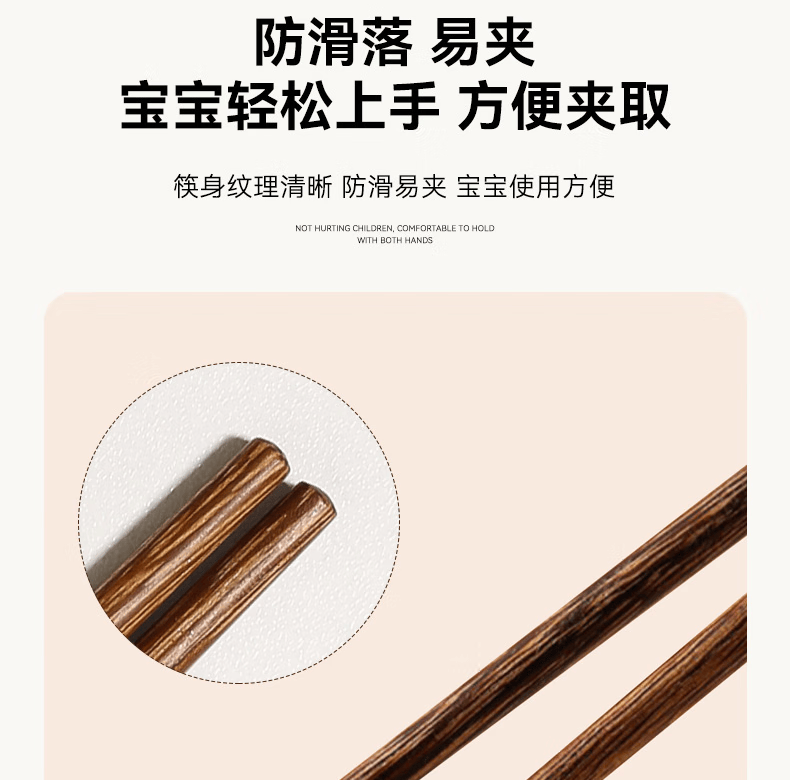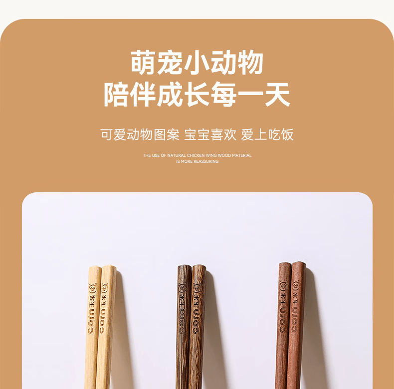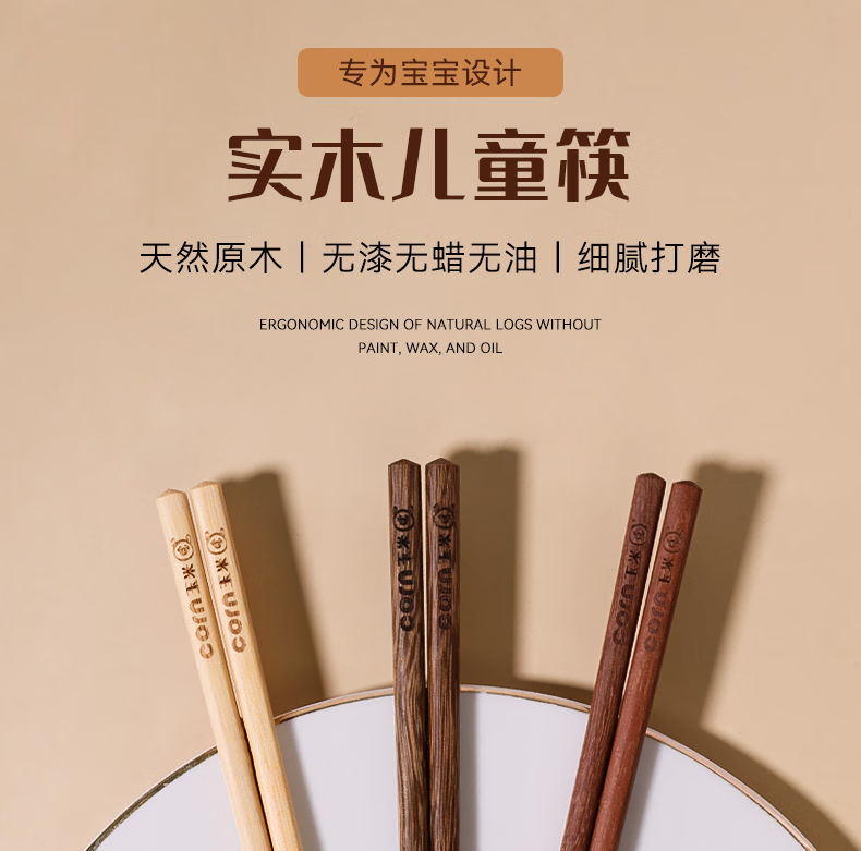 玉米(CORN)儿童筷子 家用实木无漆无蜡小孩短筷子幼儿园专用宝宝学习筷