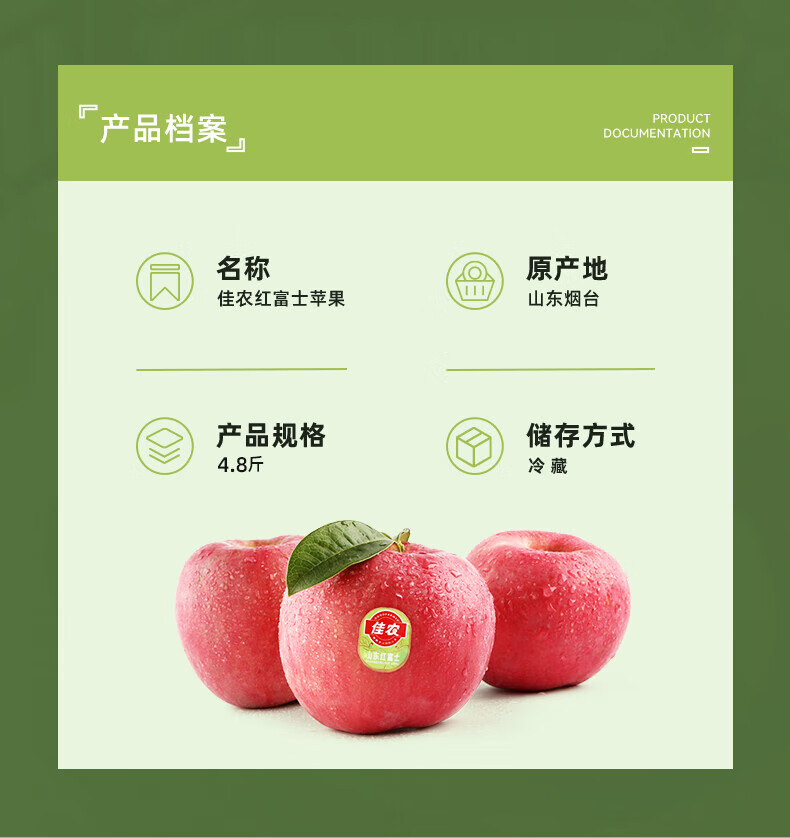 佳农 烟台红富士苹果 净重4.8斤 单果重约200g+ 生鲜水果