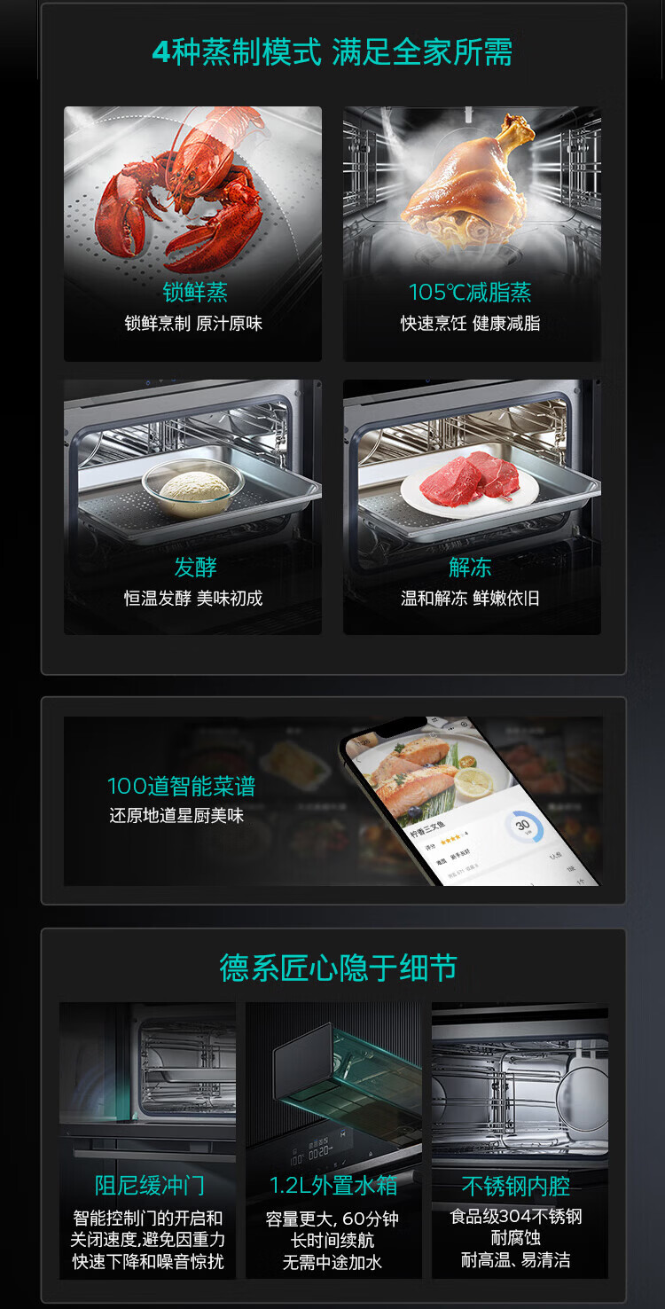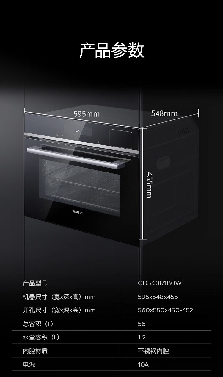 西门子(SIEMENS)【新品IQ500智魔方】家用嵌入式电蒸箱56L大容量 4种蒸制模式 CD5K0R1B0W