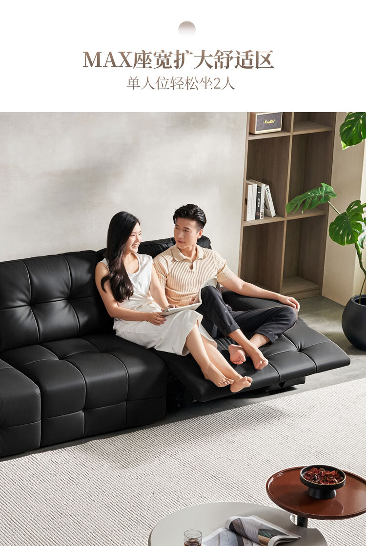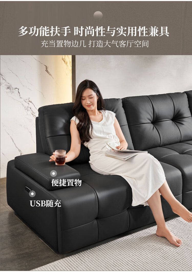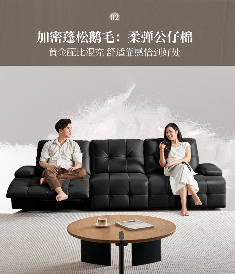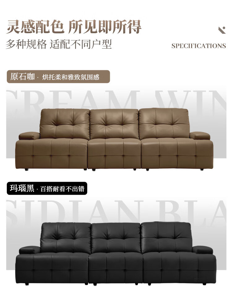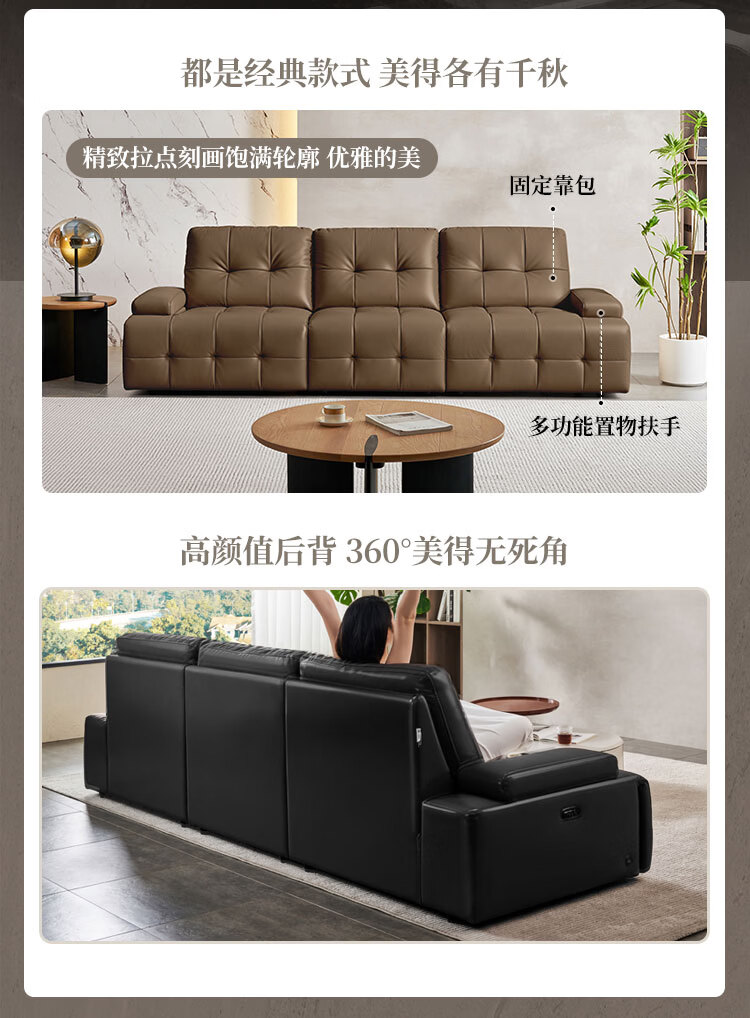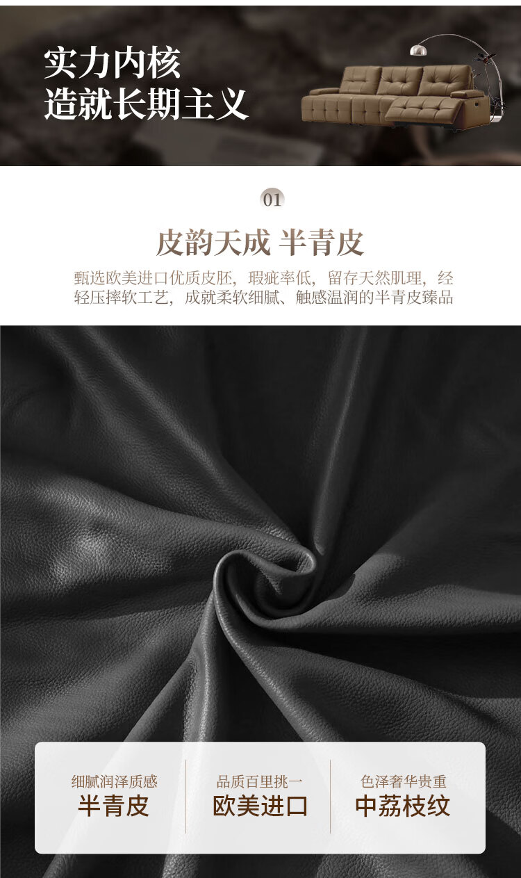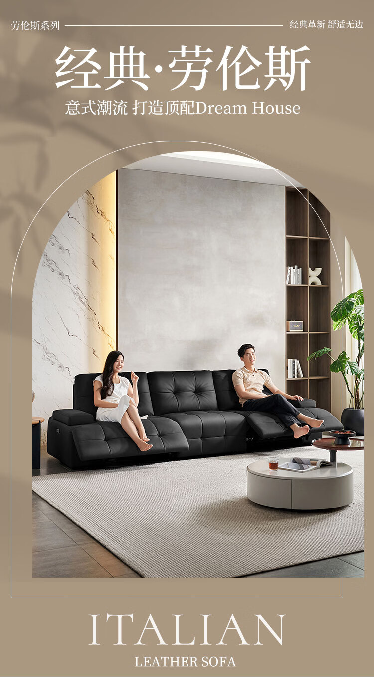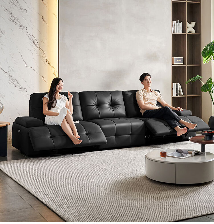 左右真皮直排沙发中小型现代简约轻奢半青皮家具牛皮劳伦斯沙发6088 [2]2.73米三人位双电动 玛瑙黑