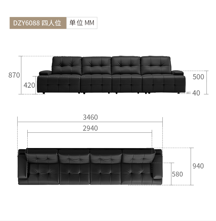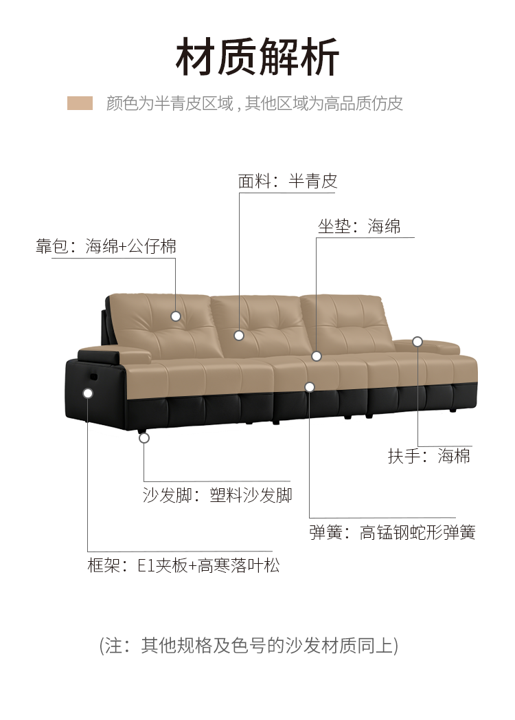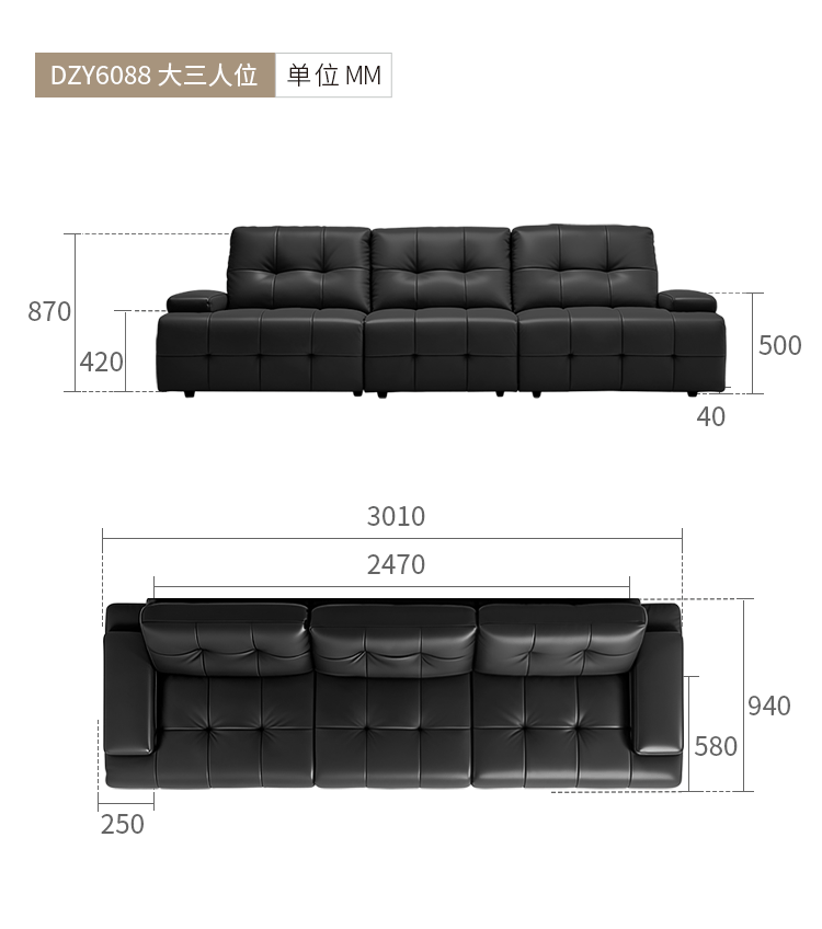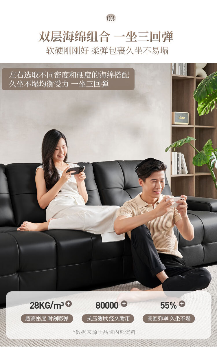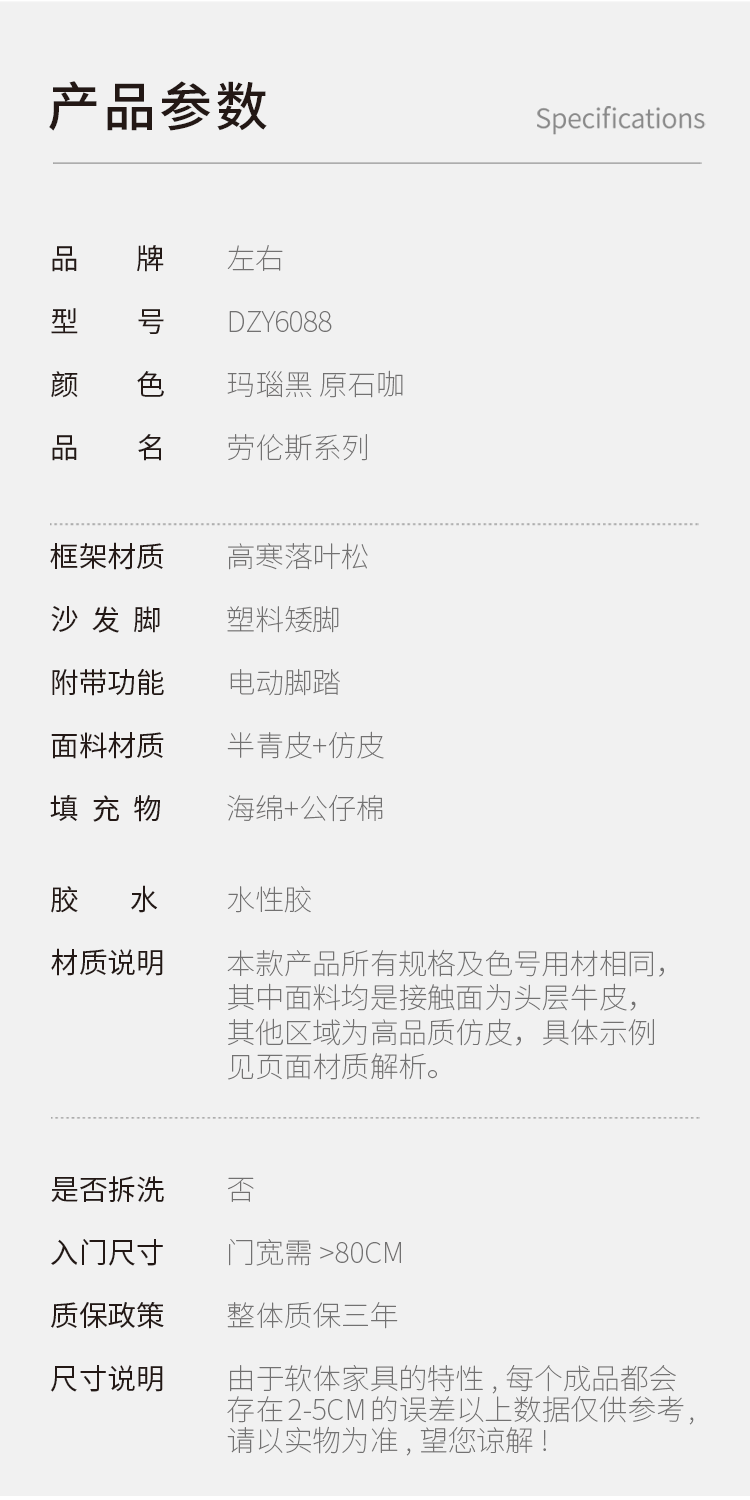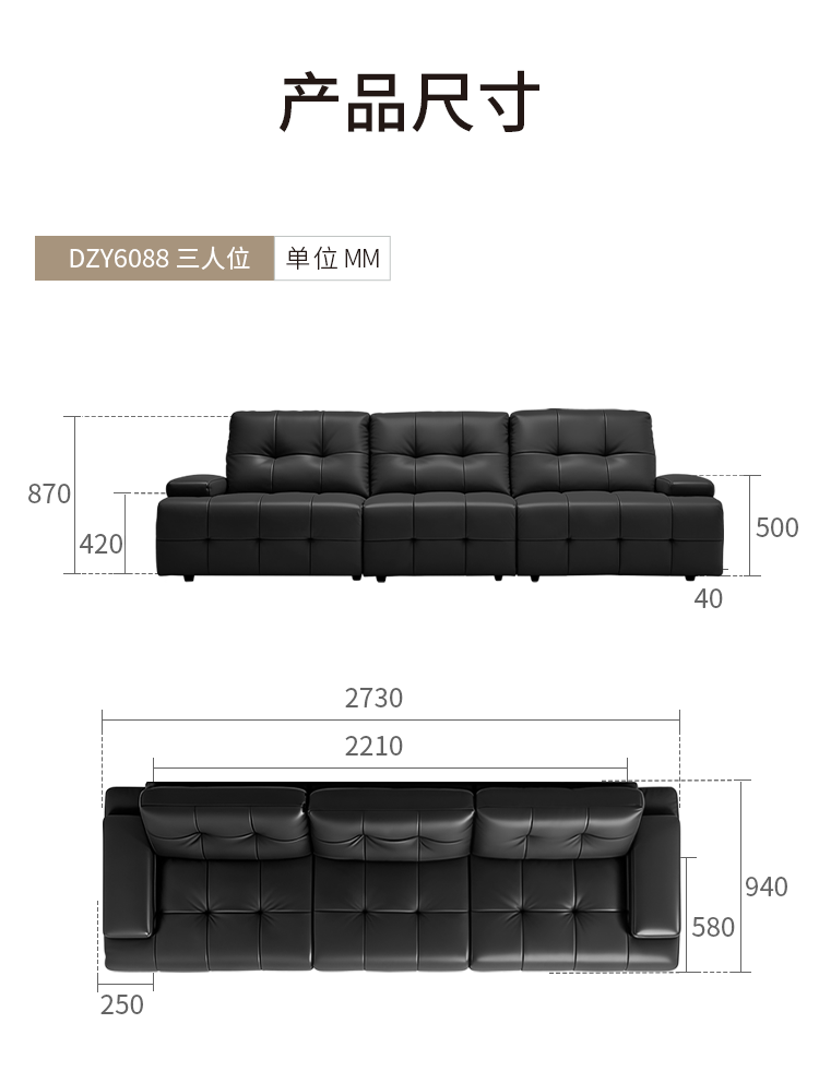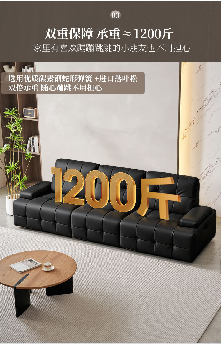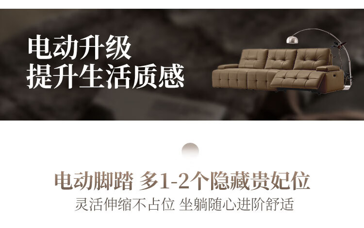 左右真皮直排沙发中小型现代简约轻奢半青皮家具牛皮劳伦斯沙发6088 [2]2.73米三人位双电动 玛瑙黑