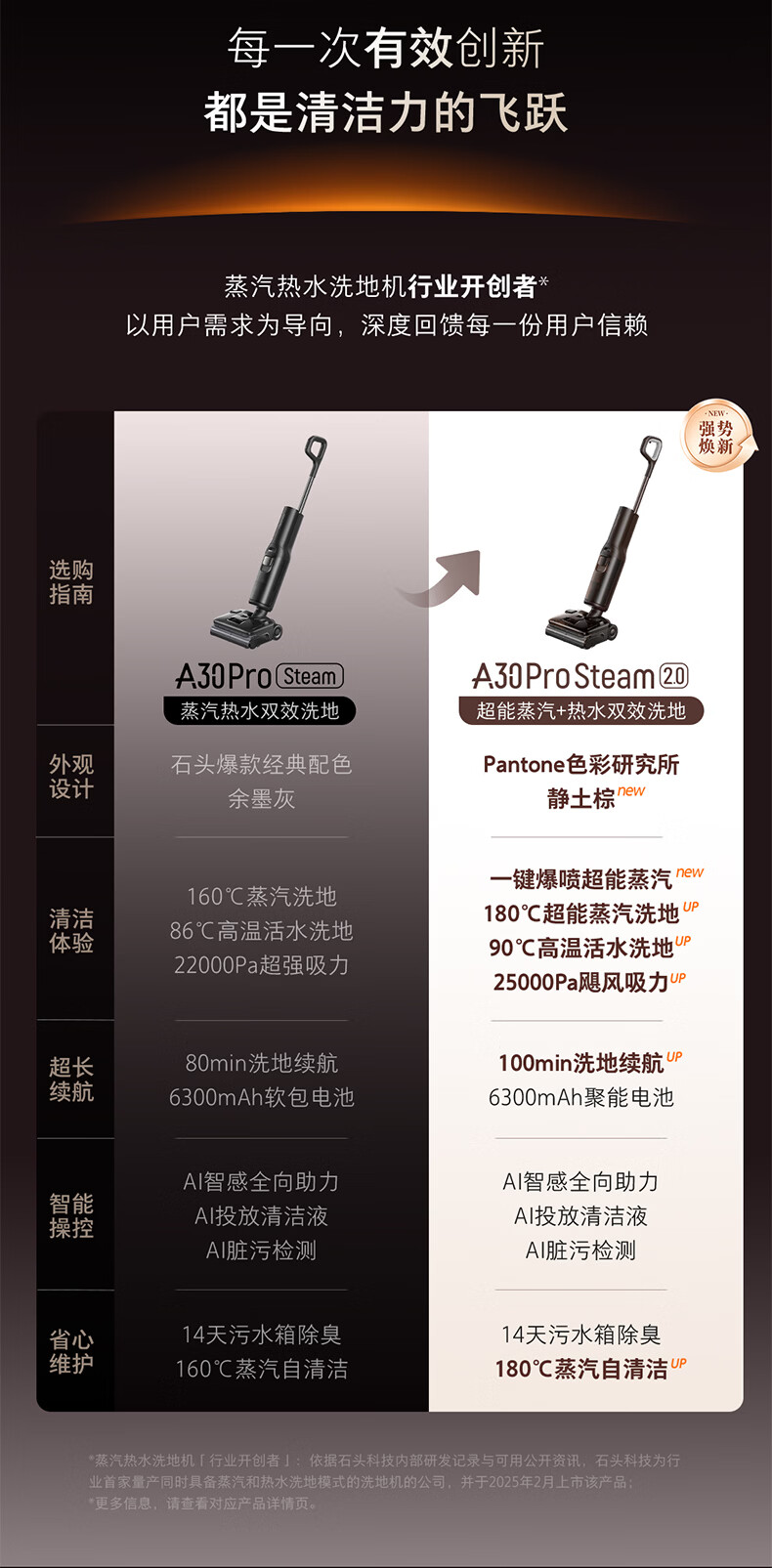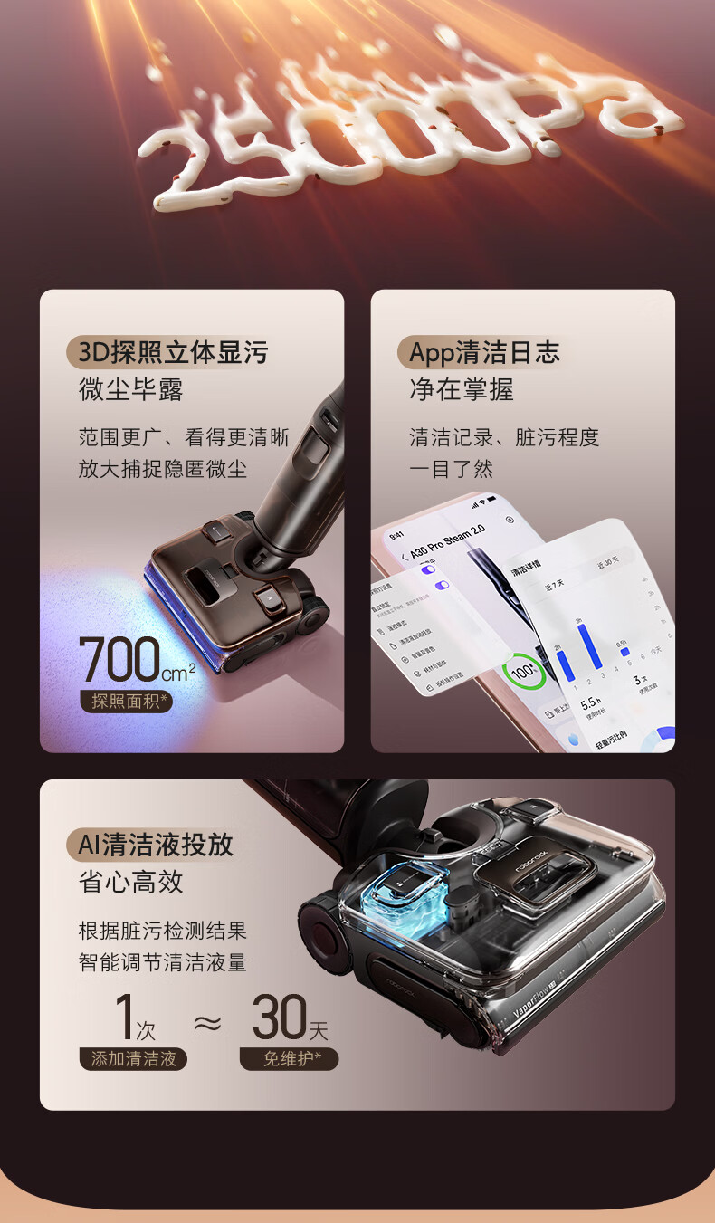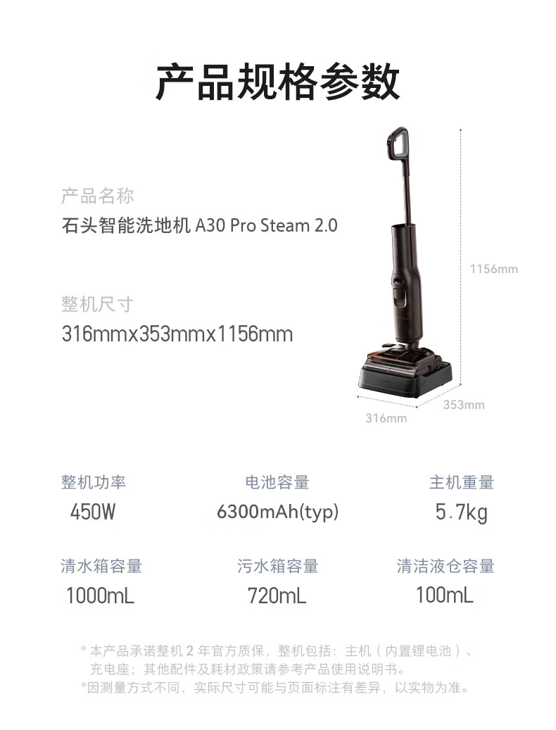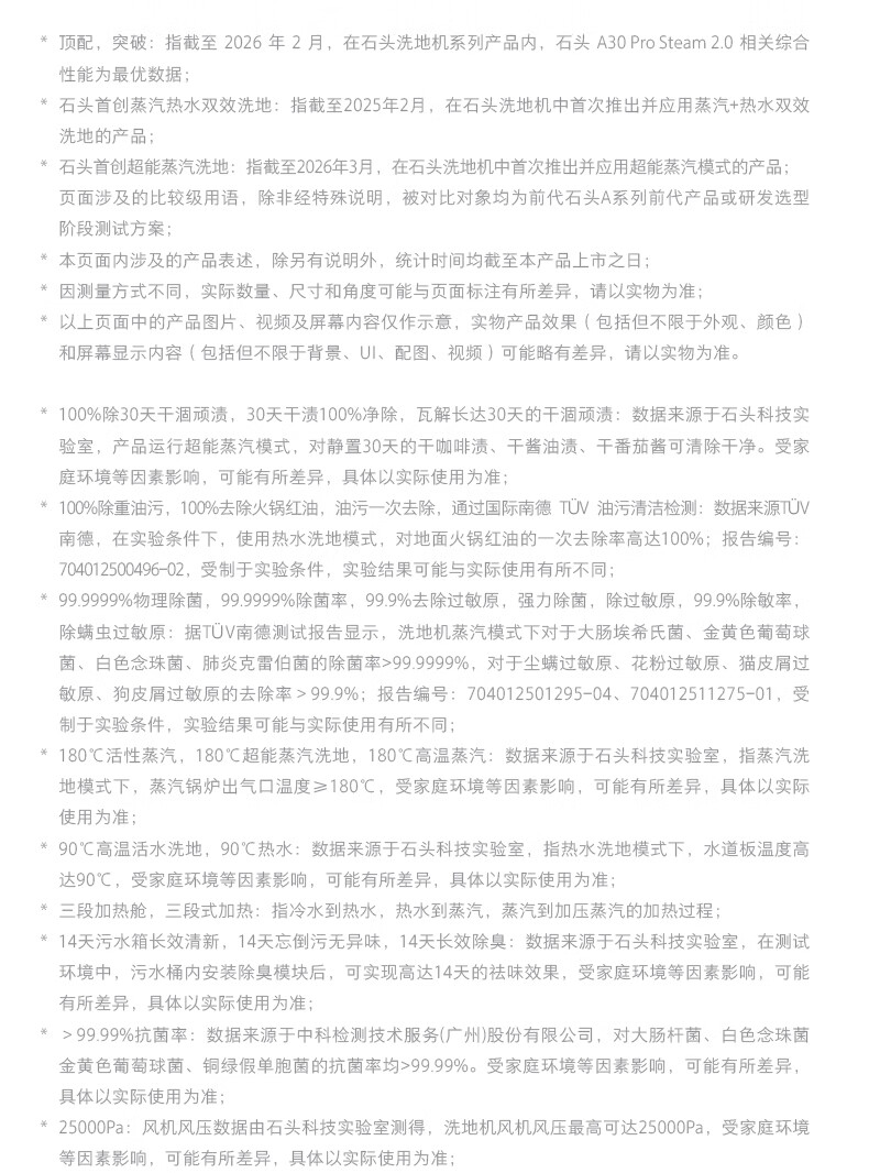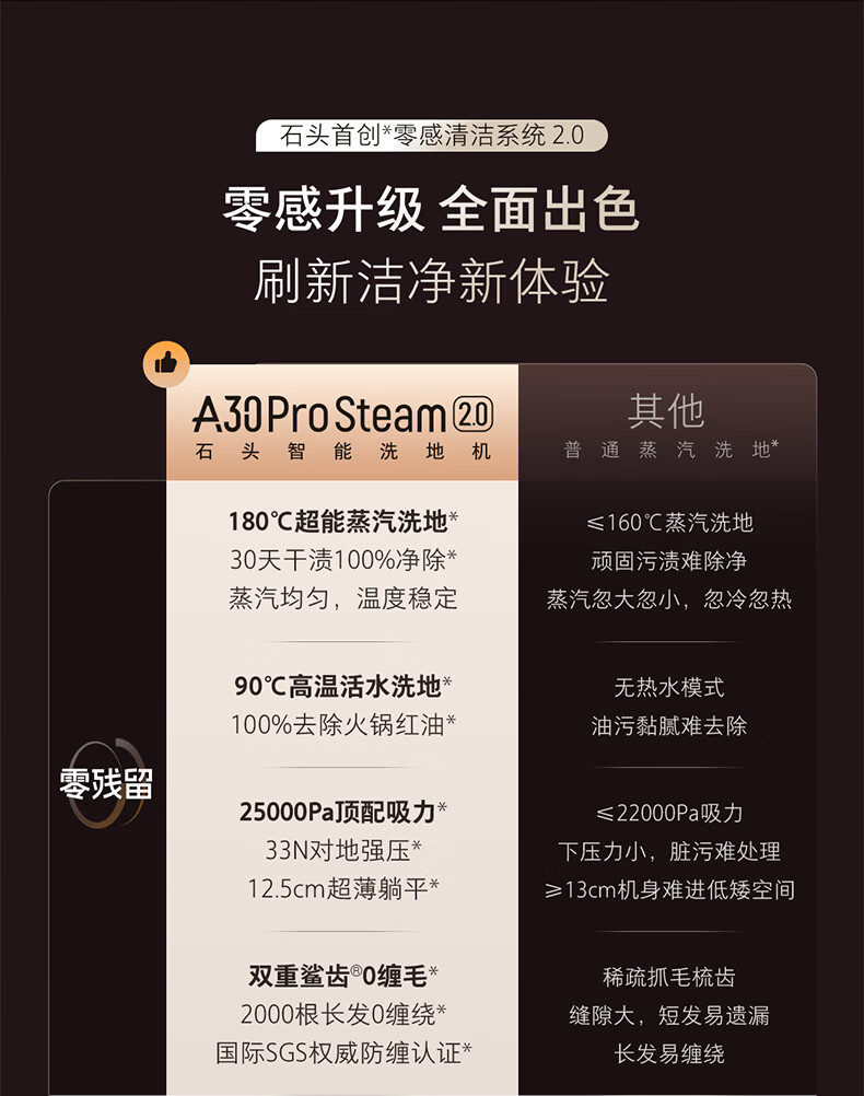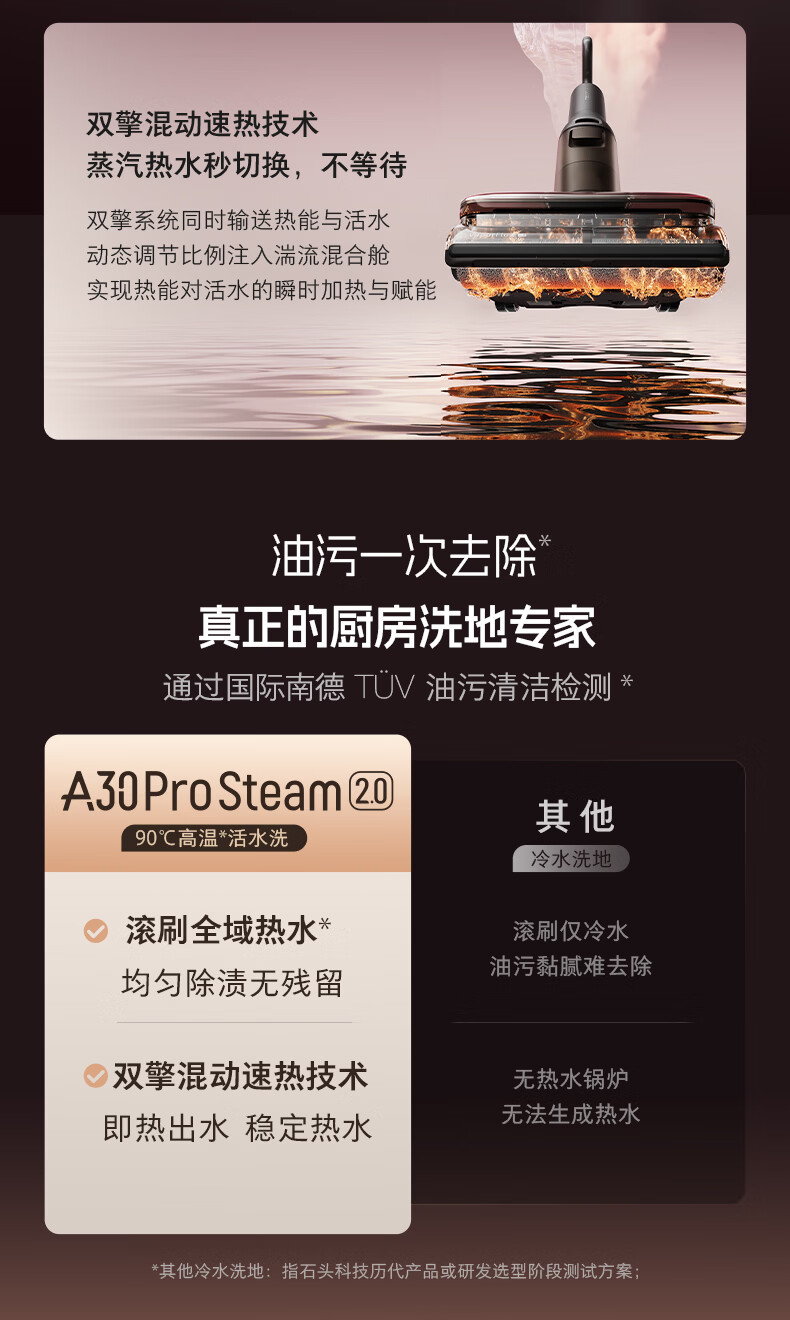 石头A30ProSteam2.0【180℃蒸汽】90℃热水 蒸汽洗地机长续航抗菌全向助力0缠毛吸拖一体扫地机器人 【蒸汽热水洗】A30ProSteam2.0