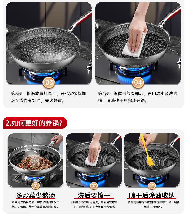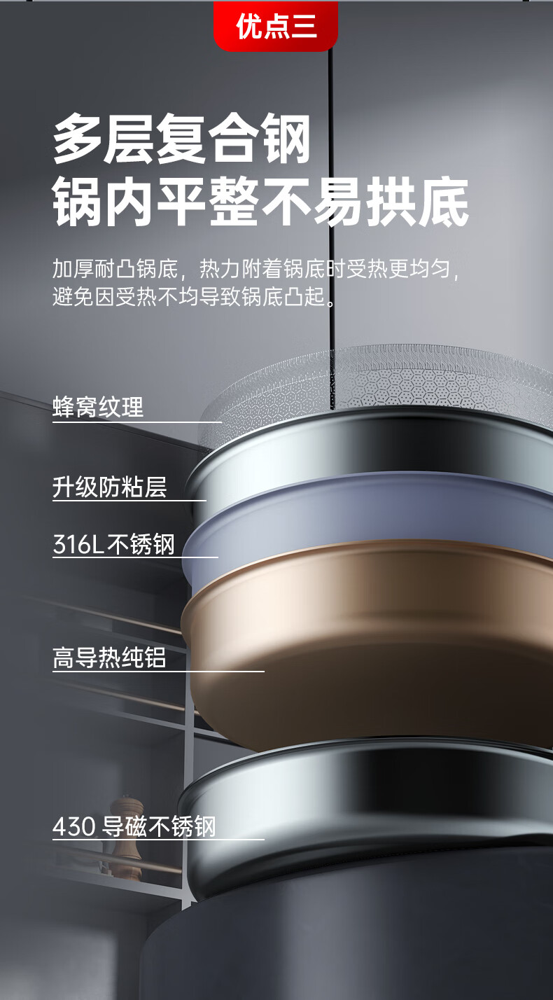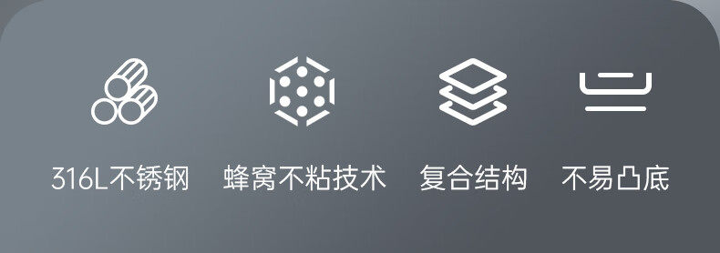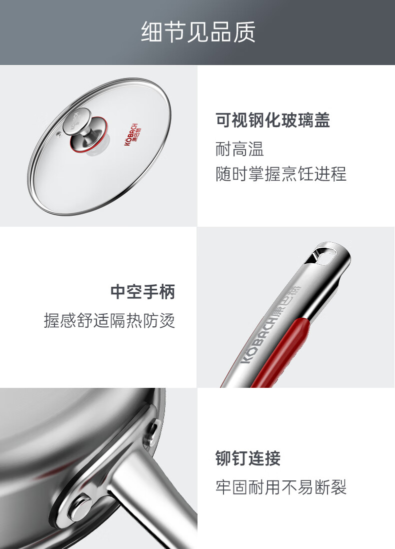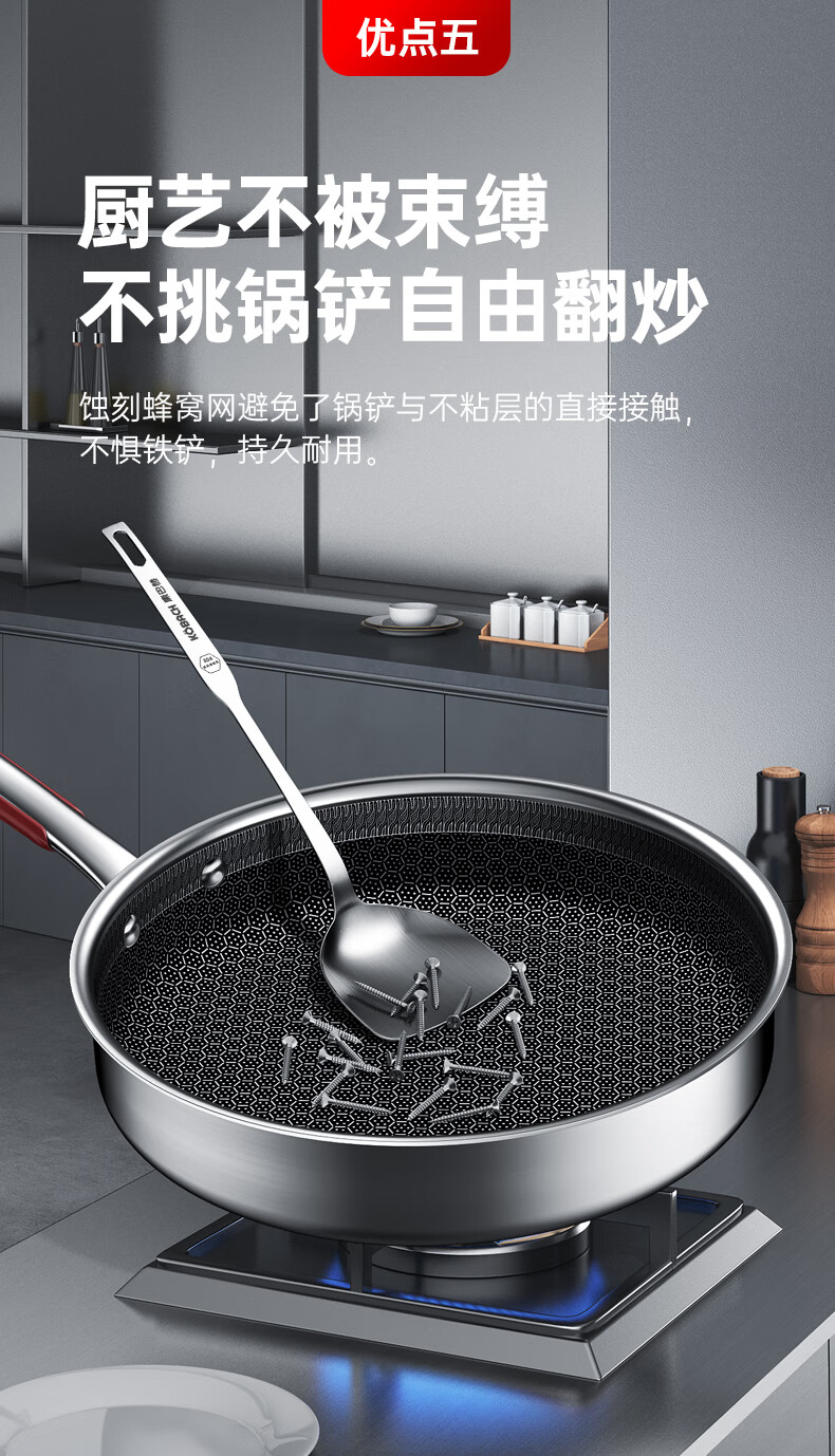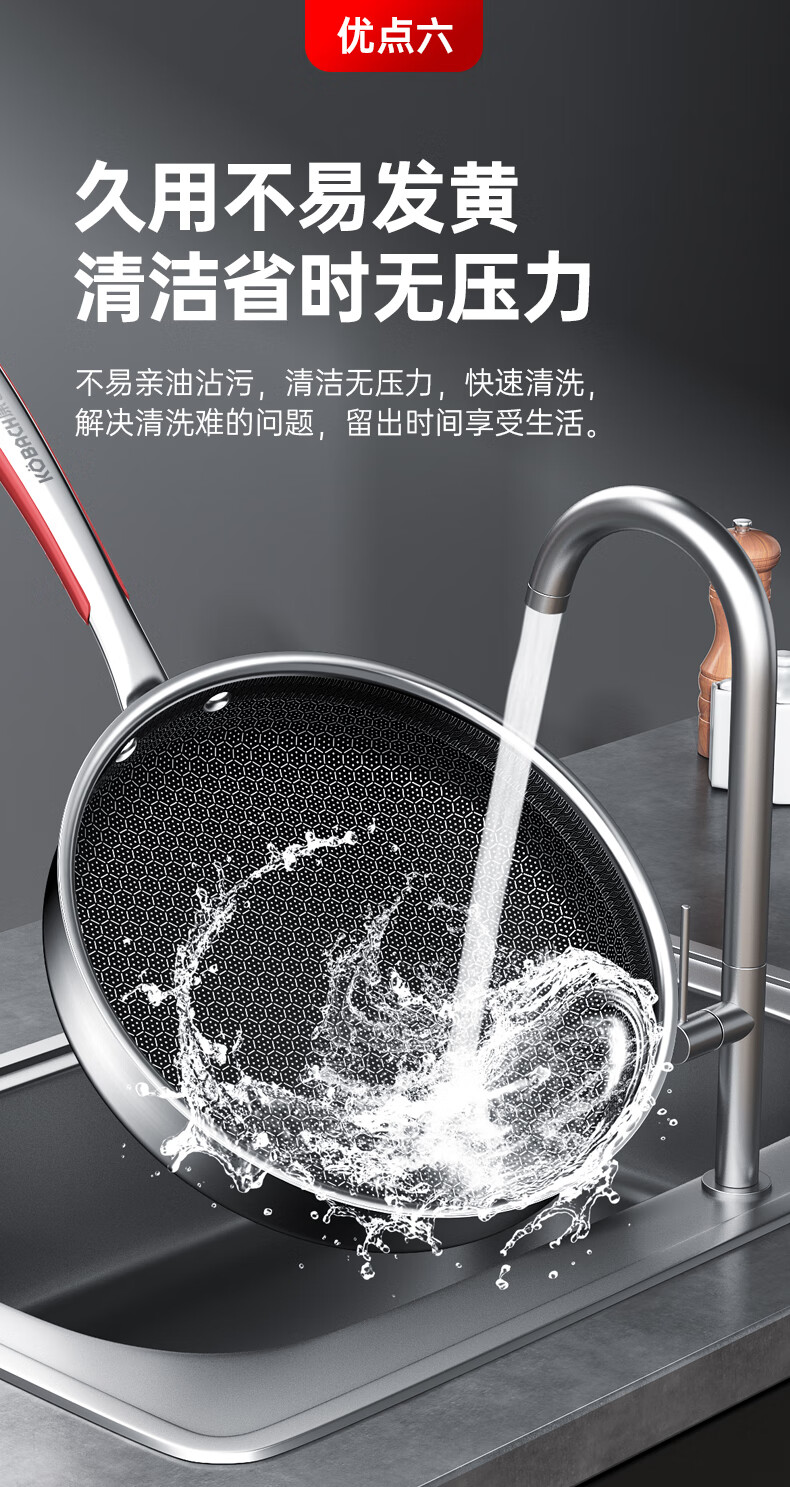康巴赫旗舰S款316L不锈钢平底锅蜂窝家用煎牛排煎烙饼煎蛋不粘锅电磁炉