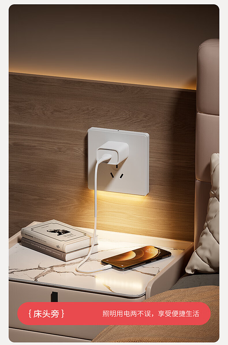 国际电工人体智能感应地脚灯86型嵌入式家用楼梯走廊带小夜灯五孔插座 白色地脚灯五孔插座【底部发光】